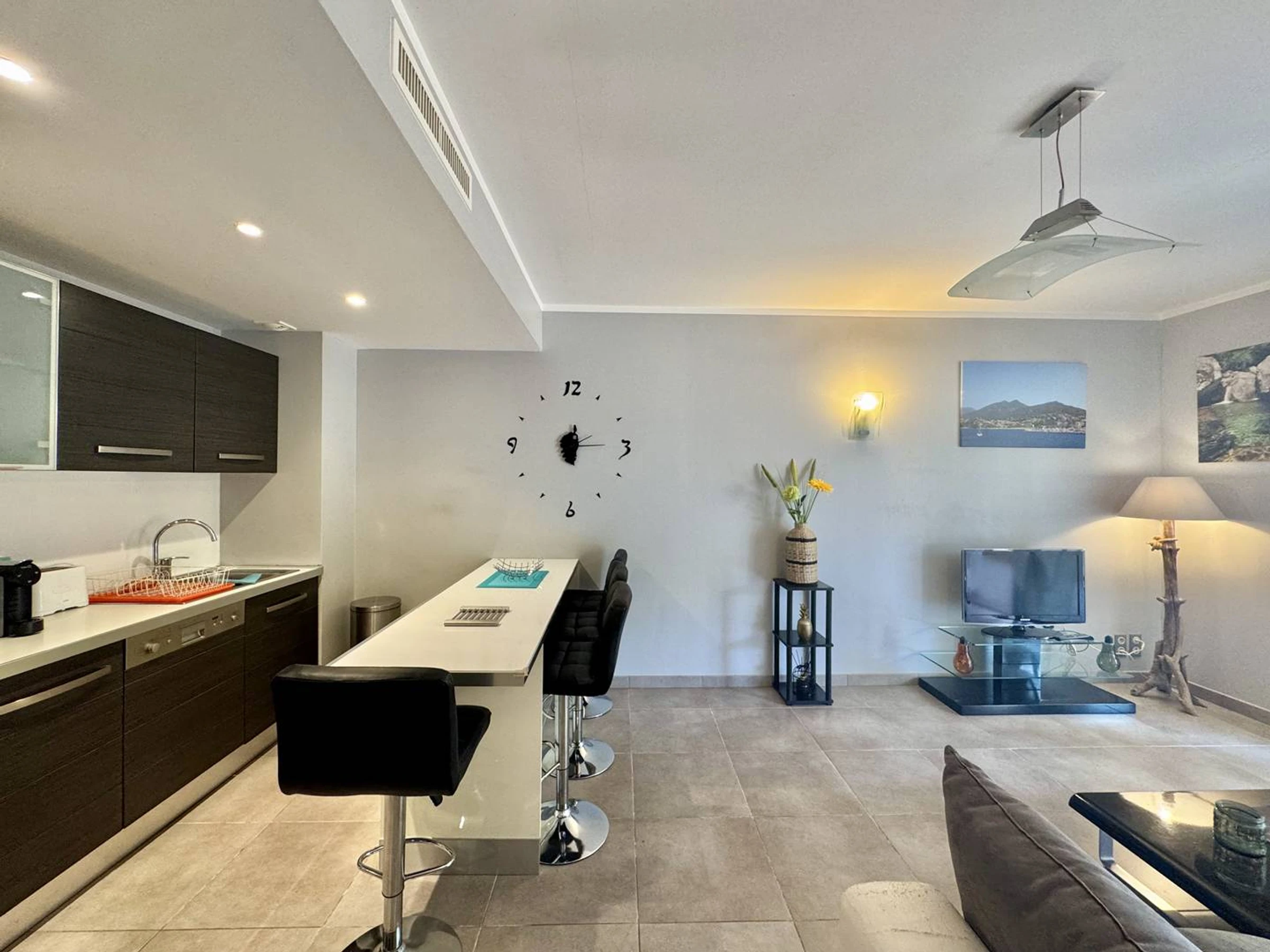 Découvrez ce charmant T2 à la décoration soignée, situé dans un quartier calme, tout en étant à proximité immédiate de toutes les commodités. Vous serez à seulement 200 mètres du centre commercial, où se trouvent un supermarché Auchan, un tabac, des restaurants, une épicerie, un coiffeur et bien d'autres services pour faciliter votre séjour. Le centre-ville de Propriano se situe à 5 minutes en voiture, mais peut également être rejoint à pied grâce à un agréable raccourci.
