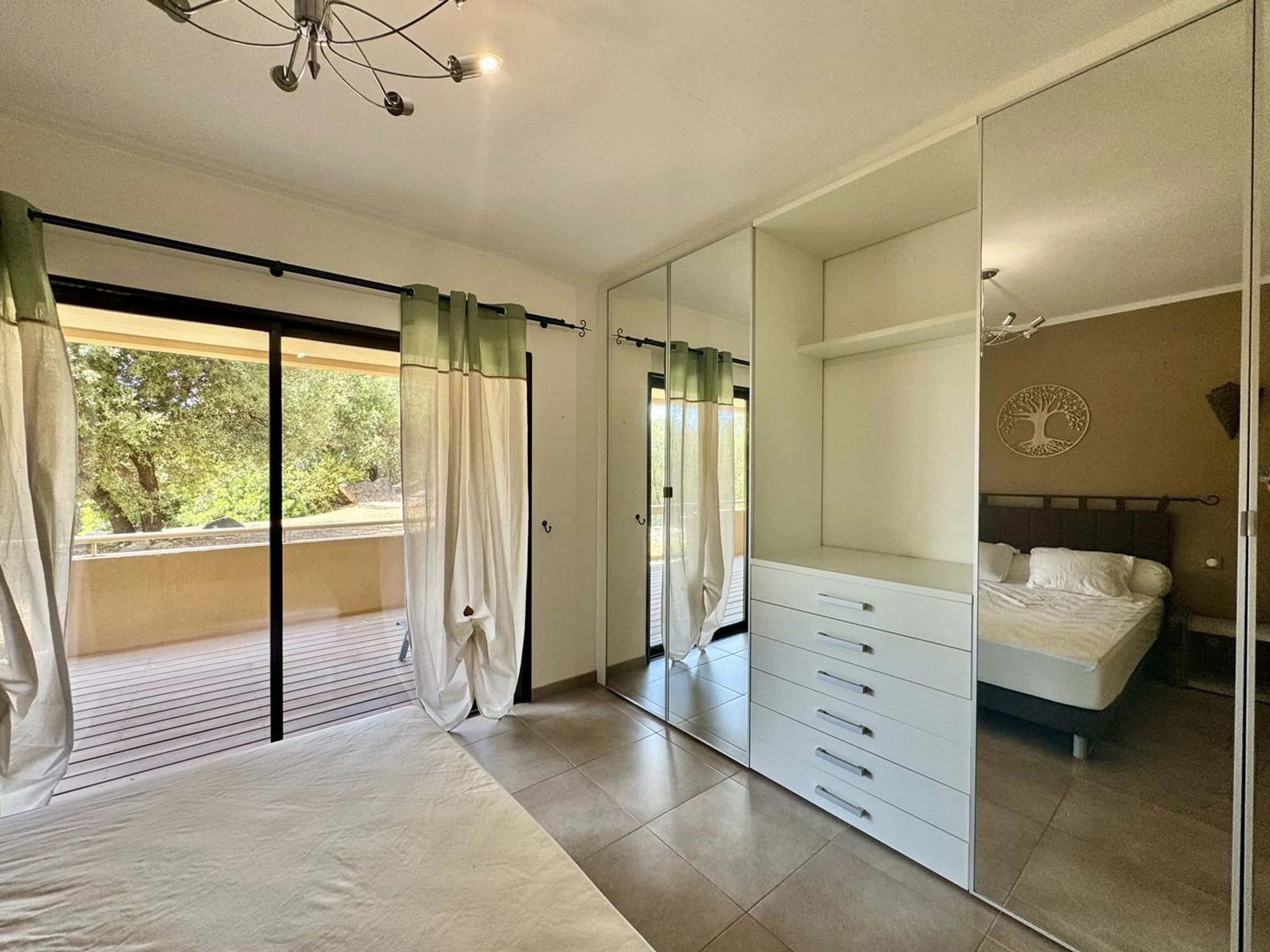 Le logement se compose d’un vaste séjour lumineux, ouvert sur une grande terrasse avec coin repas et transats, le tout donnant sur un jardin verdoyant et apaisant. La cuisine est entièrement équipée, pour vous permettre de cuisiner comme à la maison.