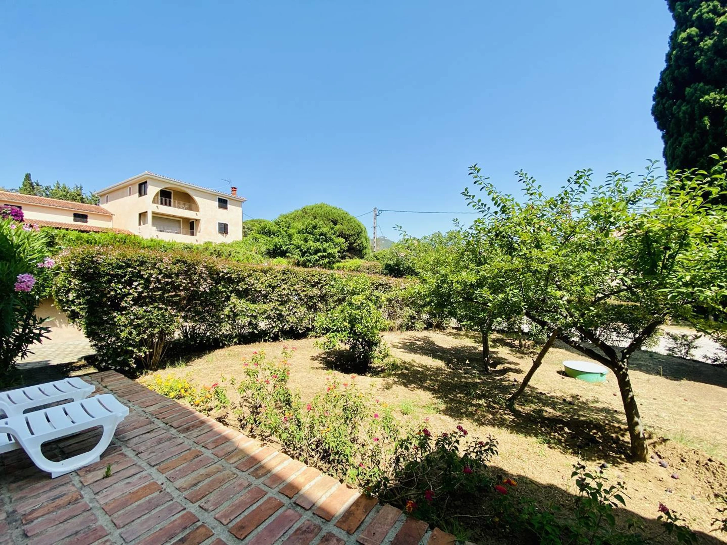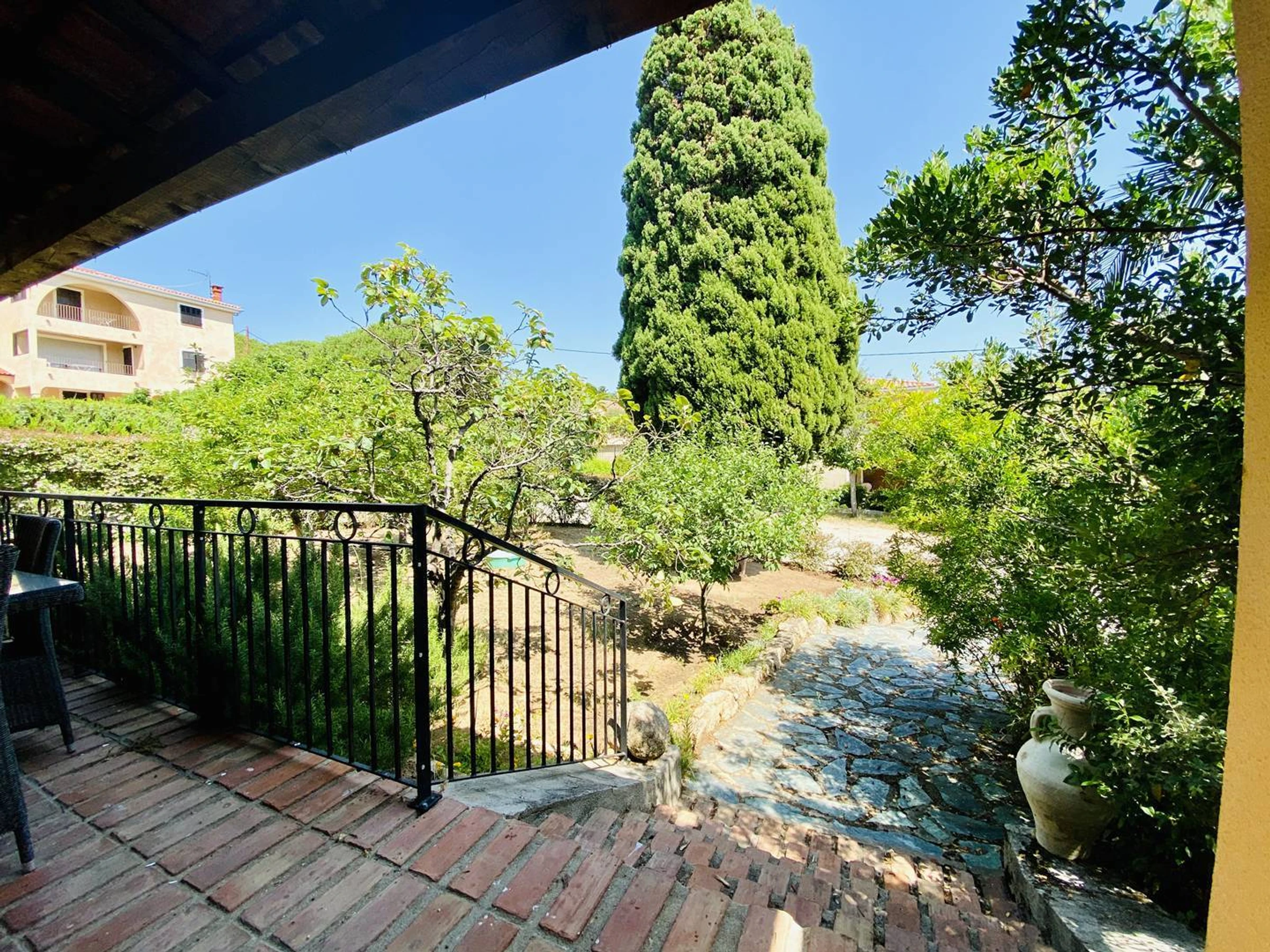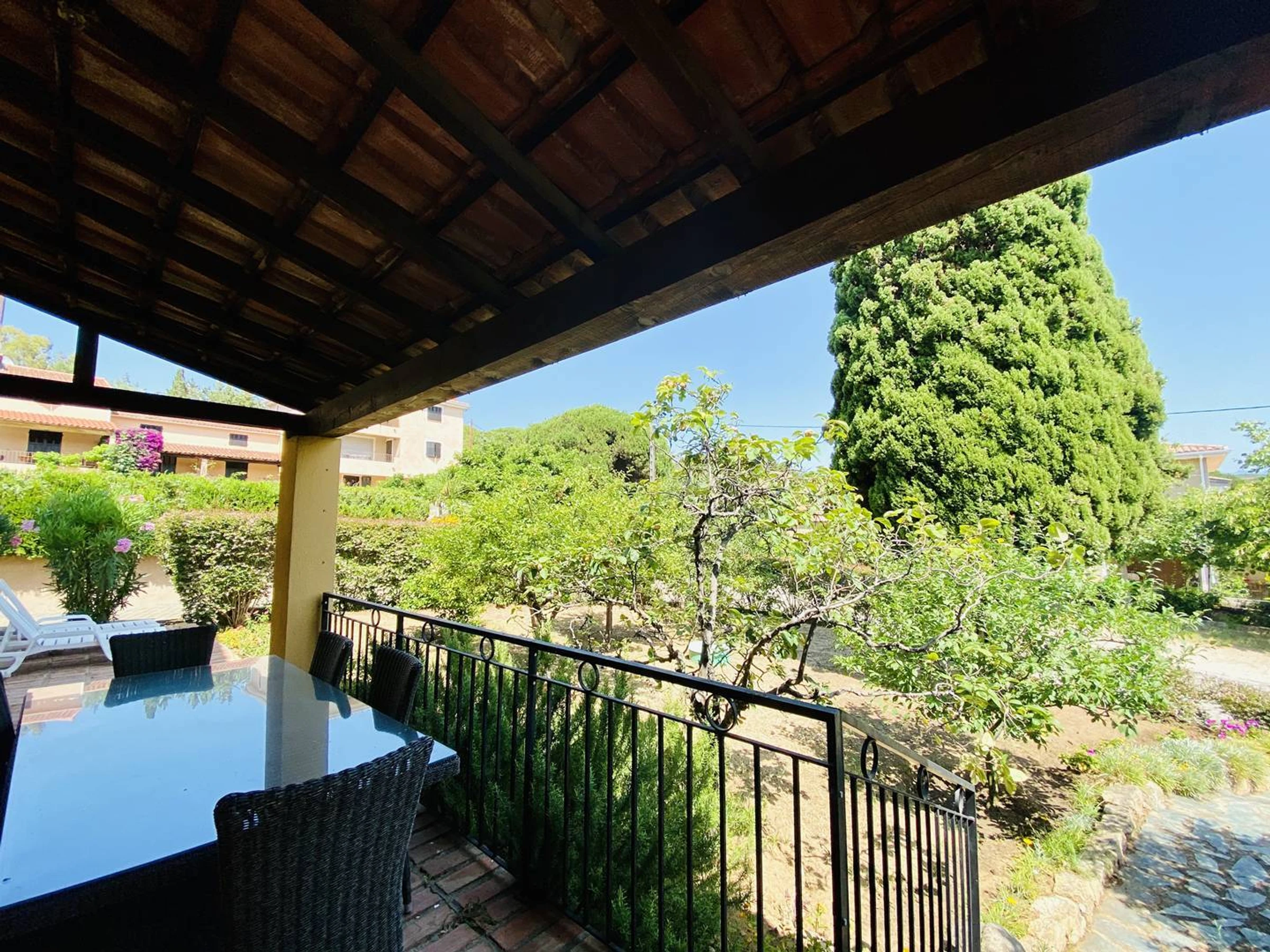Il profite d'une très grande terrasse, en partie couverte, donnant sur un jardin arboré et privé. La terrasse est meublée de tables, chaises de jardin, bains de soleil et barbecue.