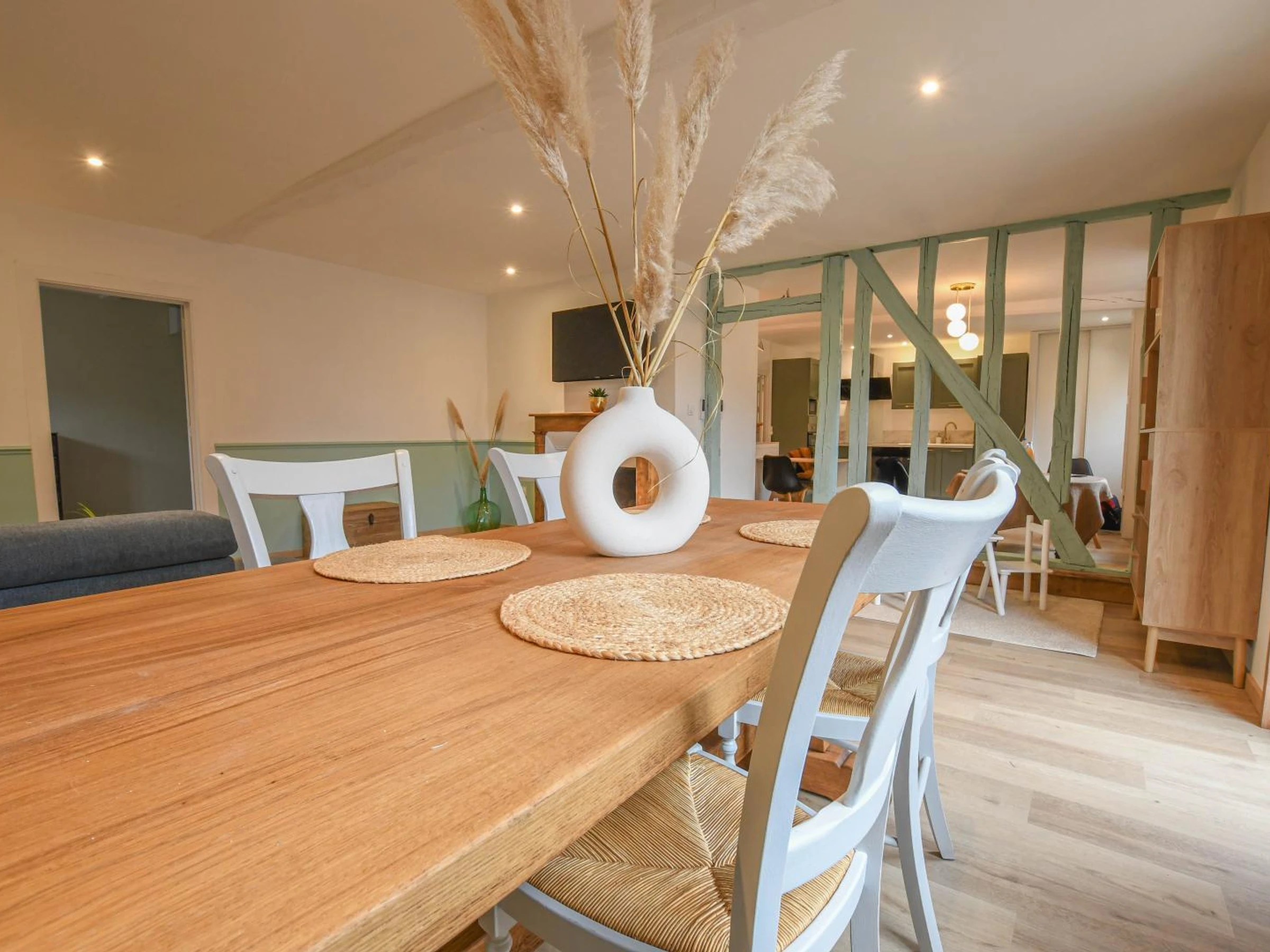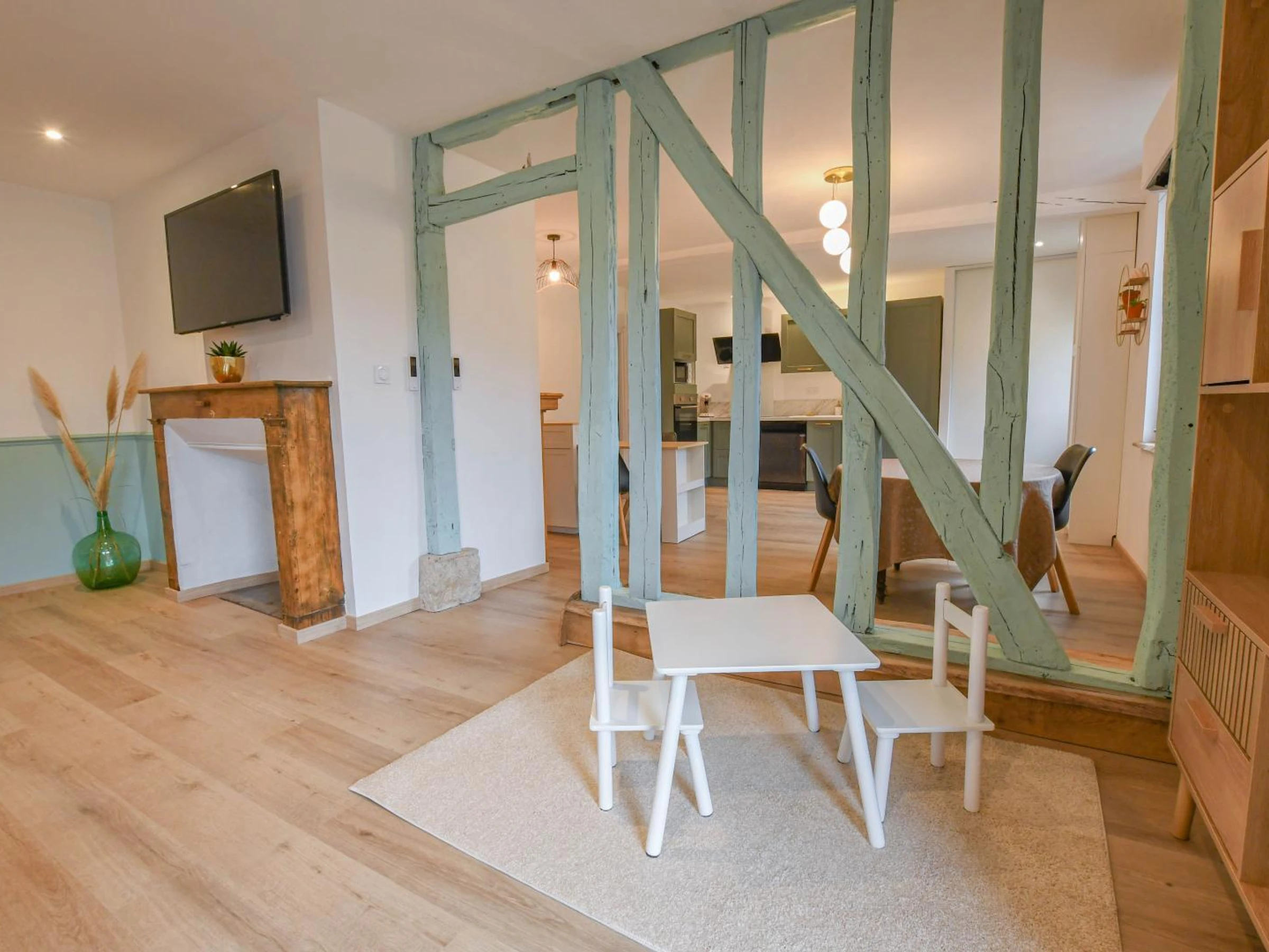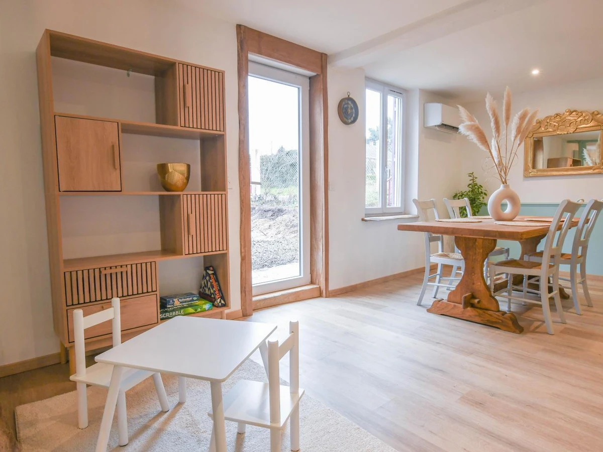 Le gîte de plain pied peut accueillir jusqu’à 6 personnes, avec possibilité de couchage supplémentaire grâce au canapé convertible (avec supplément). Idéal pour les familles ou petits groupes souhaitant profiter d’un séjour convivial. Vous disposerez d'une cuisine équipée, pièce de vie avec salon et coin repas, 2 chambres (l'une avec lit 160x200 et l'autre avec 2 lits 90x200), une salle d'eau (douche, vasque, wc) et une buanderie. Vous apprécierez le coin jeux spécialement aménagé pour les plus petits, afin qu’ils puissent s’amuser en toute tranquillité pendant que les parents se détendent. Côté extérieur, cour close avec parking privatif, jardin (non clos) pour profiter des beaux jours, salon de jardin et de détente, transats pour vos moments de relaxation, barbecue pour des repas conviviaux en plein air. Lits faits, linge de toilette et de maison fournis, chauffage, électricité, climatisation, ménage de fin de séjour inclus. Bienvenue à Prugny, petit village paisible situé à 20 minutes de Troyes et aux portes du Pays d'Othe riche en randonnées et en balades, idéal pour un séjour au vert en famille ou entre amis. Notre gîte vous accueille dans un cadre chaleureux, à la décoration soignée et contemporaine. Les matériaux de qualité et l’attention portée aux détails créent une atmosphère élégante et confortable, où l’on se sent immédiatement chez soi.