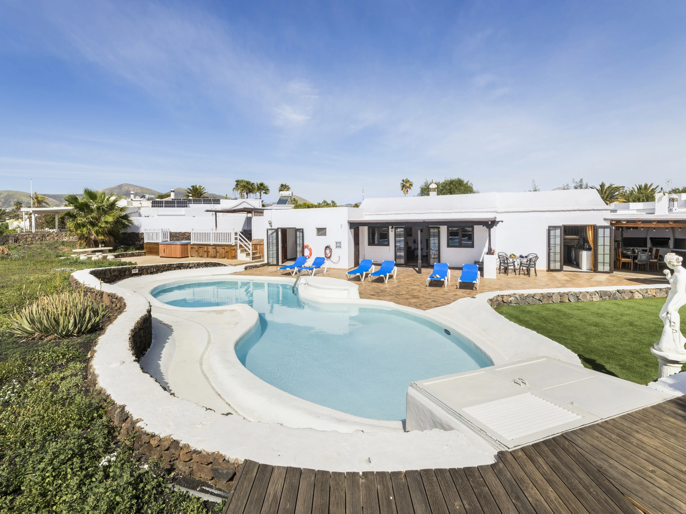 Bien située pour profiter du calme du centre historique, du port et de la plage de Playa Chica, ou pour ceux qui recherchent plus d'animation, l'Avenue animée et la plage de Playa Grande, toutes deux à environ 1,5 km à pied. Idéal pour les familles, les groupes d'amis et les travailleurs à distance.