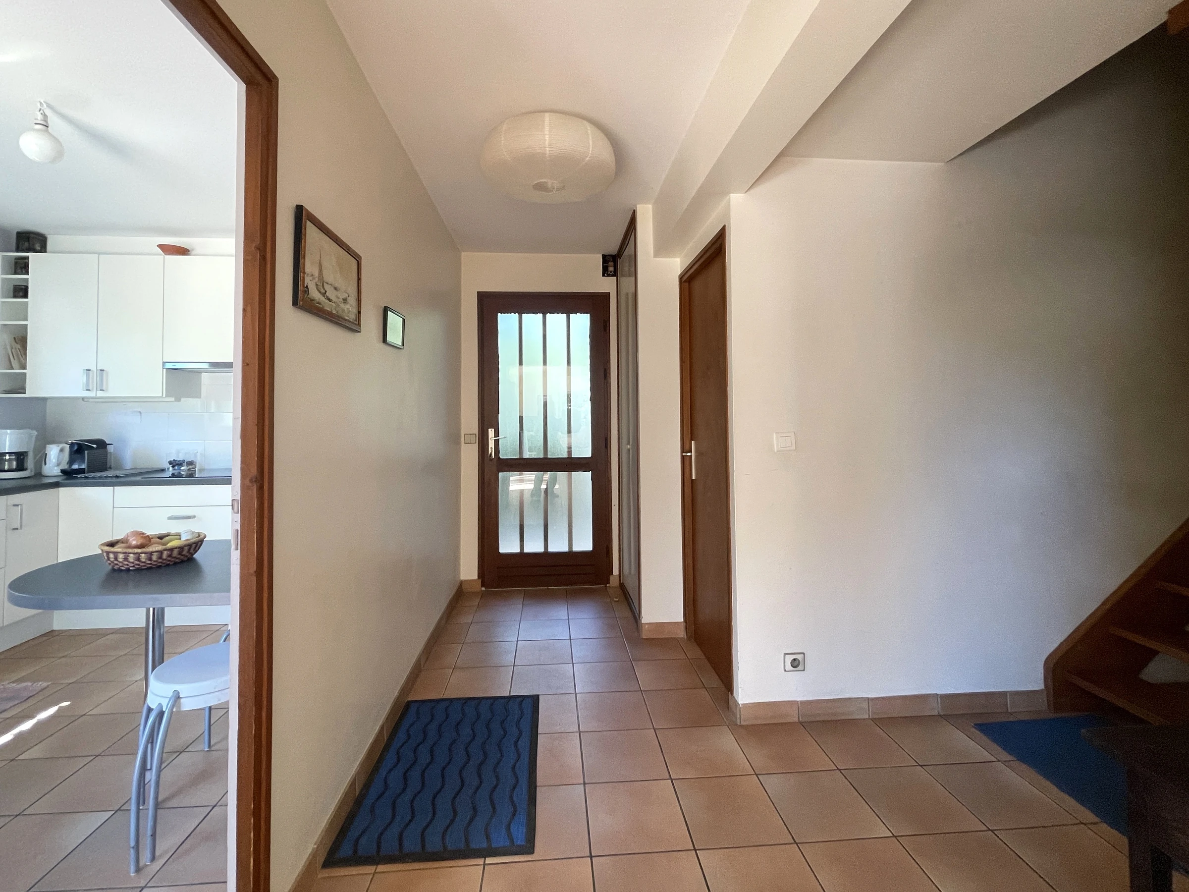 Maison de 110 m² habitables à étage, comprenant 3 chambres, sur un terrain de 1000 m² donnant dans un cadre de verdure très agréable et reposant. Très proche plage et épicerie de proximité.