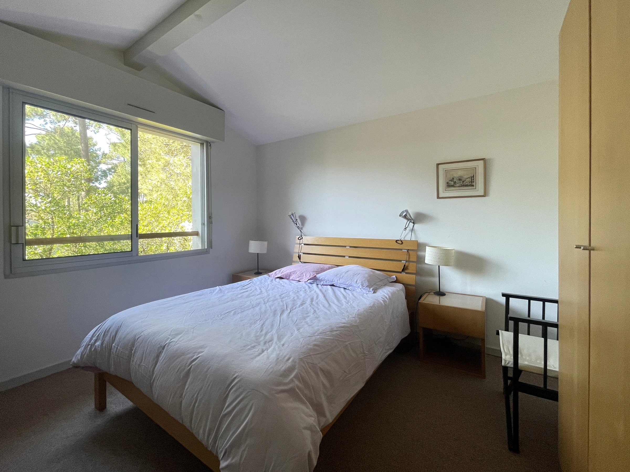 A l'étage (demi niveau) : chambre n°1 (2 lits 90 x 190 cm), chambre n°2 (1 lit 140 x 190 cm), WC séparés, SDB (baignoire, double vasque, sèche serviette) et au demi niveau supérieur, chambre n°3 (1 lit 140 x 190 cm).