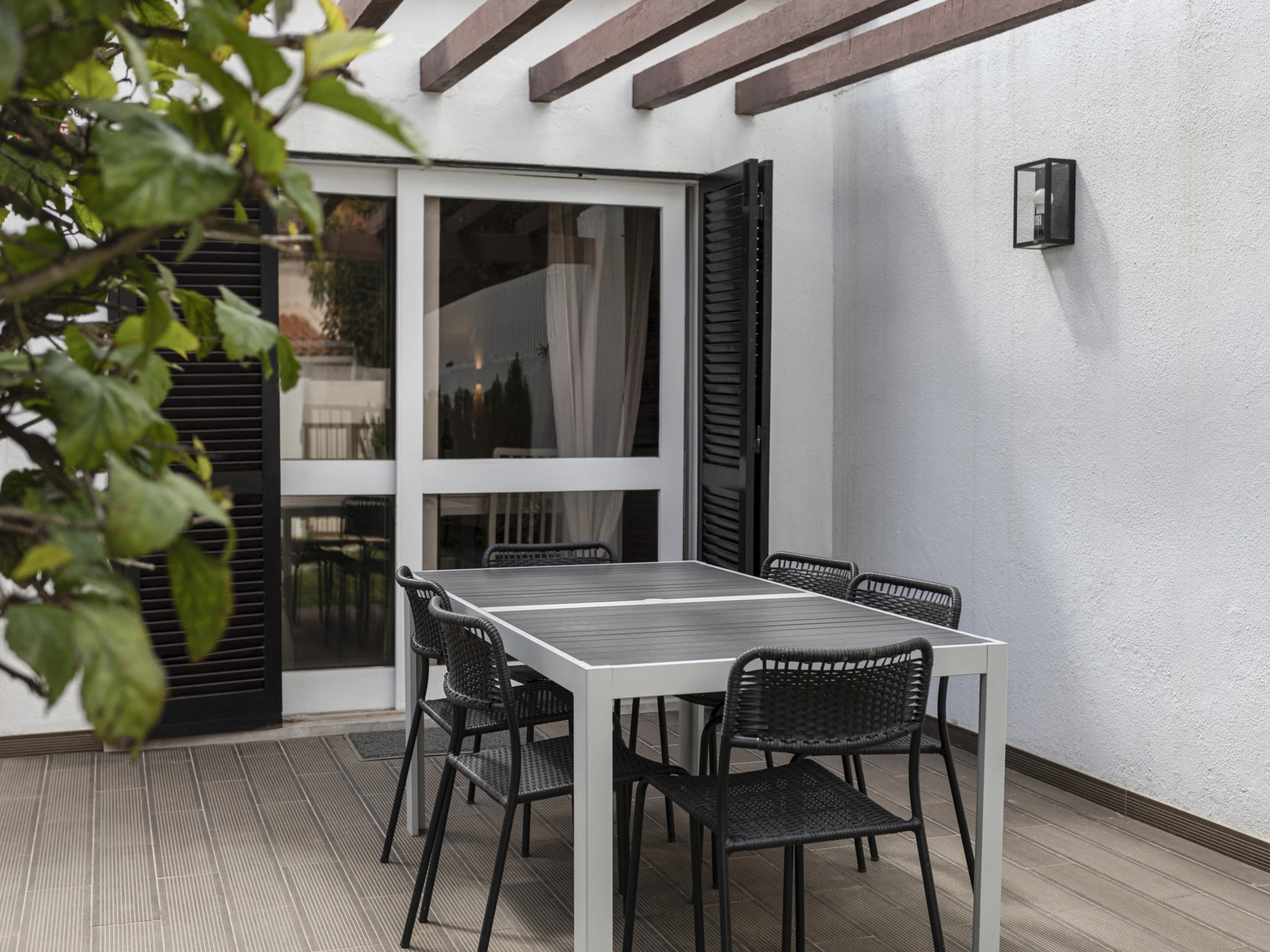 Cette maison dispose de 3 chambres, 2 avec un lit queen size et l'autre avec un lit simple. Elle dispose d'une cuisine entièrement équipée et de deux toilettes complètes avec douche. Vous pouvez prendre vos repas dans la salle à manger ou dans le jardin. Le salon dispose d'une télévision intelligente et d'un accès direct à un autre jardin qui fait face à la marina de Vilamoura.