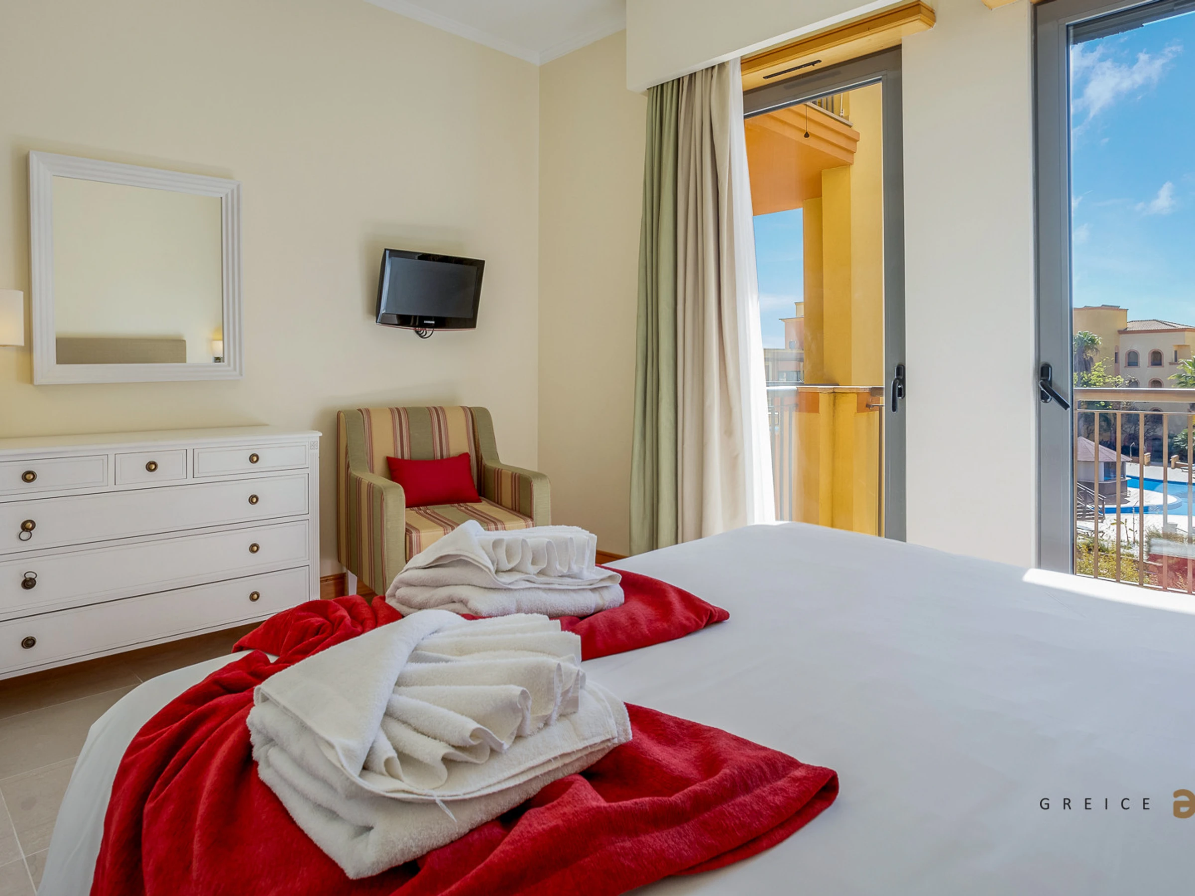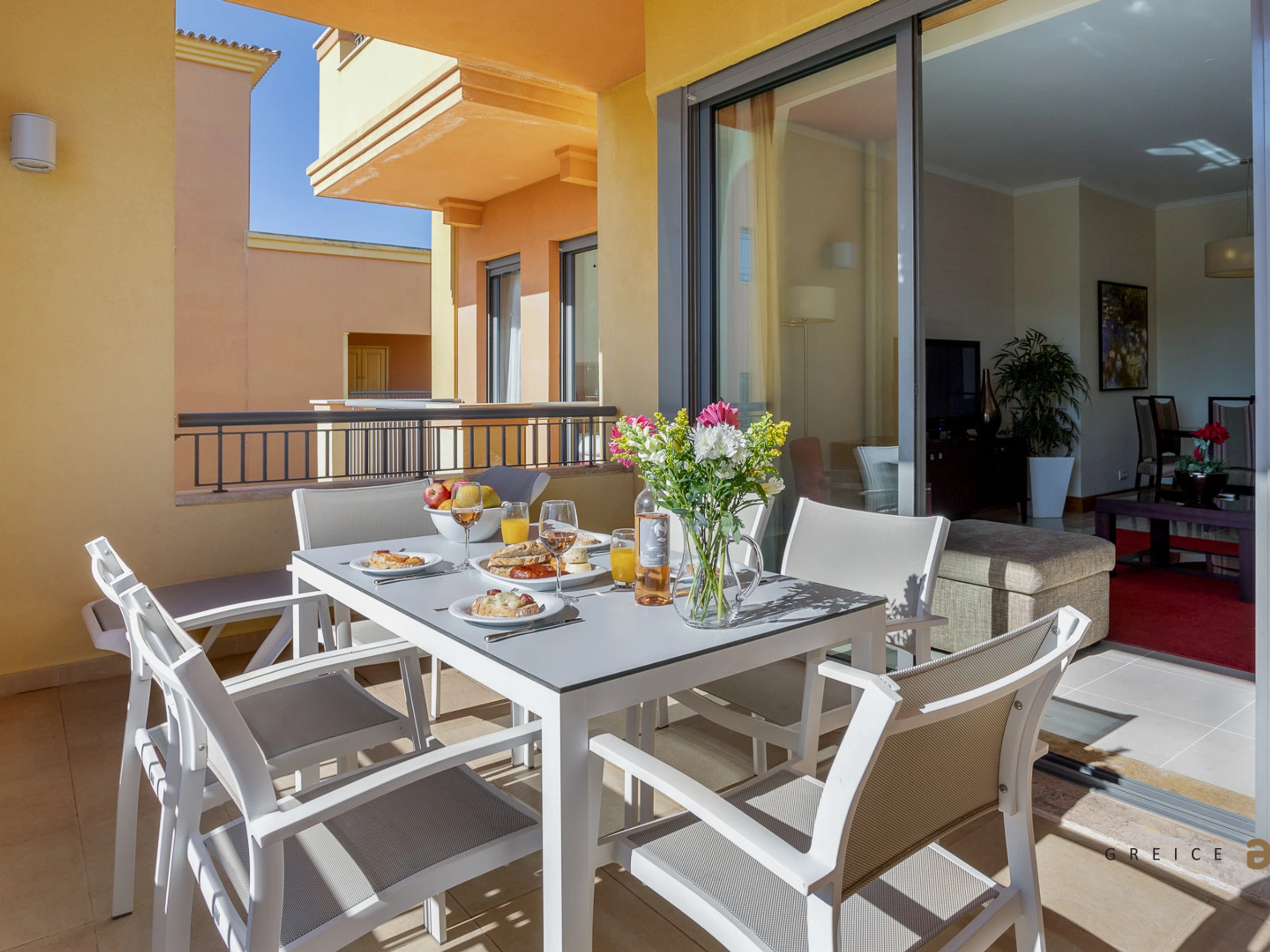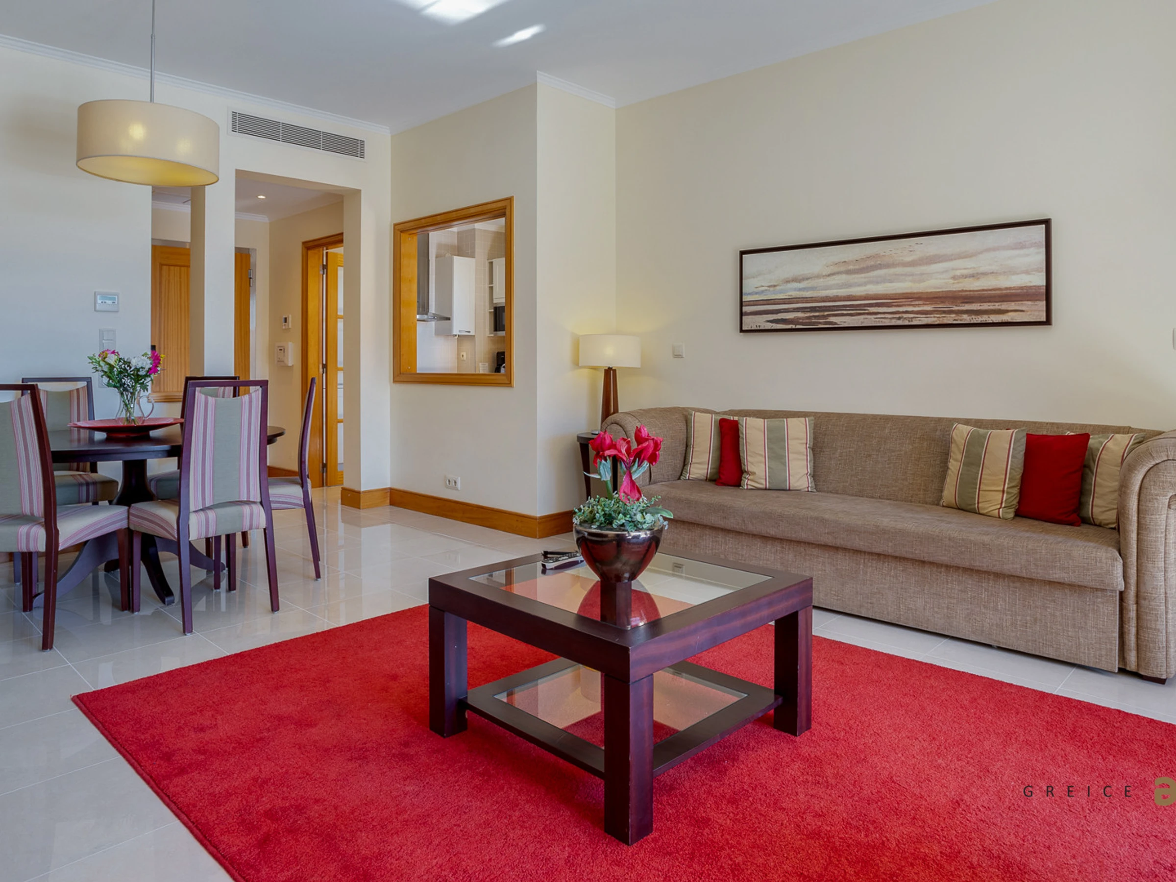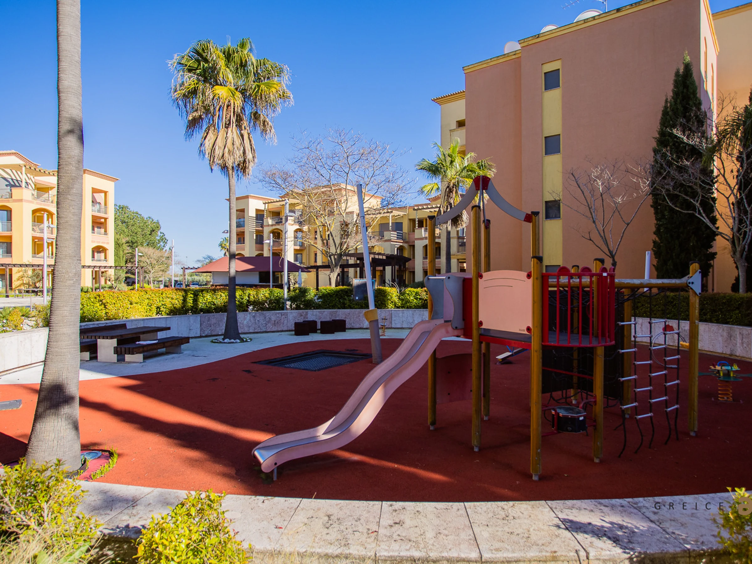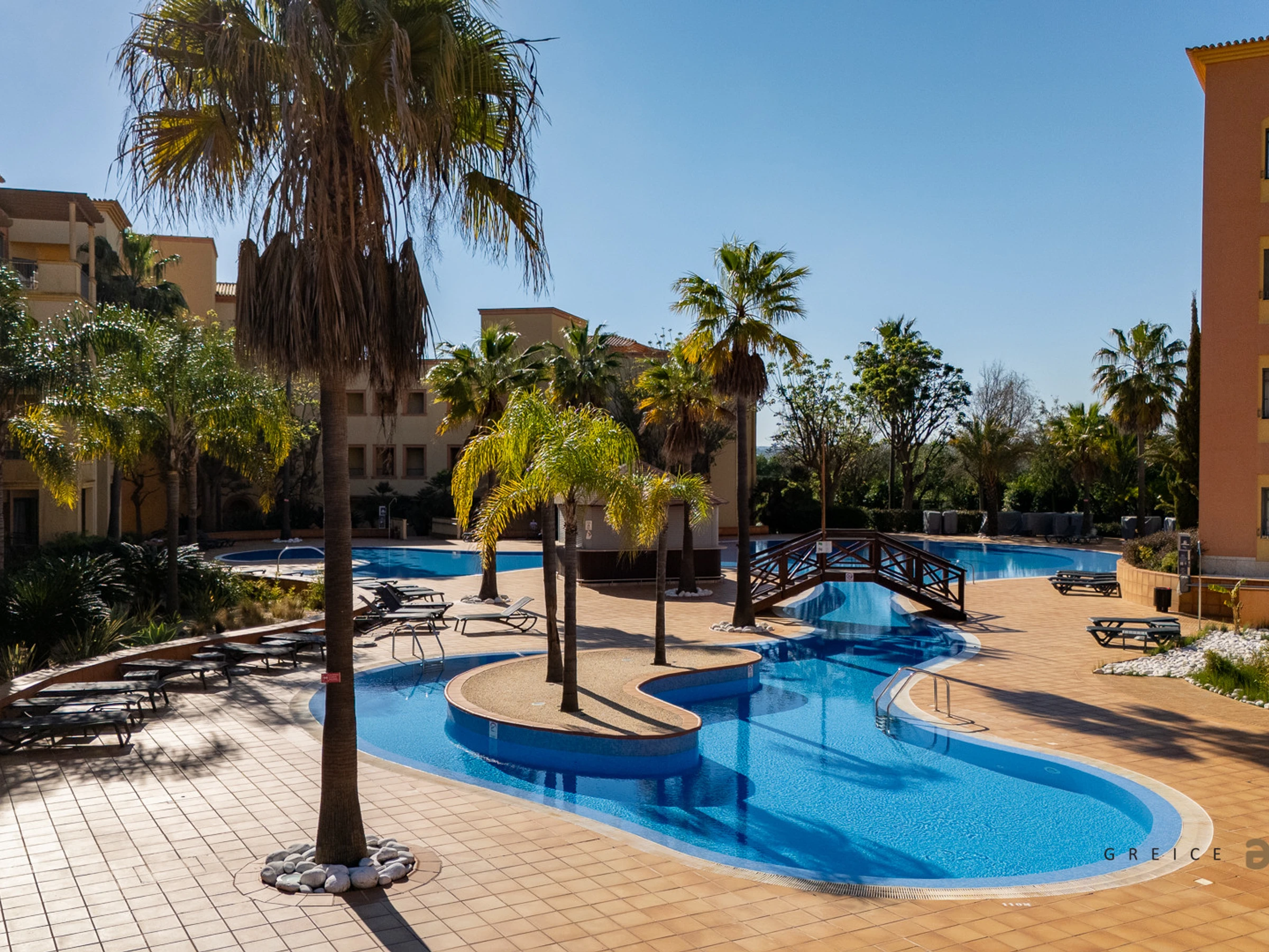 Luxueux T3 en suite, situé dans une copropriété avec piscine et aire de jeux pour enfants, entouré de 3 parcours de golf célèbres de Vilamoura : Victoria Golf Club, Laguna et Millennium golf.