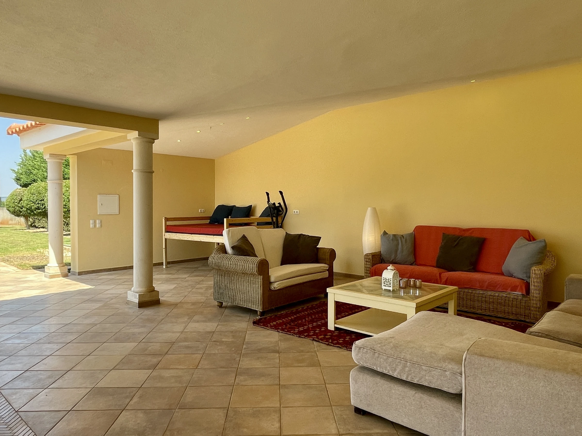 • Terrasse et jardin environnant avec chaises longues