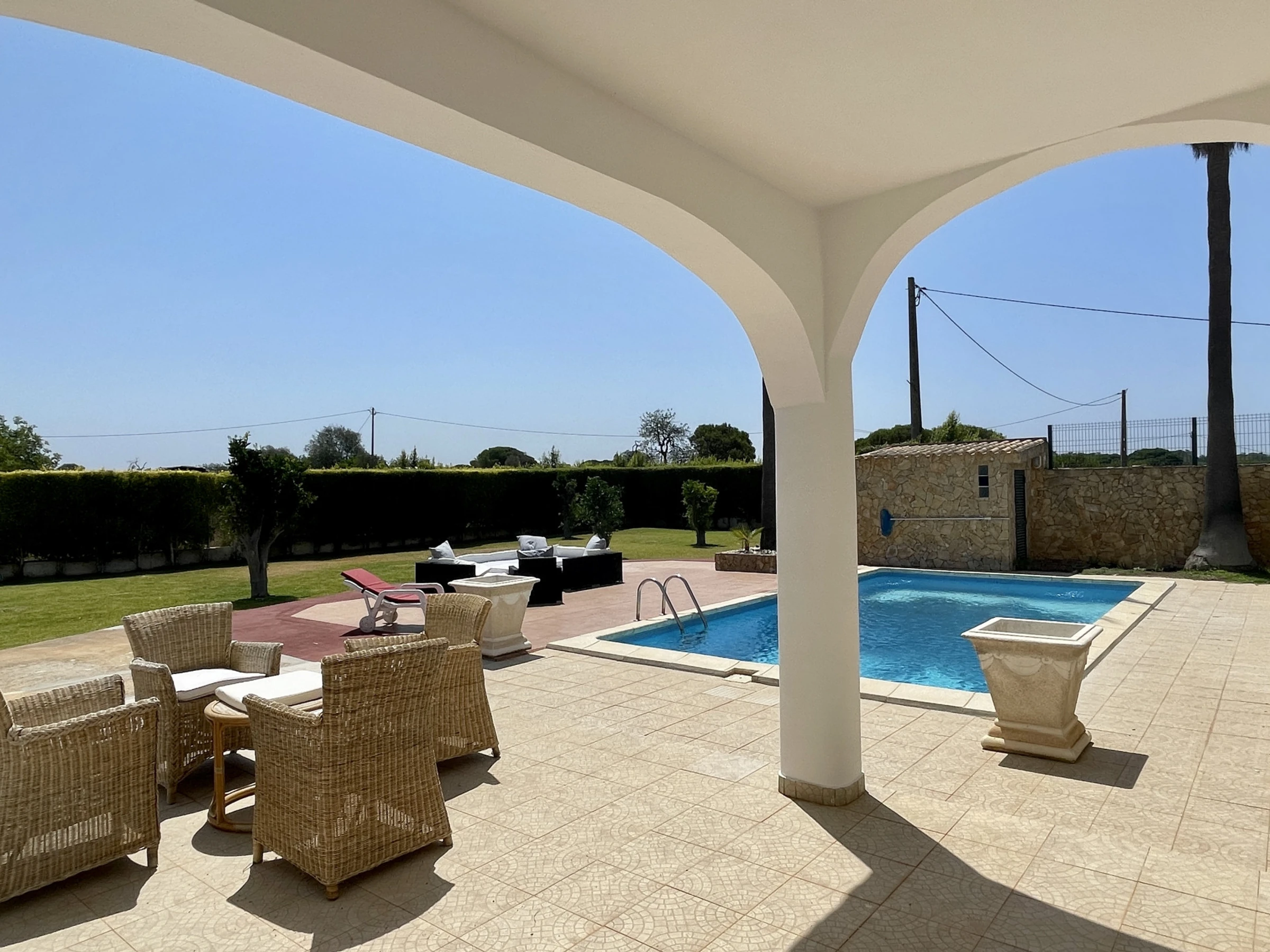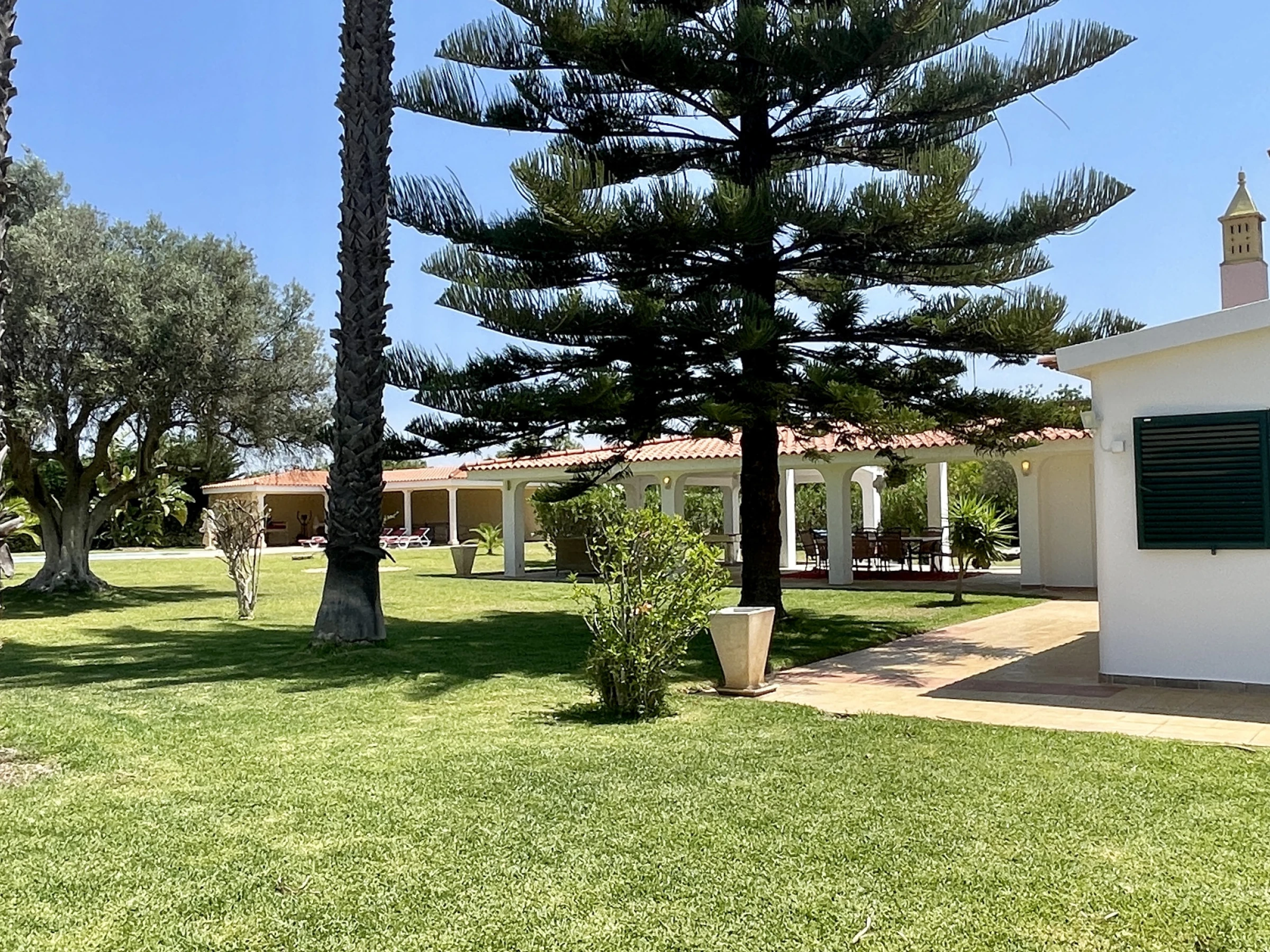 Située à seulement 3 km de Quarteira et 4 km de Vilamoura, la villa est proche des supermarchés, cafés et restaurants comme le "Vale do Girassol" (1 km) et le "Retiro do Camponês" (2 km). La plage de Quarteira est à 4 km et la plage de Vilamoura à 5 km. Le terrain de golf Vila Sol est à 2 km et le parc aquatique Aquashow à 4 km.