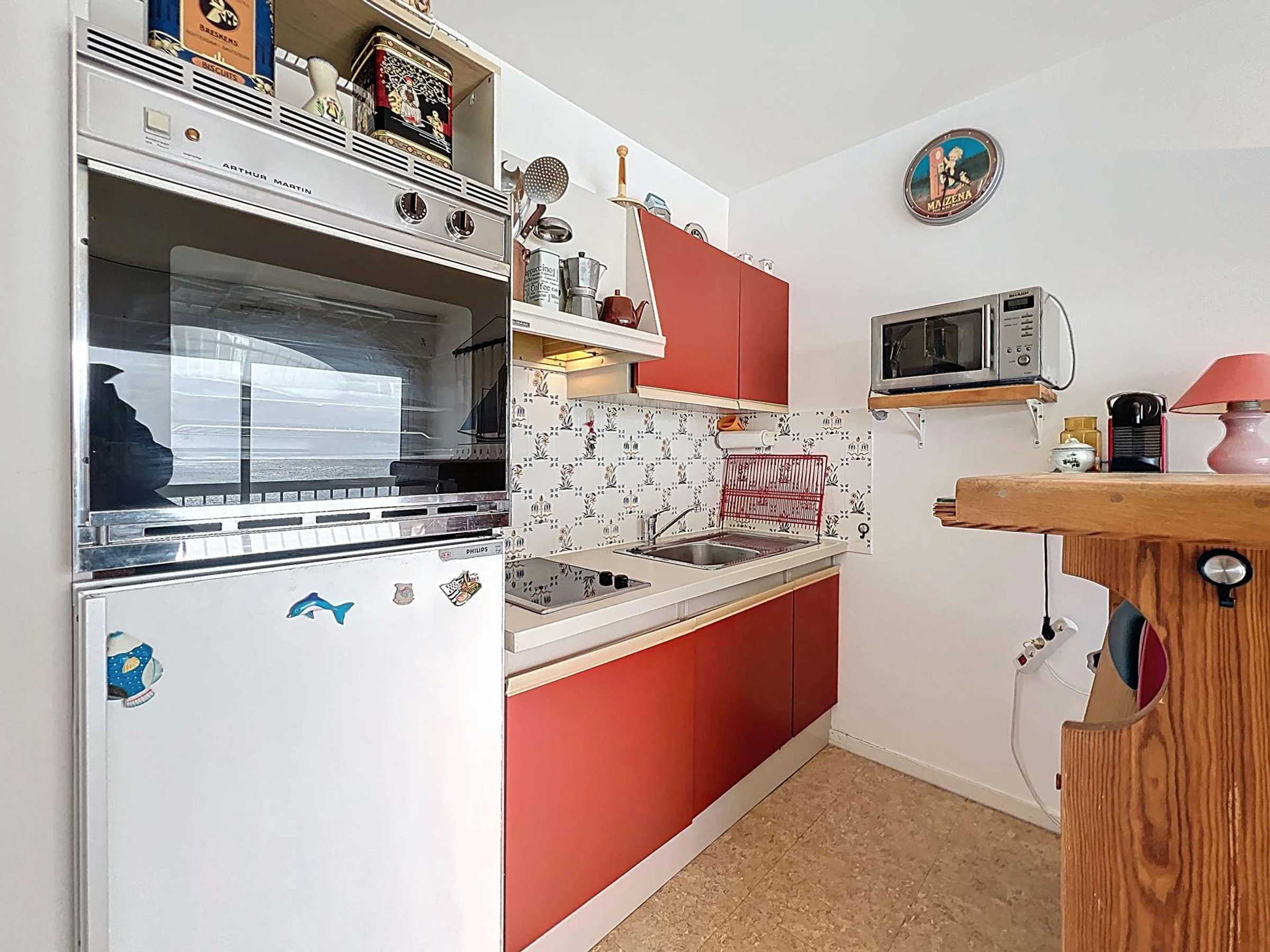 - Une cuisine ouverte et équipée (four, plaque vitrocéramique 2 feux, micro-onde, réfrigérateur + freezer, bouilloire, grille-pain, cafetière Nespresso),