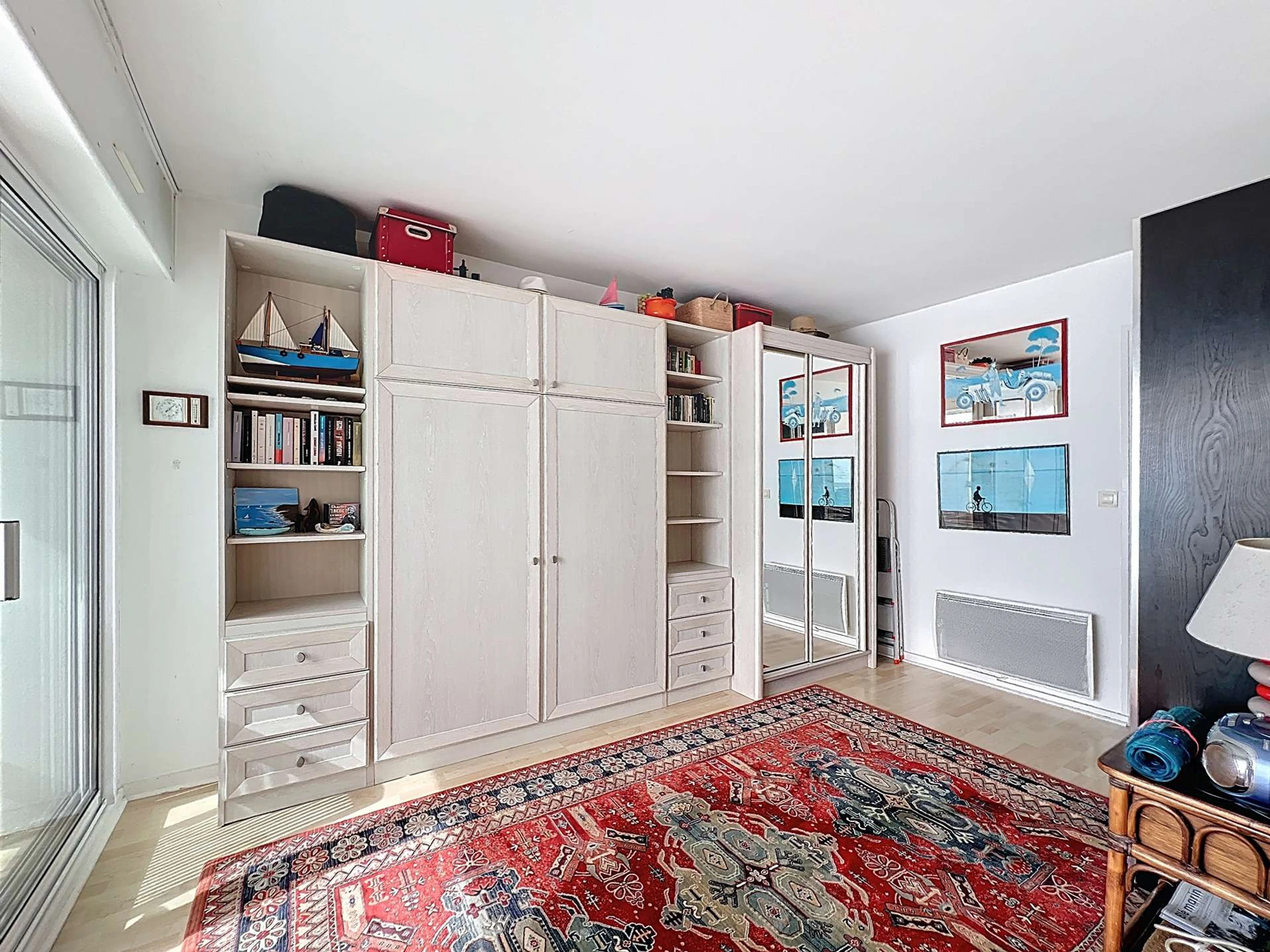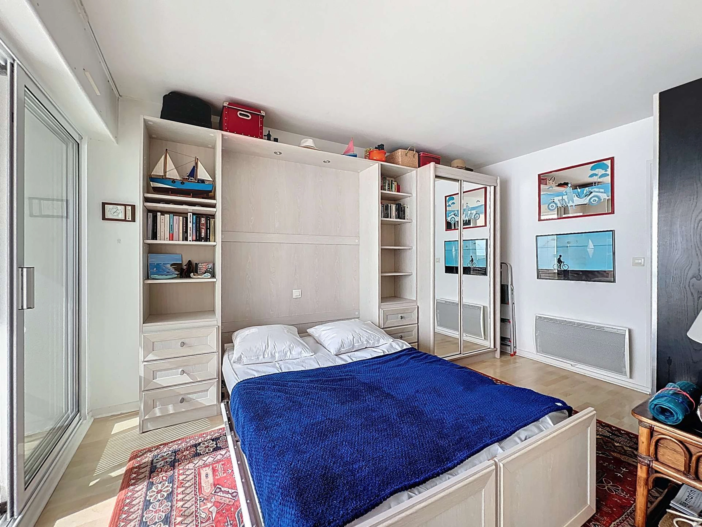 - Une chambre avec un lit rabattable de 140 cm, un lit parapluie et rangements,