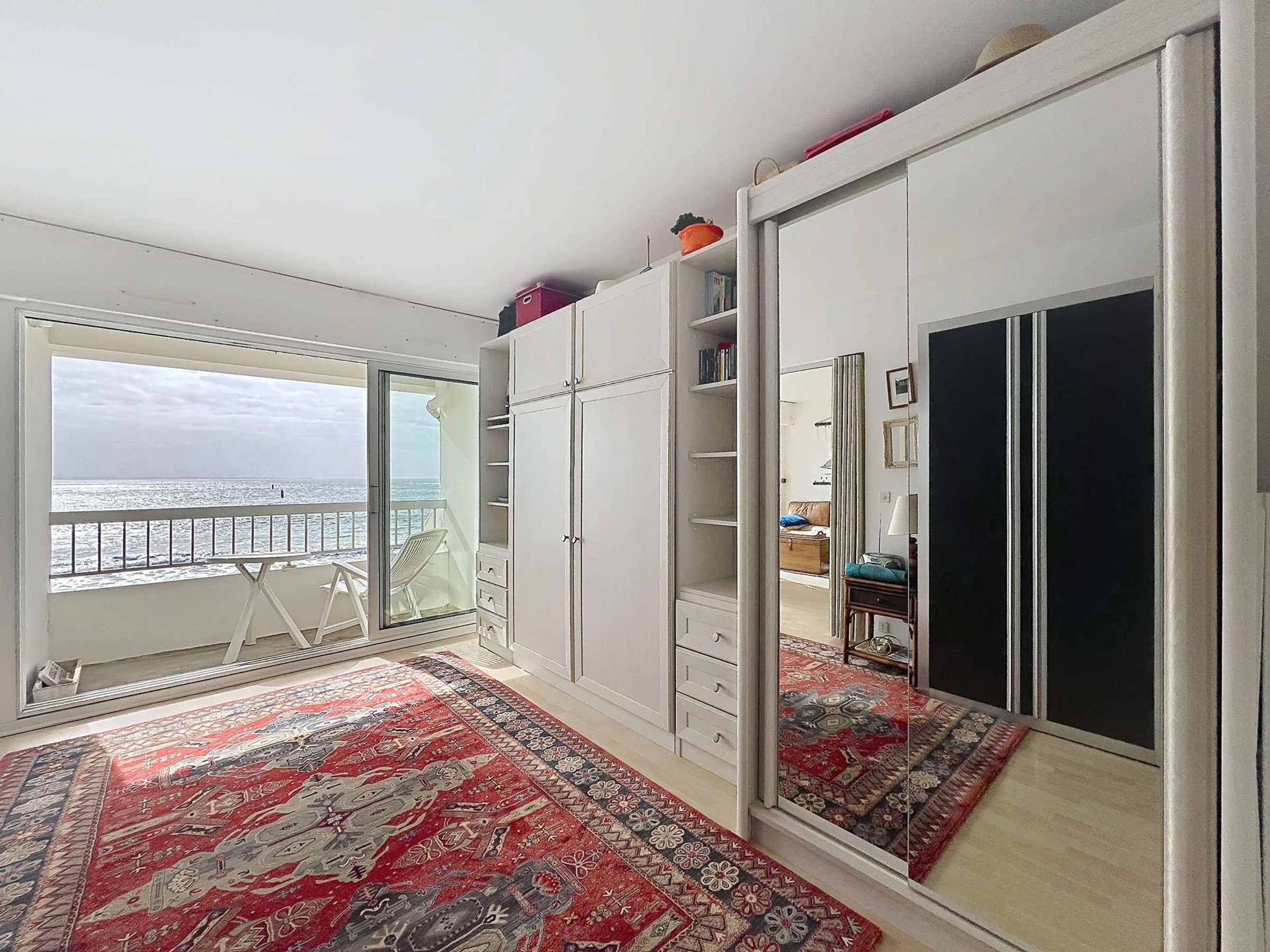 Un agréable balcon exposé sud attenant à la chambre avec son mobilier et sa vue surplombant la grande plage de Quiberon complète ce bien.