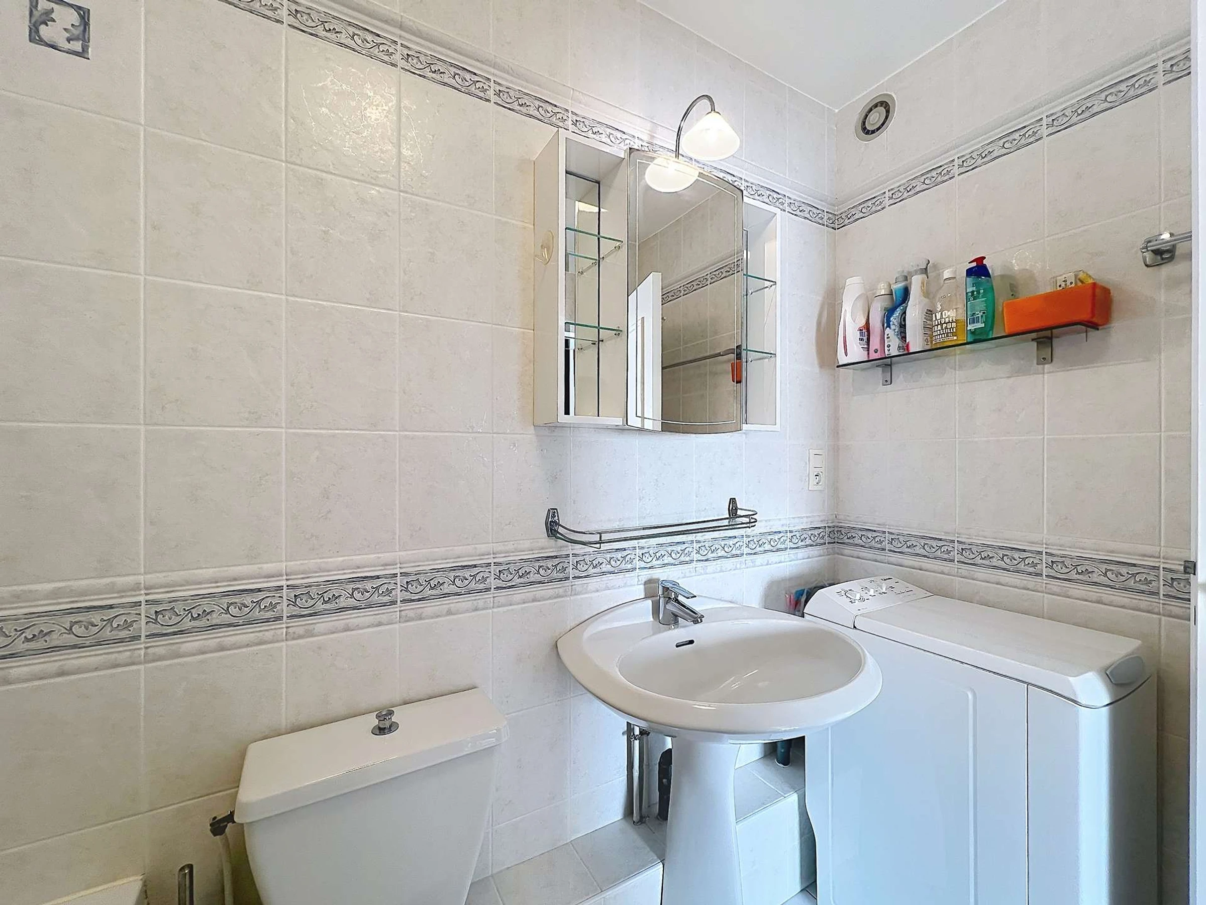 - Une salle de bains attenante à la chambre avec lave-linge et WC.