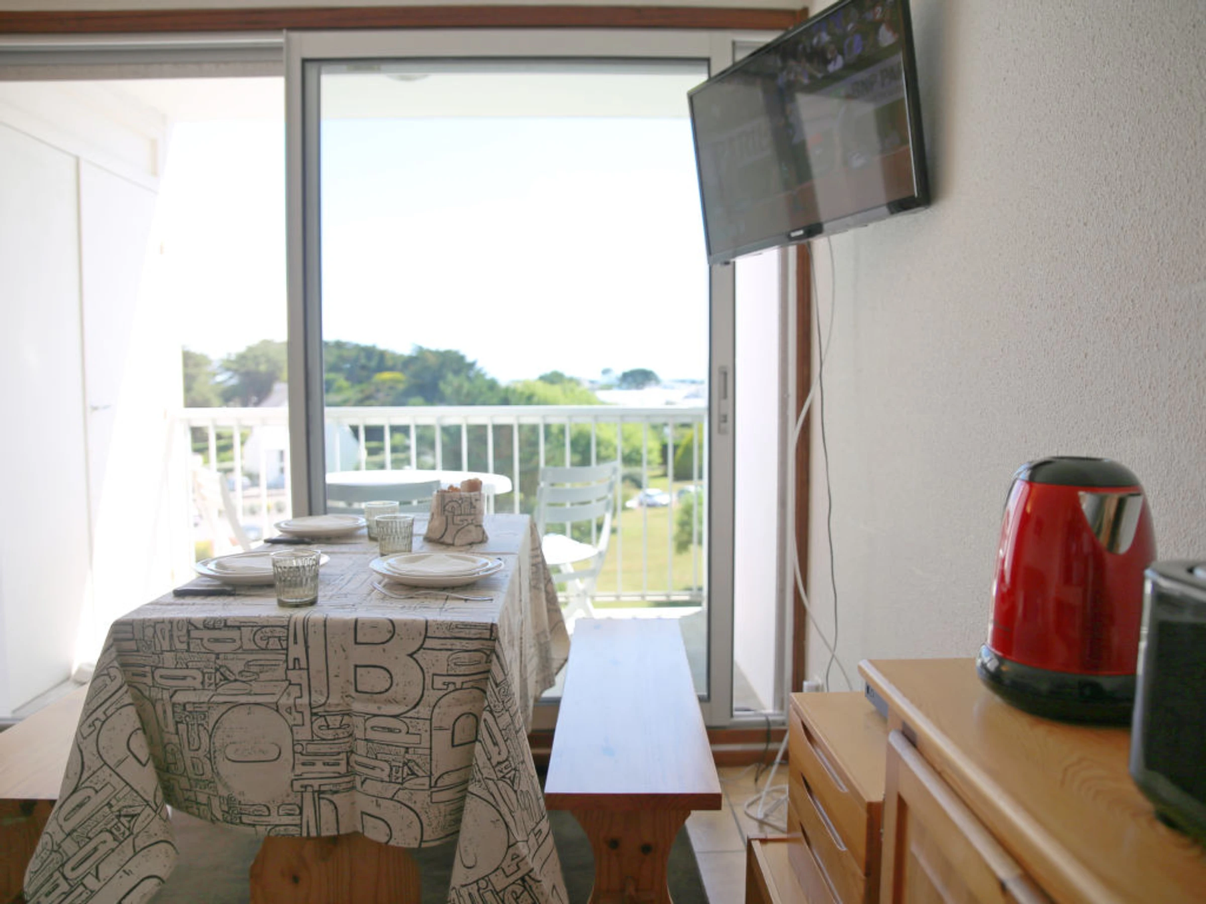 Résidence "An Tour Tan", de 4 étages. En bordure de la localité, à 1.2 km du centre de Quiberon, dans un quartier résidentiel, à 400 m de la mer, à 400 m de la plage. Place de parking. Magasins 1.2 km, piscine couverte 150 m, centre thermal "Thalassothérapie de Quiberon" 900 m. Terrain de golf (9 trous) 2 km, ecole de surf 5 km, ecole de voile 5 km. Attractions à proximité: Quiberon et la côte sauvage 1.5 km, Belle ile en Mer, Houat et Hoedic, Carnac et la Trinité sur Mer 20 km, Le Golfe du Morbihan, Vannes 45 km, Lorient 65 km.