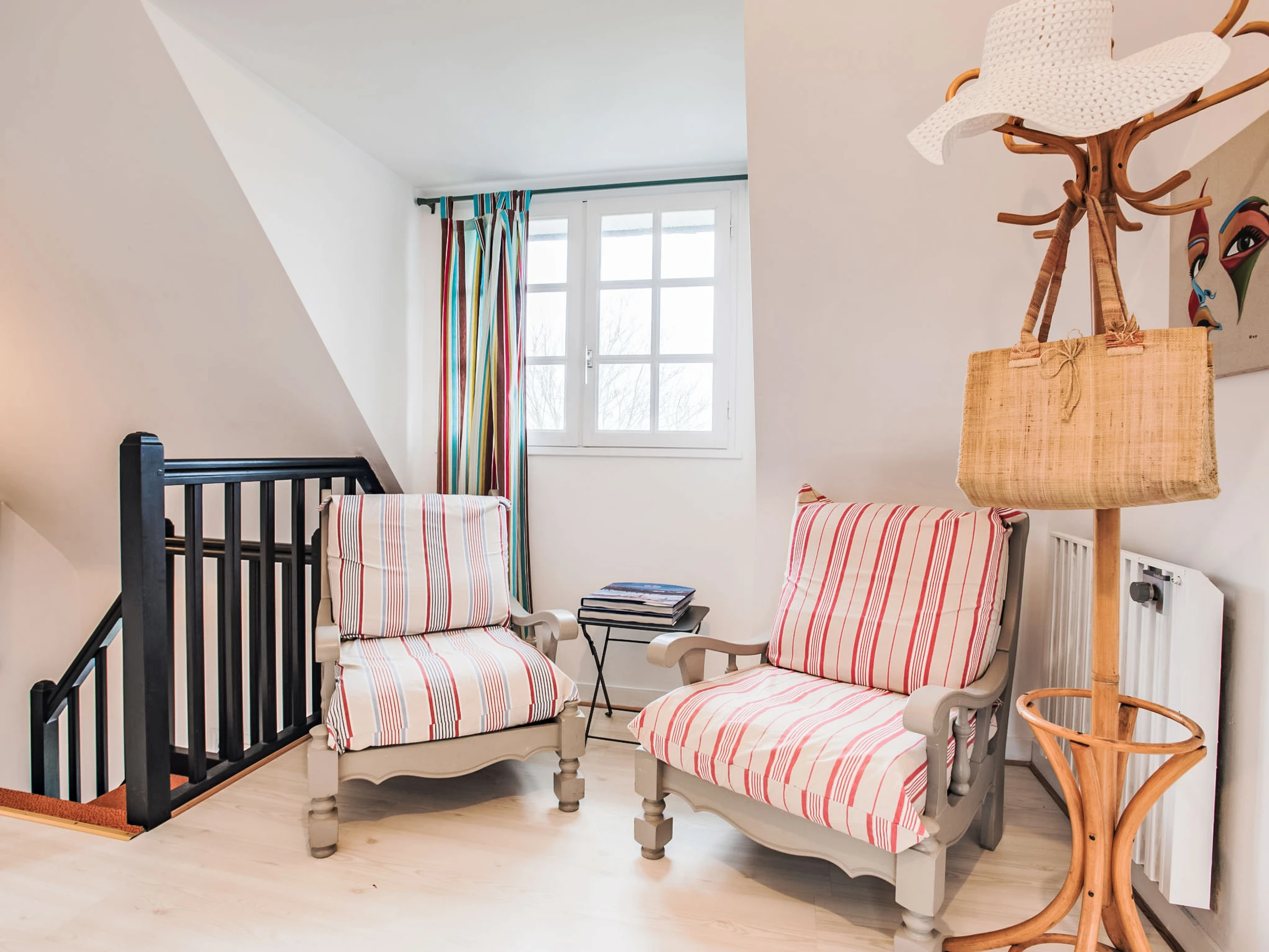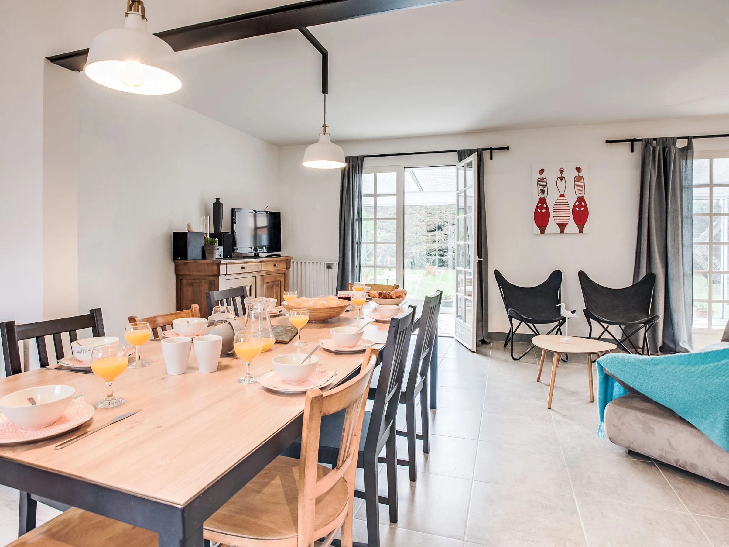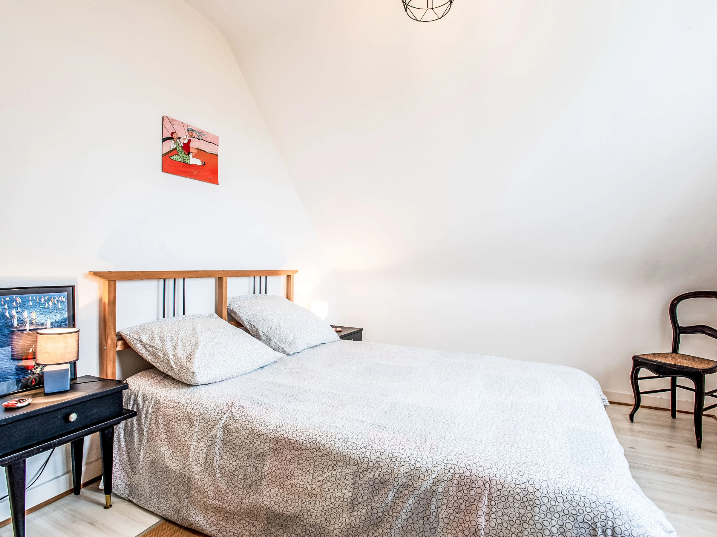 Maison 5 pièces 120 m2 sur 2 niveaux. Rénovée en 2017, aménagement confortable: séjour/salle à manger avec TV (écran plat). Sortie sur la véranda. 1 chambre avec 1 grand-lit (1 x 140 cm, longueur 190 cm), douche/WC. Cuisine ouverte (four, lave-vaisselle, 4 plaques à induction, congélateur, cafetière électrique). À l'étage supérieur: 2 chambres, chaque chambre avec: 1 grand-lit (1 x 140 cm, longueur 190 cm). 1 chambre avec 2 lits (80 cm, longueur 190 cm). Douche, WC séparé. Chauffage au gaz. Meubles de terrasse, barbecue, chaises longues (4). Vue sur le jardin. A disposition: lave-linge, fer à repasser. Internet (Connexion WIFI). Clé USB (inclus). Place de parking, garage sur le terrain près de la maison. Veuillez noter: détecteur de fumée. [hidden]