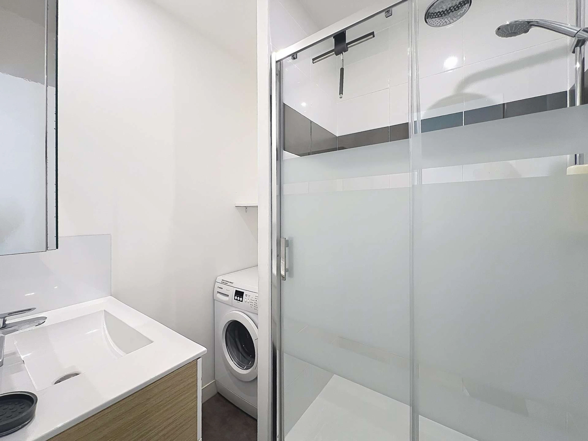 -une salle d’eau avec douche à l’italienne et machine à laver,