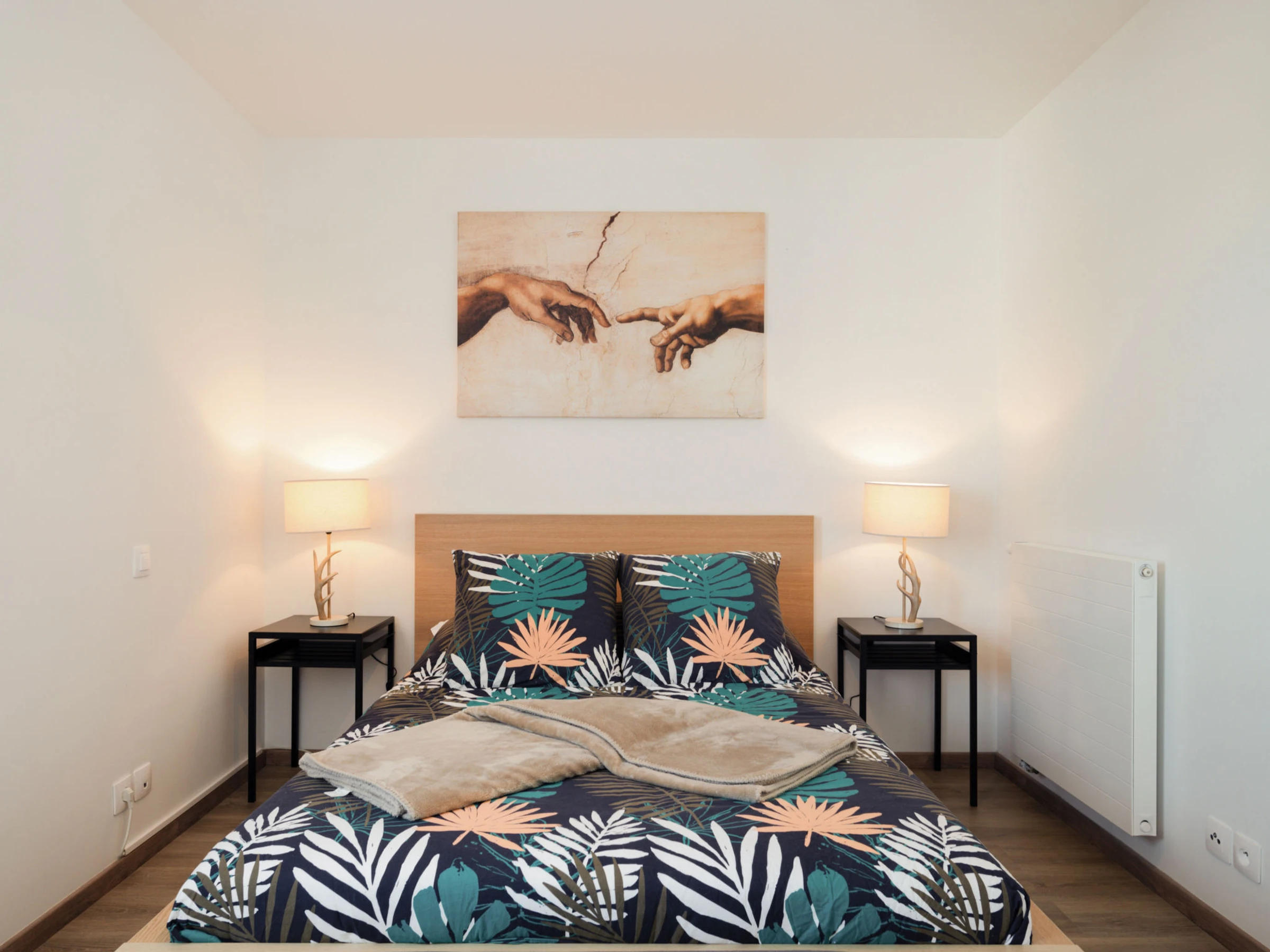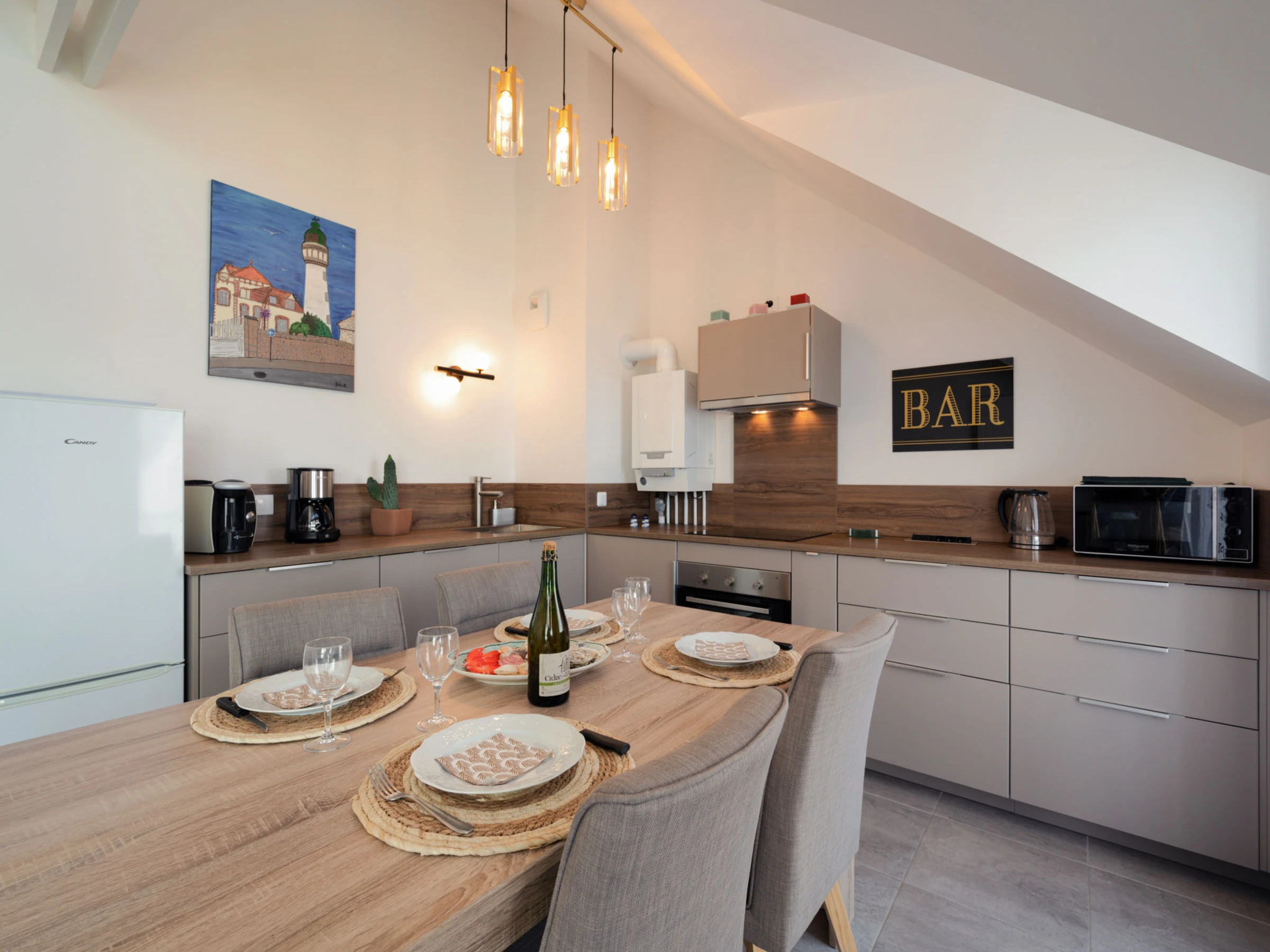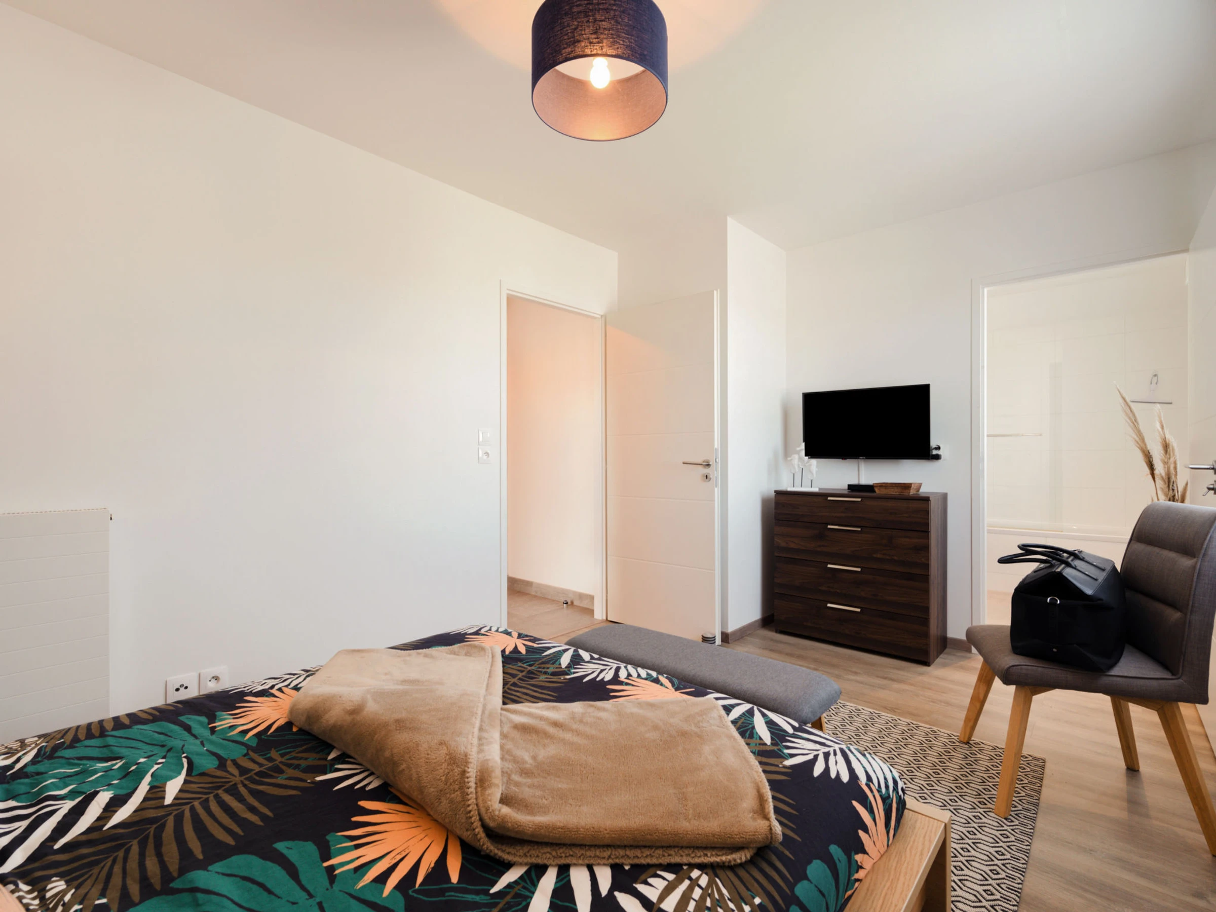 "Parc Océan", apt 2 pièces 43 m2 au 3ème étage. Aménagement confortable: séjour/salle à manger avec 1 divan-lit double (1 x 160 cm, longueur 200 cm), TV (écran plat). Sortie sur la terrasse. 1 chambre avec 1 grand-lit (1 x 140 cm, longueur 190 cm), TV (écran plat). Cuisine ouverte (four, 4 plaques vitrocéramiques, bouilloire électrique, cafetière électrique, combiné micro-ondes). Salle de bains, WC séparé. Chauffage. Terrasse 12 m2. Meubles de terrasse. A disposition: lave-linge. Internet (Connexion WIFI, gratuit). Place de parking No 6. Veuillez noter: logement non-fumeur. Détecteur de fumée. Annonce d'un particulier (art 155, IV du CGI).