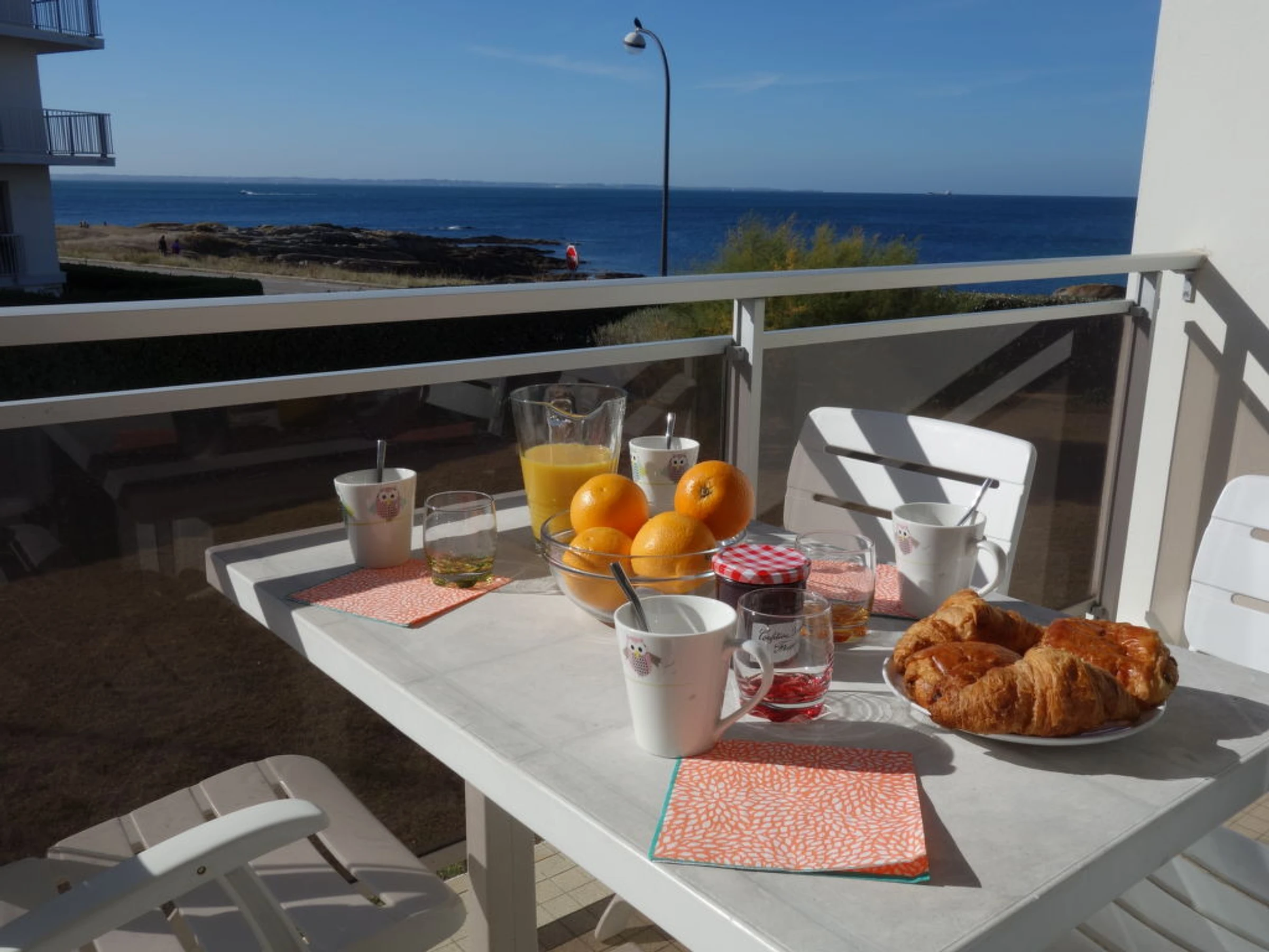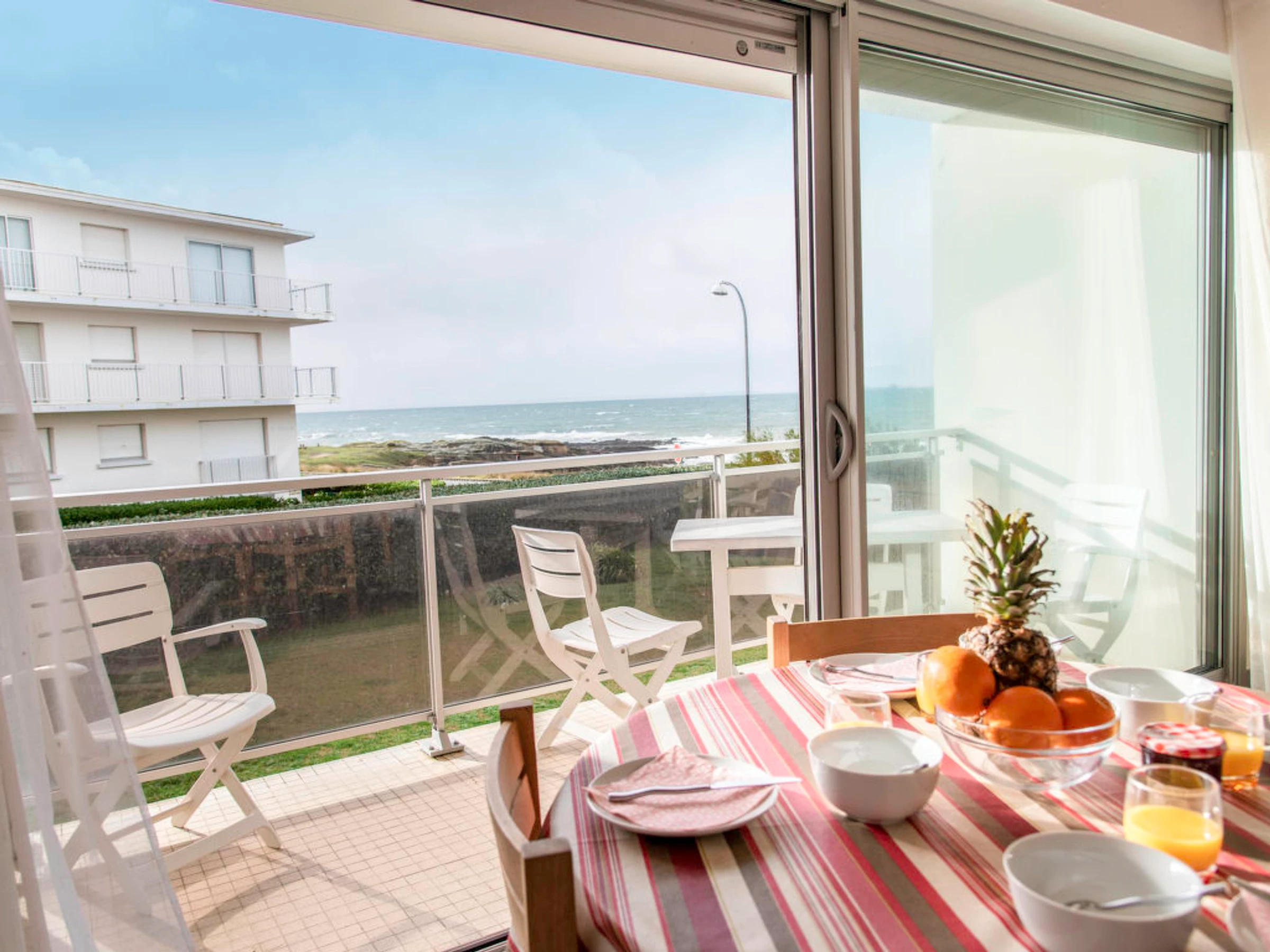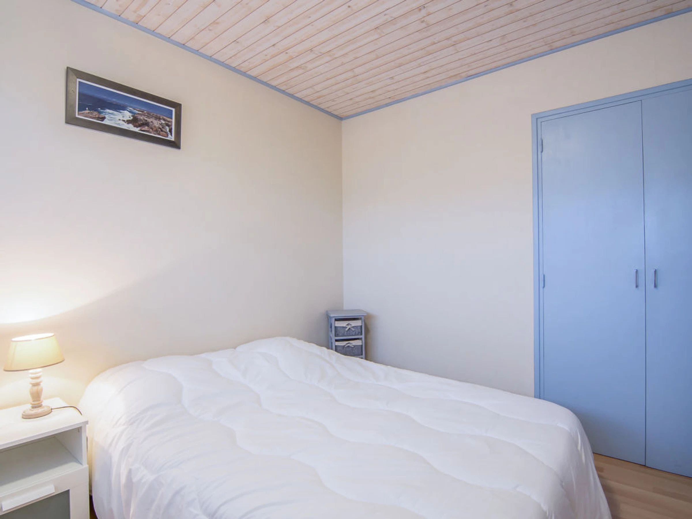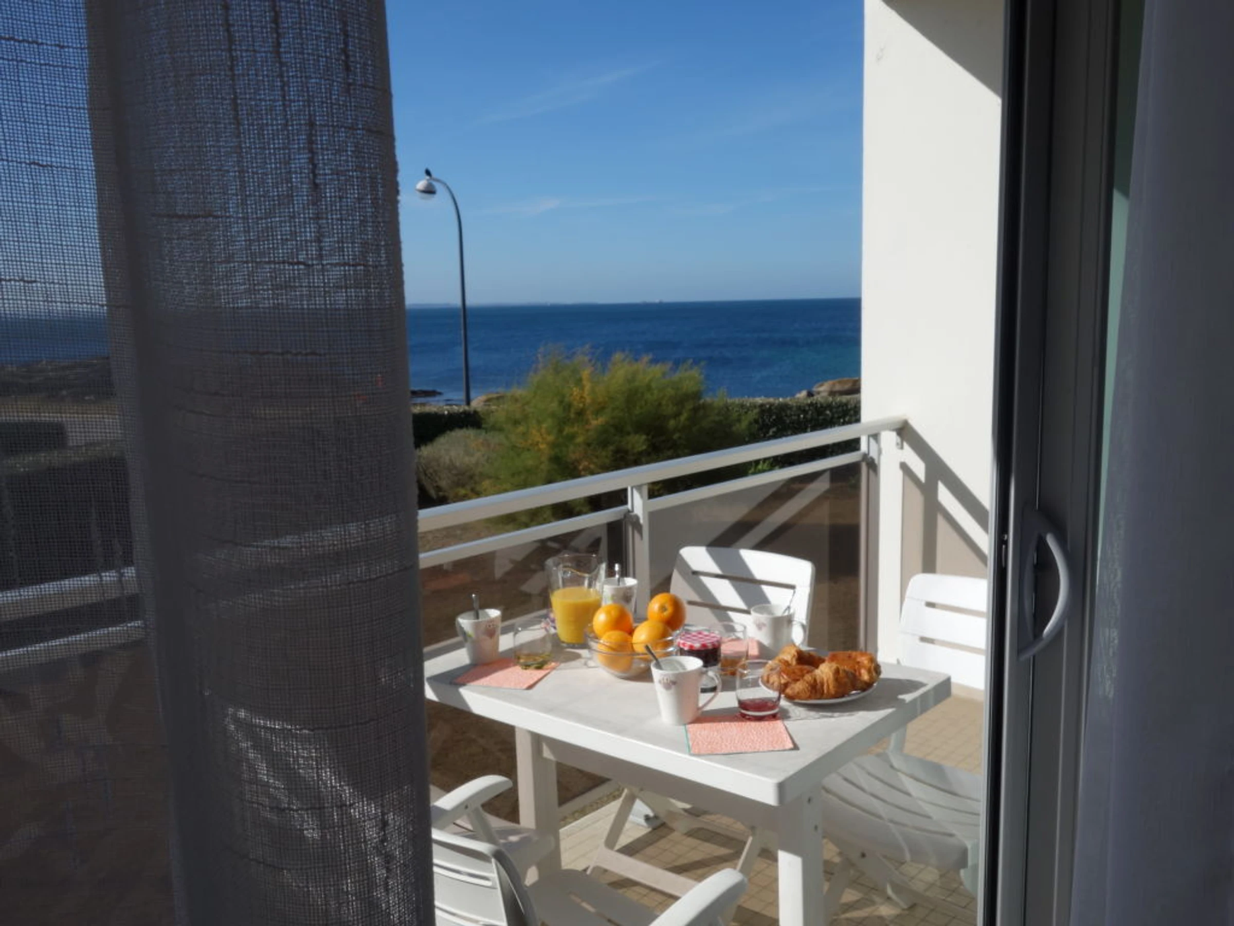 Apt 2 pièces 42 m2 au 1er étage. Aménagement fonctionnel et agréable: séjour/salle à manger avec 1 divan-lit double et TV (écran plat). Sortie sur le balcon. 1 chambre avec 1 grand-lit (1 x 140 cm, longueur 190 cm). Cuisine (four, lave-vaisselle, 3 plaques à induction, four micro-ondes, cafetière électrique). Douche/WC. Chauffage électrique. Mobilier de balcon. Vue sur la mer. A disposition: lave-linge, chaise haute pour enfant, lit bébé. Internet (Connexion WIFI, gratuit). Place de parking. Veuillez noter: détecteur de fumée.