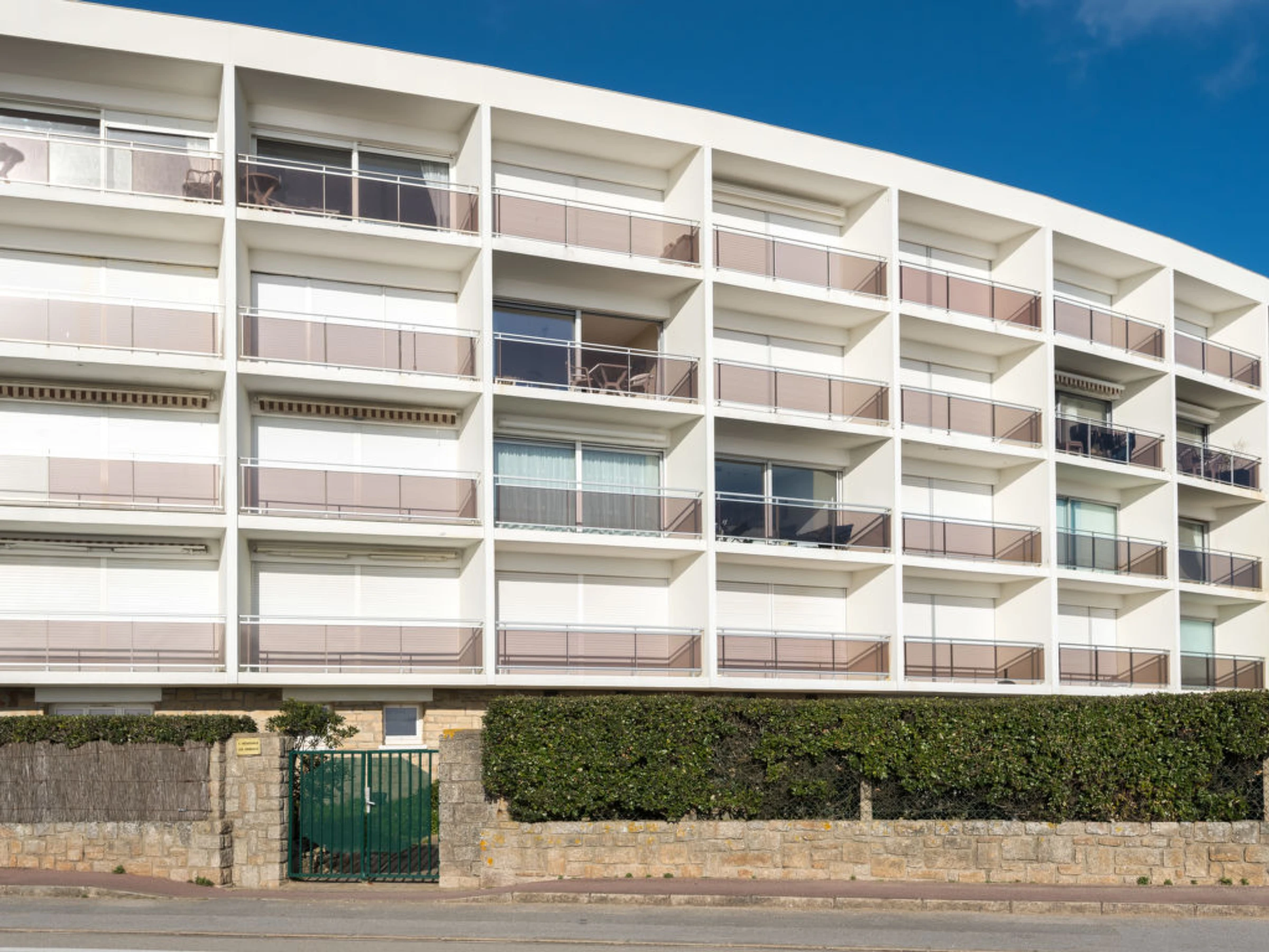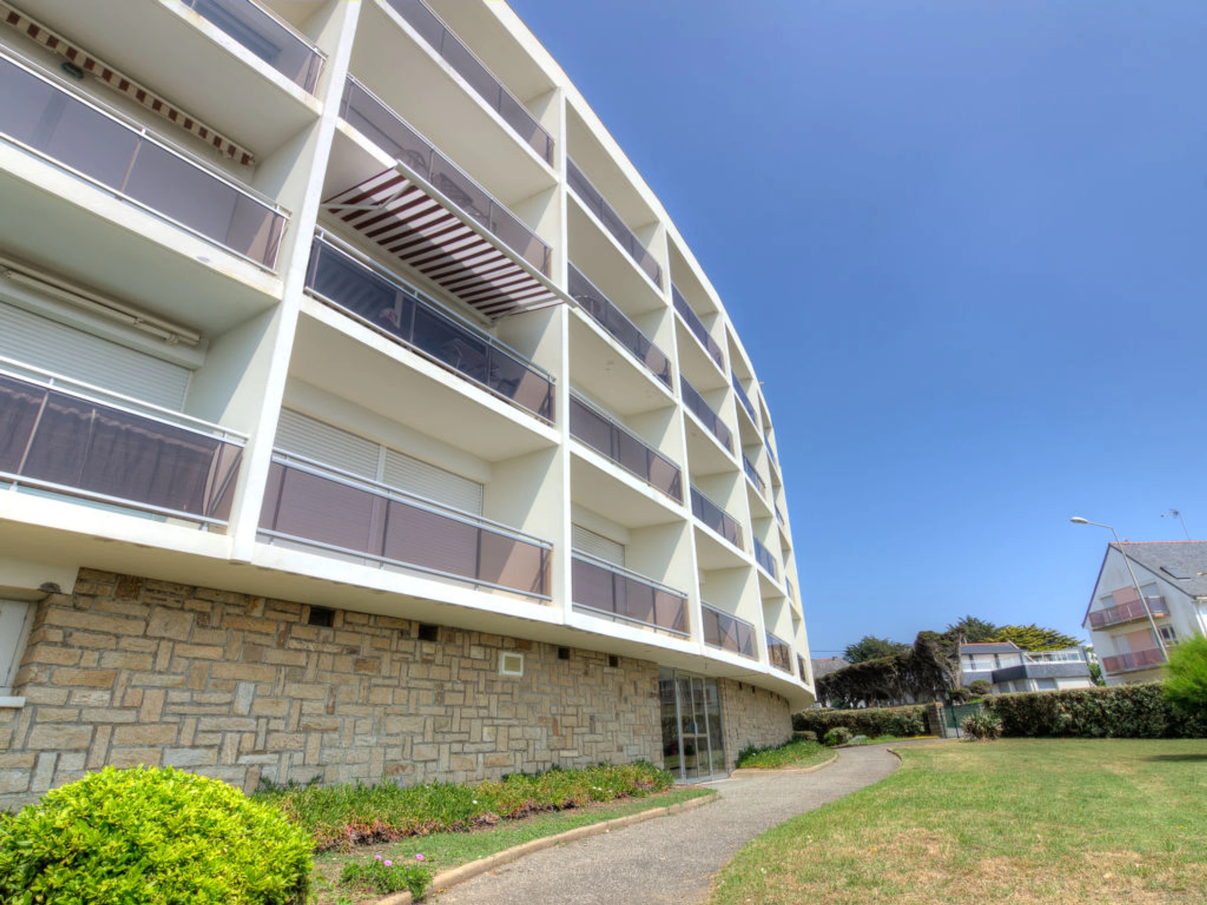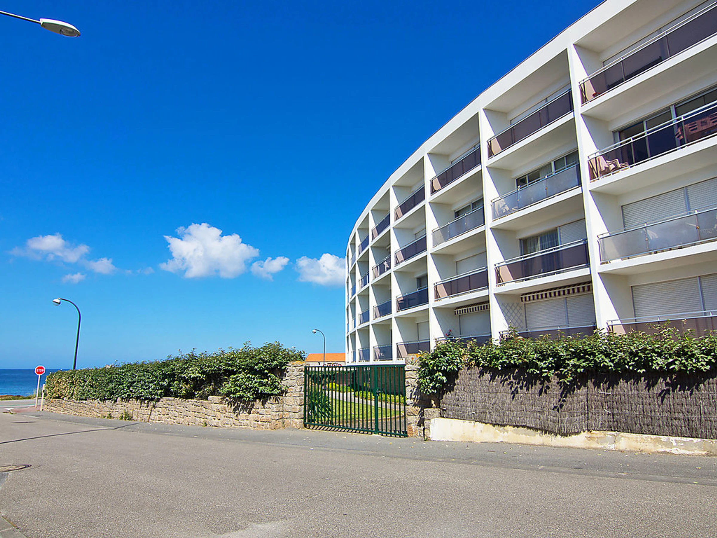 Quiberon: Résidence "Les Gemeaux", de 4 étages. En bordure de la localité, à 1 km du centre, à 50 m de la mer, à 300 m de la plage. Magasins 1 km, magasin d'alimentation 1 km, restaurant 1 km, bar 1 km, gare ferroviaire "Auray" 29 km, plage de sable 250 m, piscine couverte 150 m, centre thermal "Thalassothérapie de Quiberon" 600 m, crique pour baignade 250 m. Marina 1 km, terrain de golf (9 trous) 1 km. Attractions à proximité: Casino de Quiberon 200 m, Thalassothérapie 600 m, Les alignements de Carnac 18 km, Auray 30 m, vannes 47 km, Belle-Ile en mer.