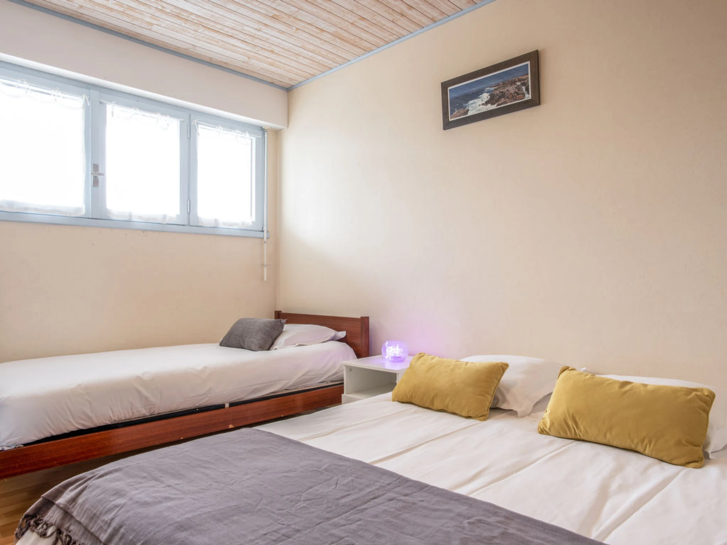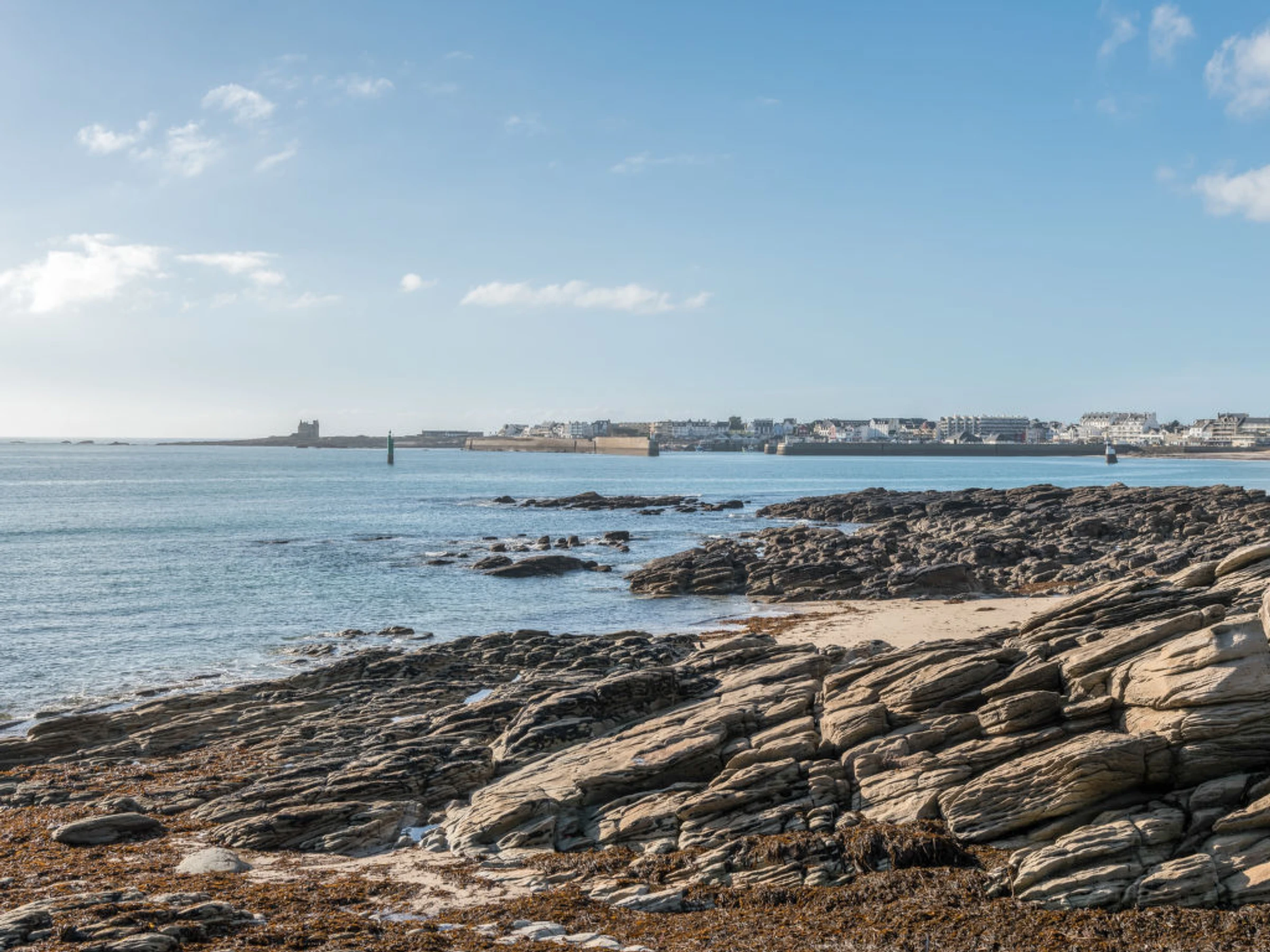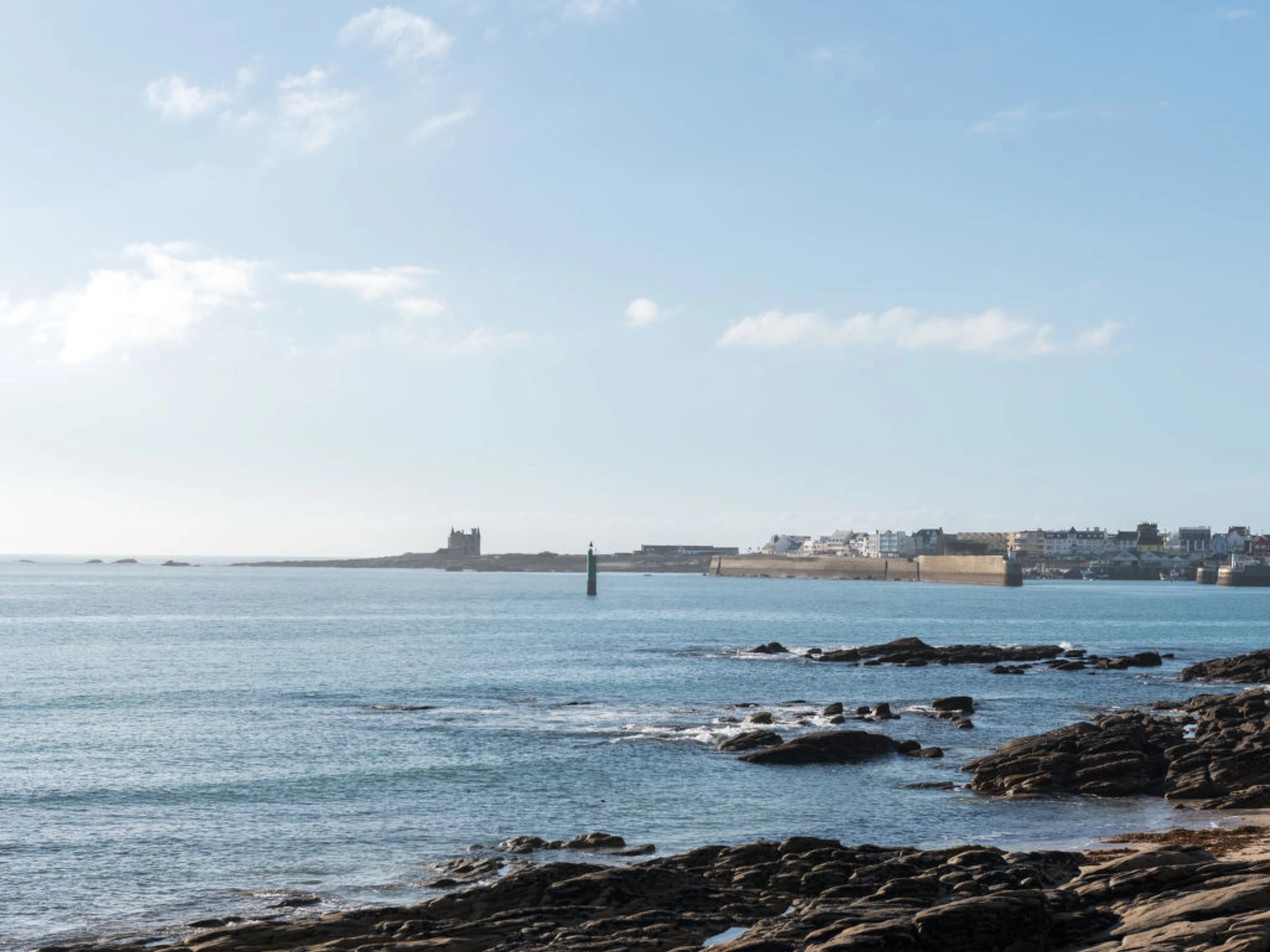 Quiberon: Résidence "Les Gemeaux", de 4 étages. En bordure de la localité, à 1 km du centre, à 50 m de la mer, à 300 m de la plage. Magasins 1 km, magasin d'alimentation 1 km, restaurant 1 km, bar 1 km, gare ferroviaire "Auray" 29 km, plage de sable 250 m, piscine couverte 150 m, centre thermal "Thalassothérapie de Quiberon" 600 m, crique pour baignade 250 m. Marina 1 km, terrain de golf (9 trous) 1 km. Attractions à proximité: Casino de Quiberon 200 m, Thalassothérapie 600 m, Les alignements de Carnac 18 km, Auray 30 m, vannes 47 km, Belle-Ile en mer.