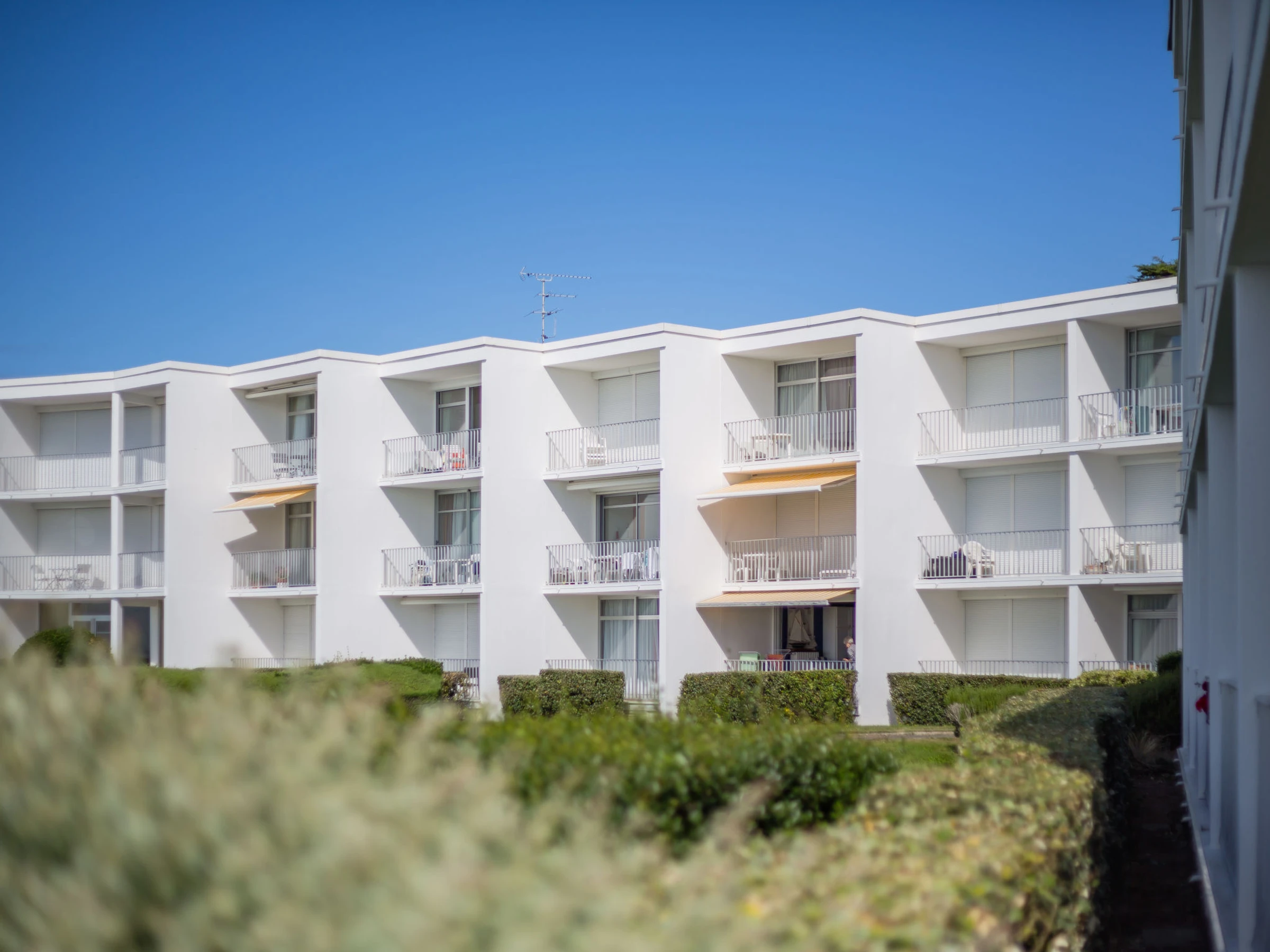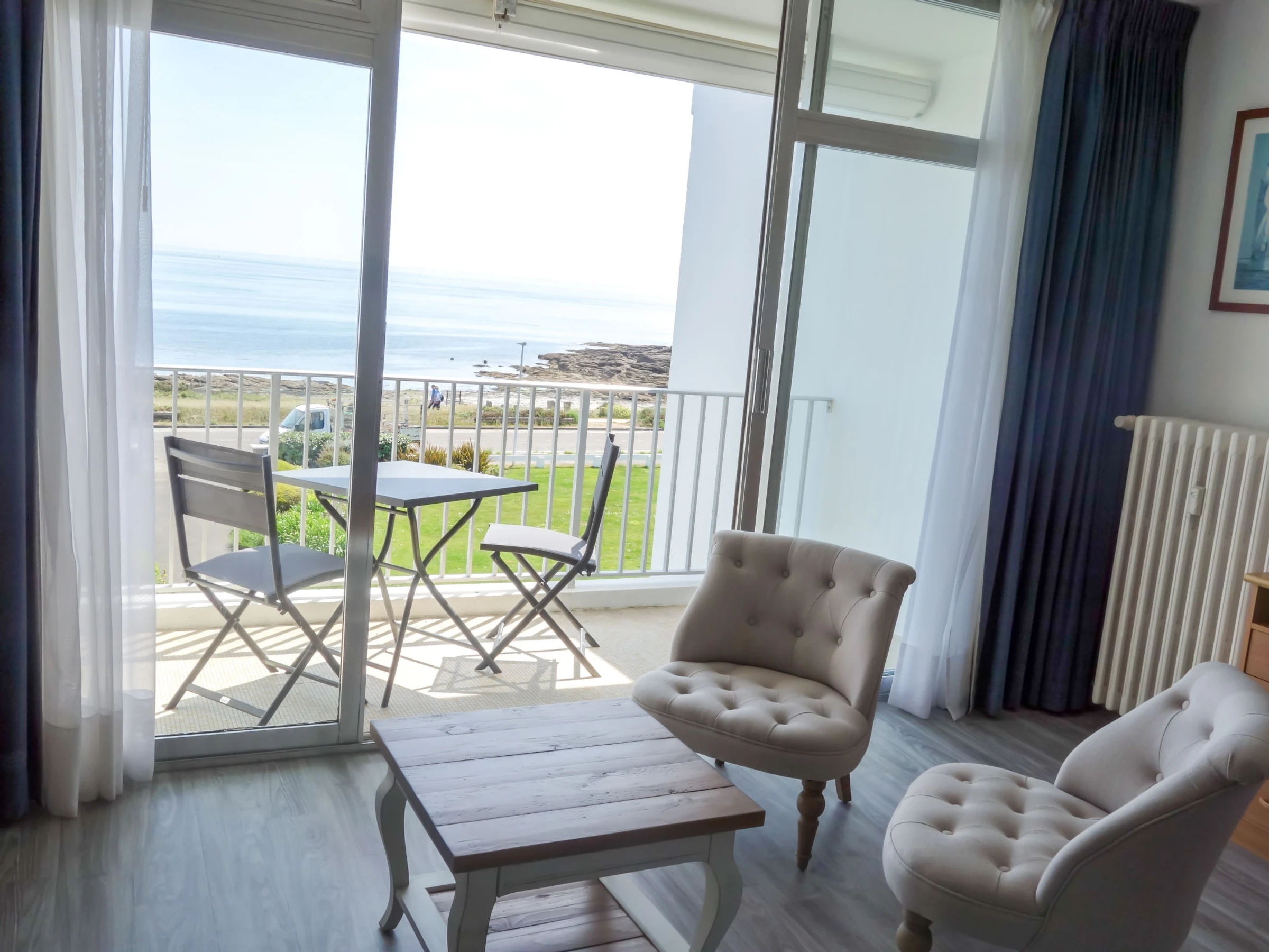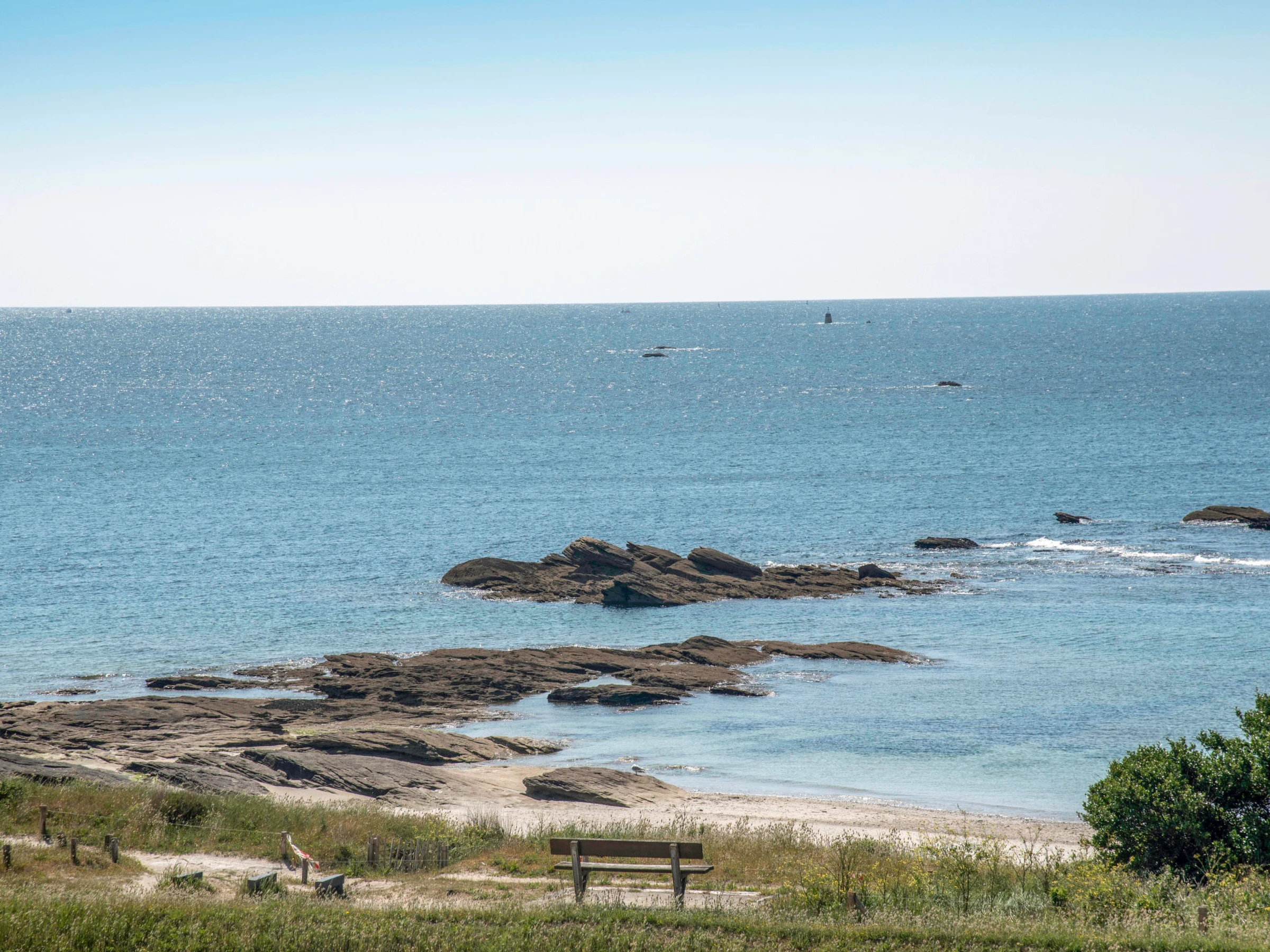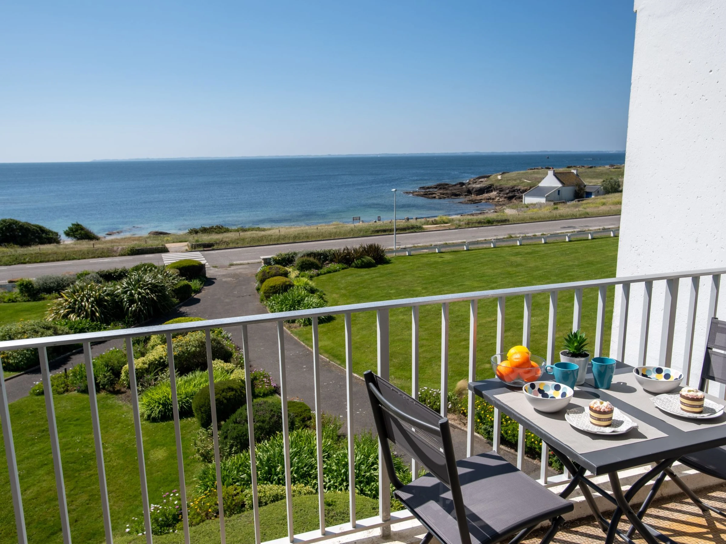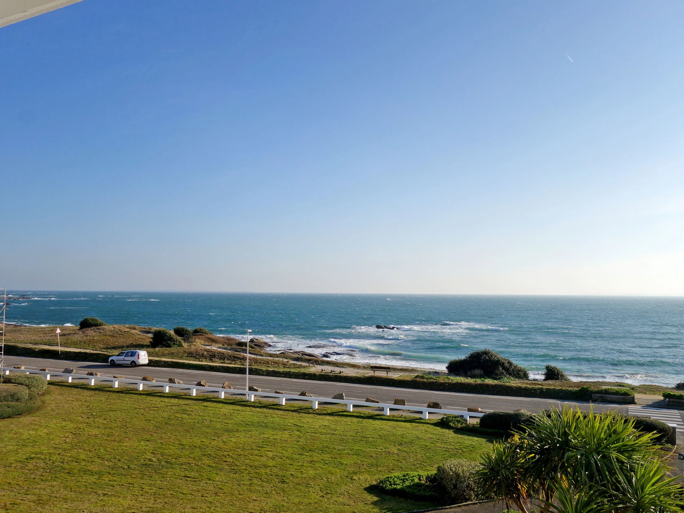 Quiberon: Petite résidence "Les Trois Iles", de 2 étages. Dans la localité, à 2 km du centre de Quiberon, situation tranquille, à 20 m de la mer, à 30 m de la plage. Place de parking. Magasins 1.5 km, magasin d'alimentation 2 km, supermarché 2.4 km, restaurant 2 km, gare ferroviaire "Quiberon" 2.5 km, ferry-boat "Port Maria" 2.5 km, plage de sable "Plage du Conguel" 600 m, centre thermal "Thalassothérapie de Quiberon" 200 m. Marina 3 km, terrain de golf (3 trous) 500 m, ecole de voile 3 km. Attractions à proximité: Presqu'ile de Quiberon et côte sauvage 3 km, Gare maritime les iles Houat, Hoedic. 3 km, Les alignements de Carnac 26 km, Auray et le port de St Goustan 33 km, Vannes 48 km, Lorient 63 km.