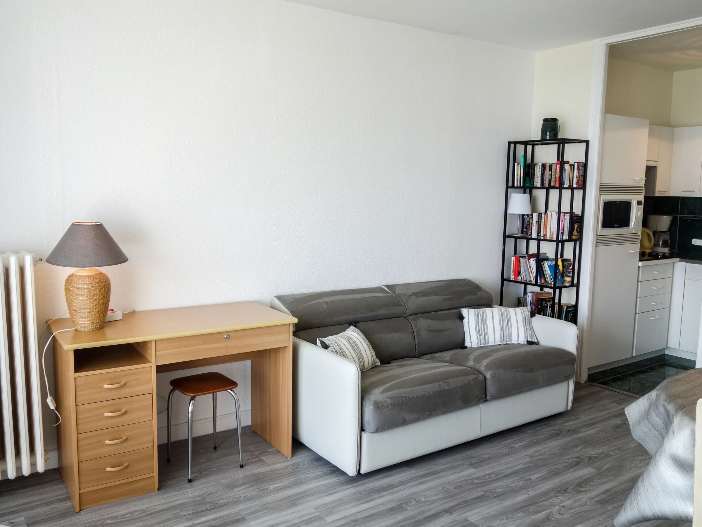 Studio 35 m2 au 2ème étage. Clair, aménagement fonctionnel et agréable: séjour/chambre à coucher avec 1 divan-lit double (1 x 140 cm, longueur 190 cm), TV (écran plat). Sortie sur le balcon. Coin cuisine (four, 4 plaques vitrocéramiques, micro-ondes). Douche/WC. Chauffage au gaz. Balcon 6 m2. Mobilier de balcon. Très belle vue sur la mer et les alentours. A disposition: lave-linge, fer à repasser, sèche-cheveux. Internet (Connexion WIFI, gratuit). Veuillez noter: logement non-fumeur. Détecteur de fumée.