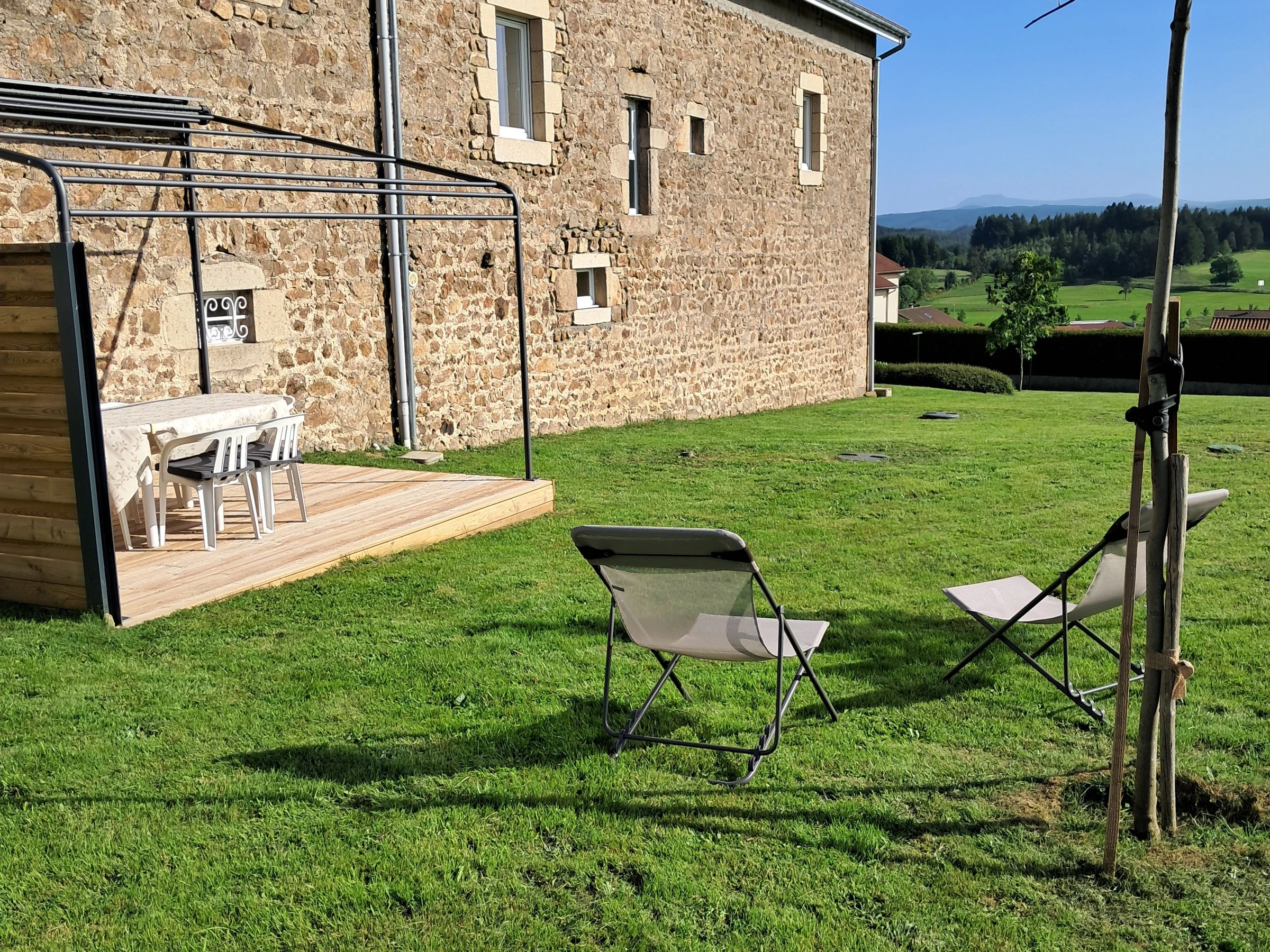 Terrasse privée avec mobilier d'extérieur pour profiter du soleil et des repas en plein air.