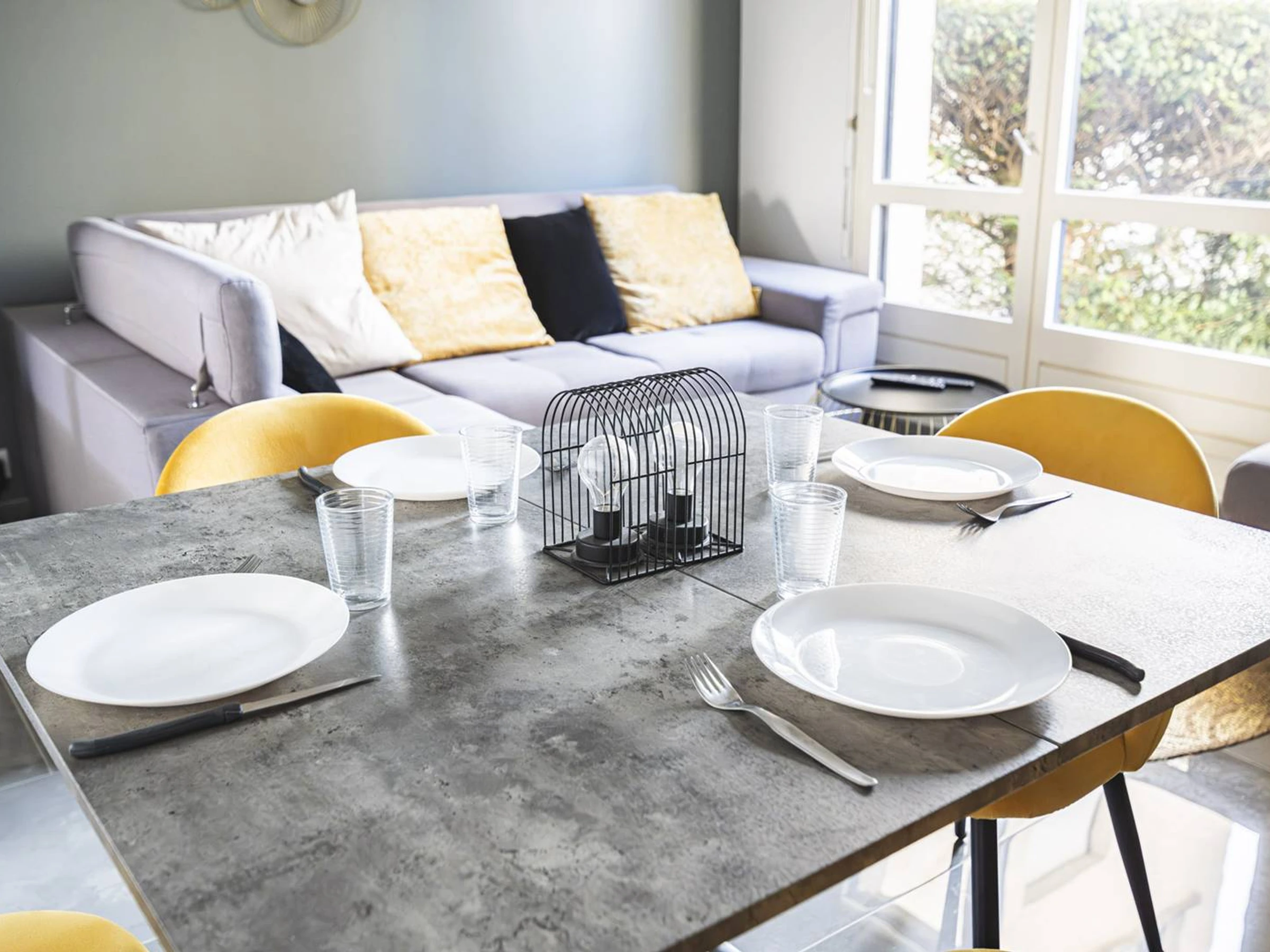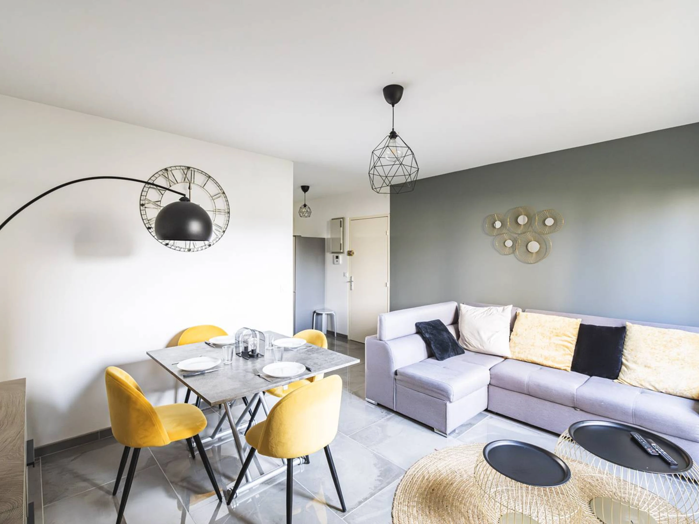L'appartement est composé d'un grand salon, parfait pour des soirées détente ou des moments conviviaux. Vous y trouverez une ambiance chaleureuse et confortable avec une décoration soignée.