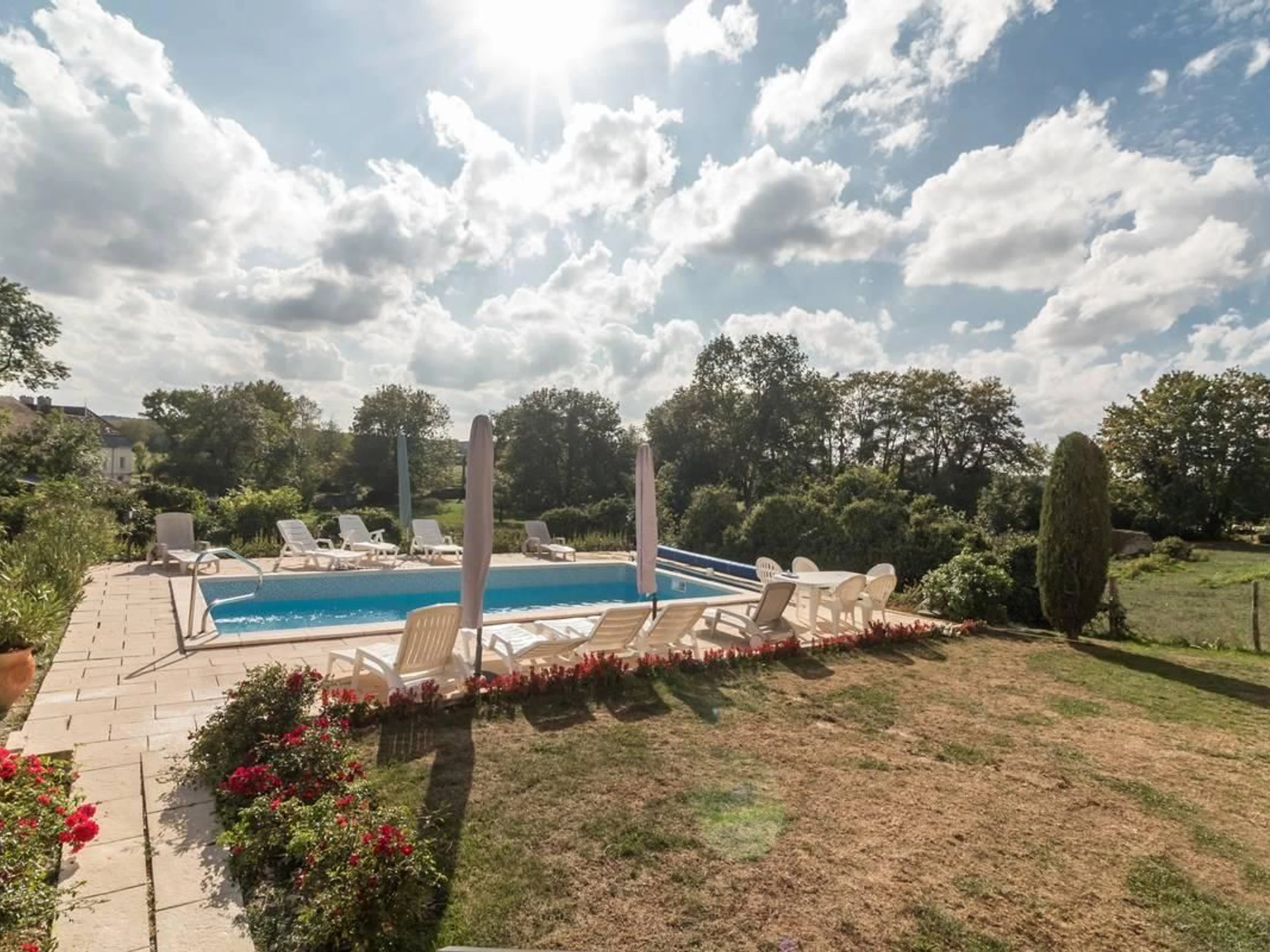 Cour commune fermée 1600 m². Terrasse. Piscine chauffée (8 x 4 m) commune avec les propriétaires et l'autre gîte,  avec accès sécurisé, ouverte de mai à septembre. Animaux non admis.