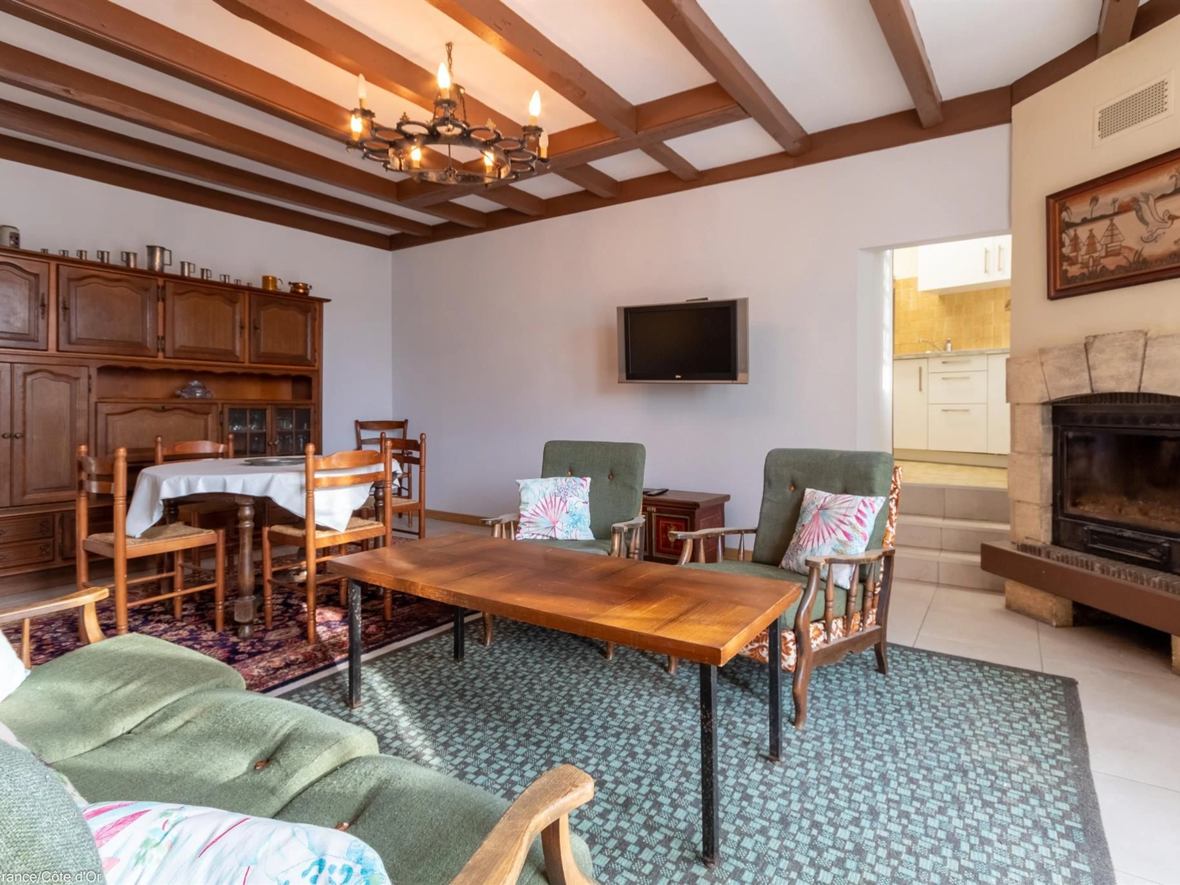 Rez-de-chaussée : salle à manger-salon avec TV et cheminée à foyer fermé. Cuisine intégrée. Salle d'eau avec WC séparé.