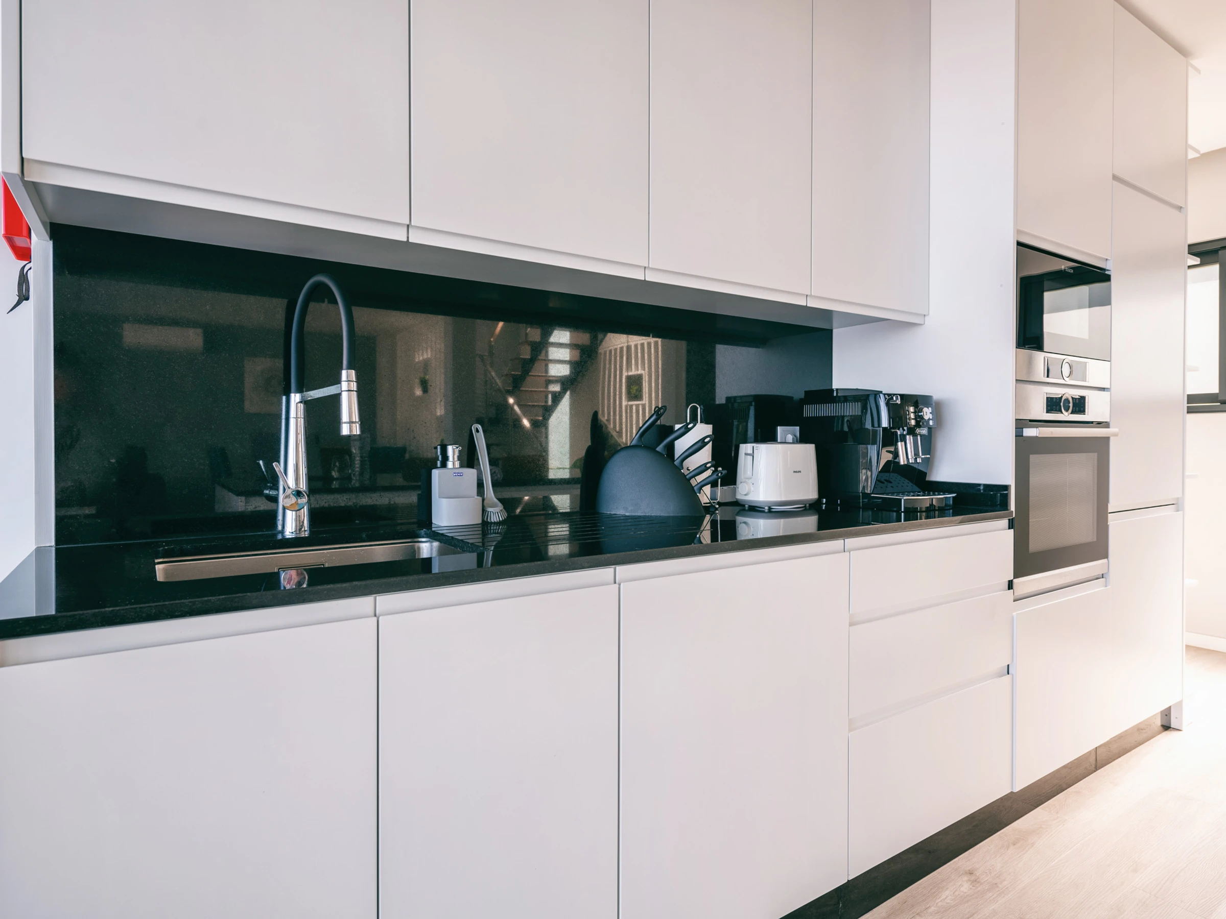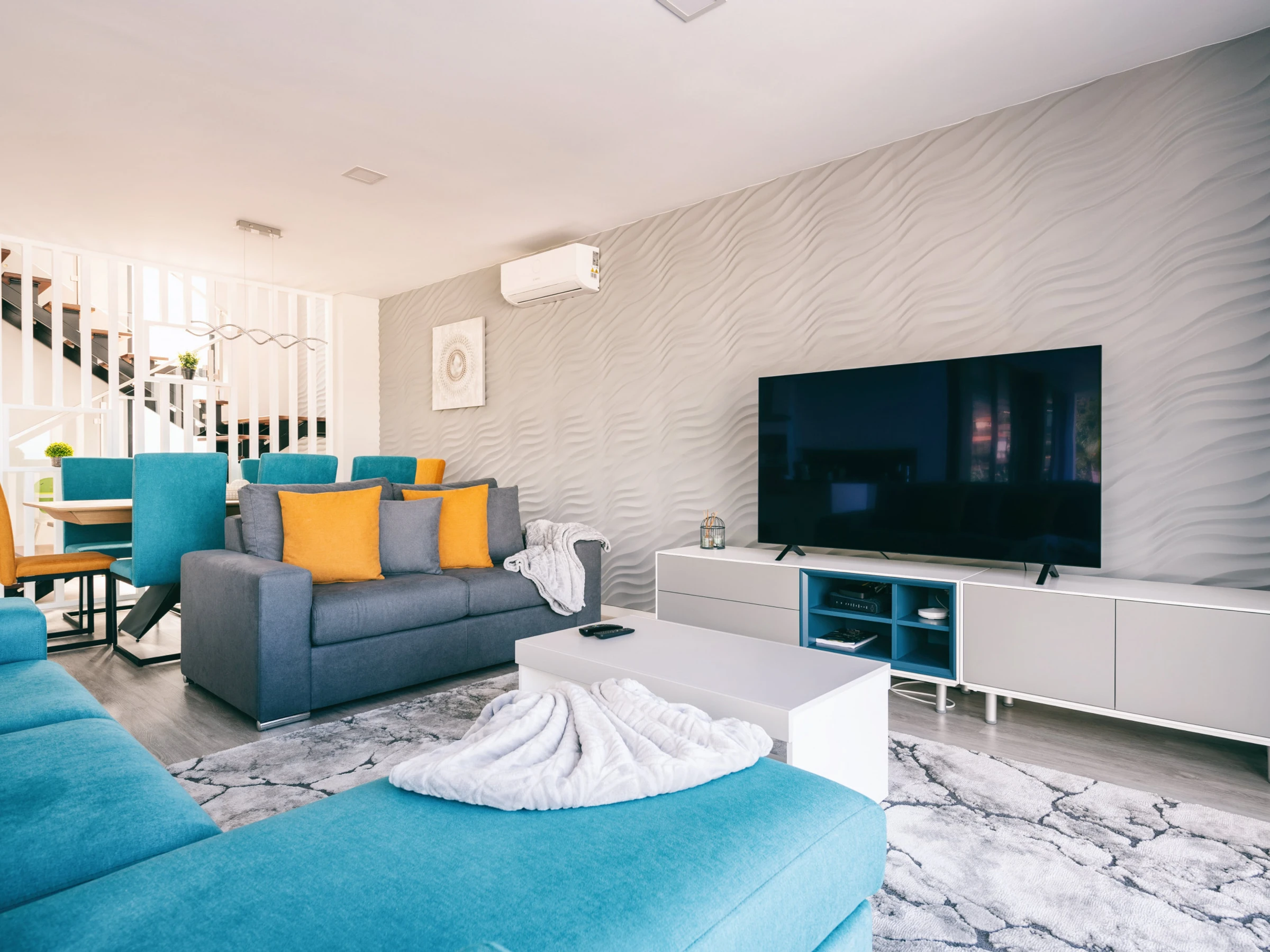 La cuisine est entièrement équipée de tous les appareils et ustensiles essentiels nécessaires, y compris un réfrigérateur, un congélateur, un four, un micro-ondes, une plaque de cuisson, des couverts, des assiettes et des ustensiles de cuisine. Un lave-linge et un sèche-cheveux sont également disponibles pour l'usage des invités. L'espace de vie comprend une Smart TV avec boîtier et la climatisation.