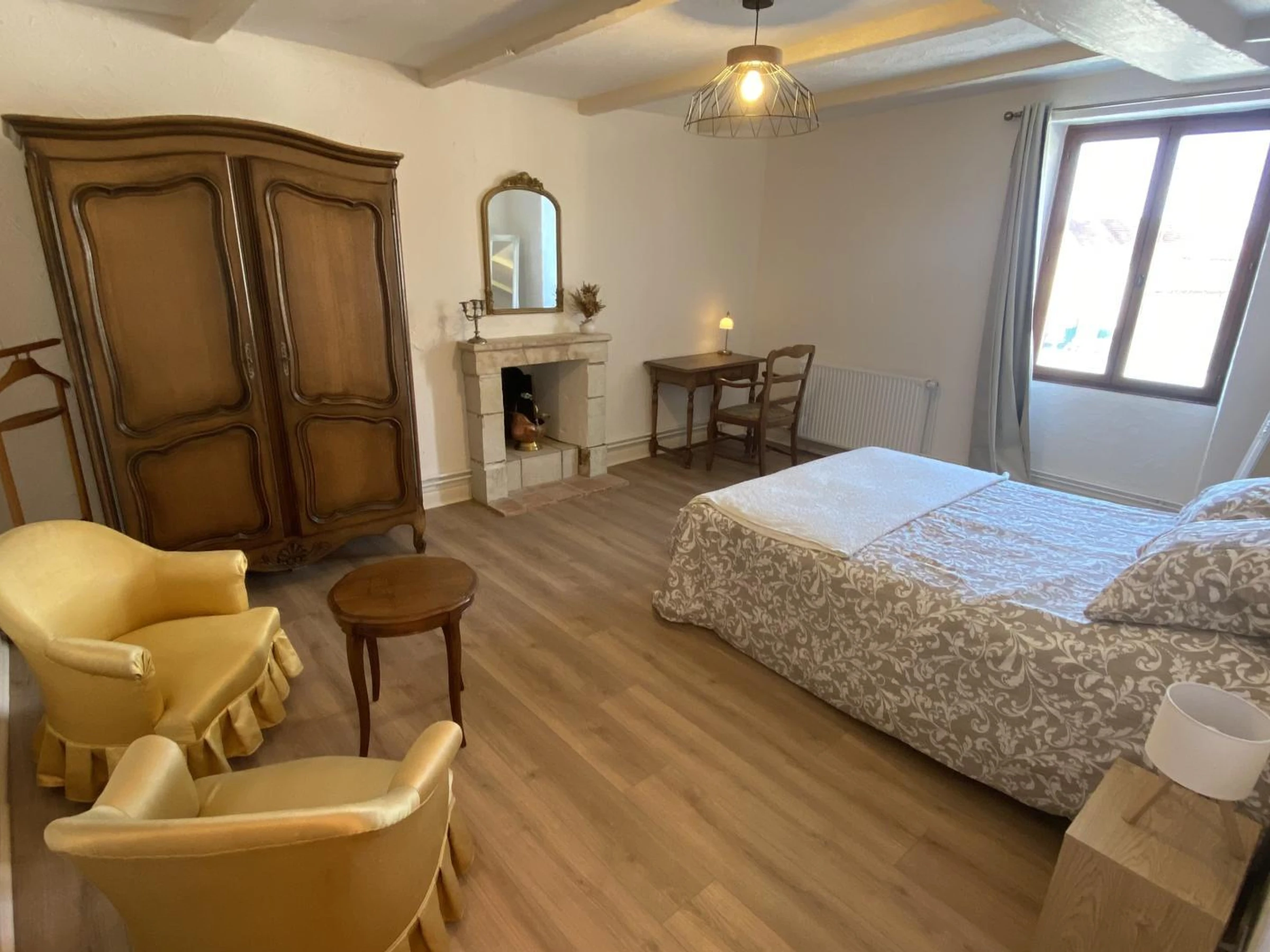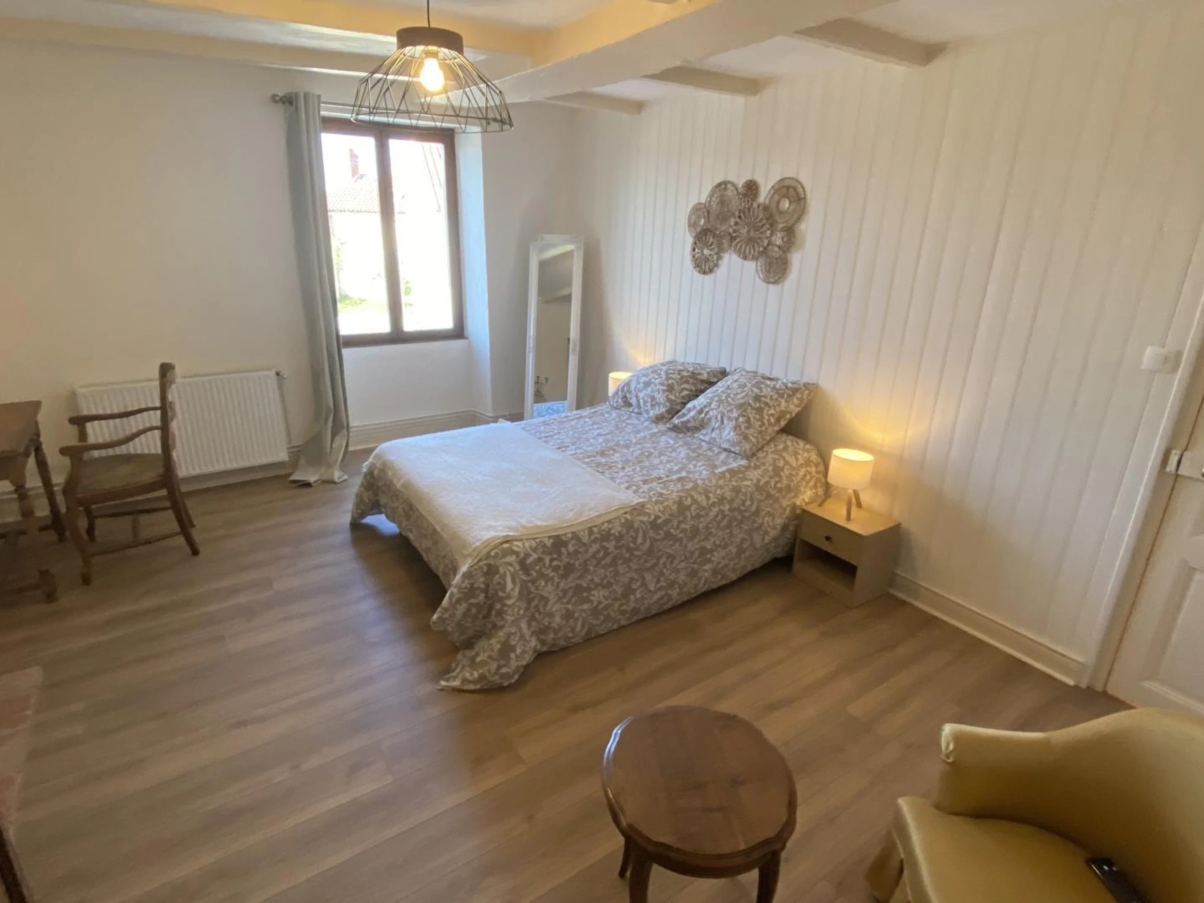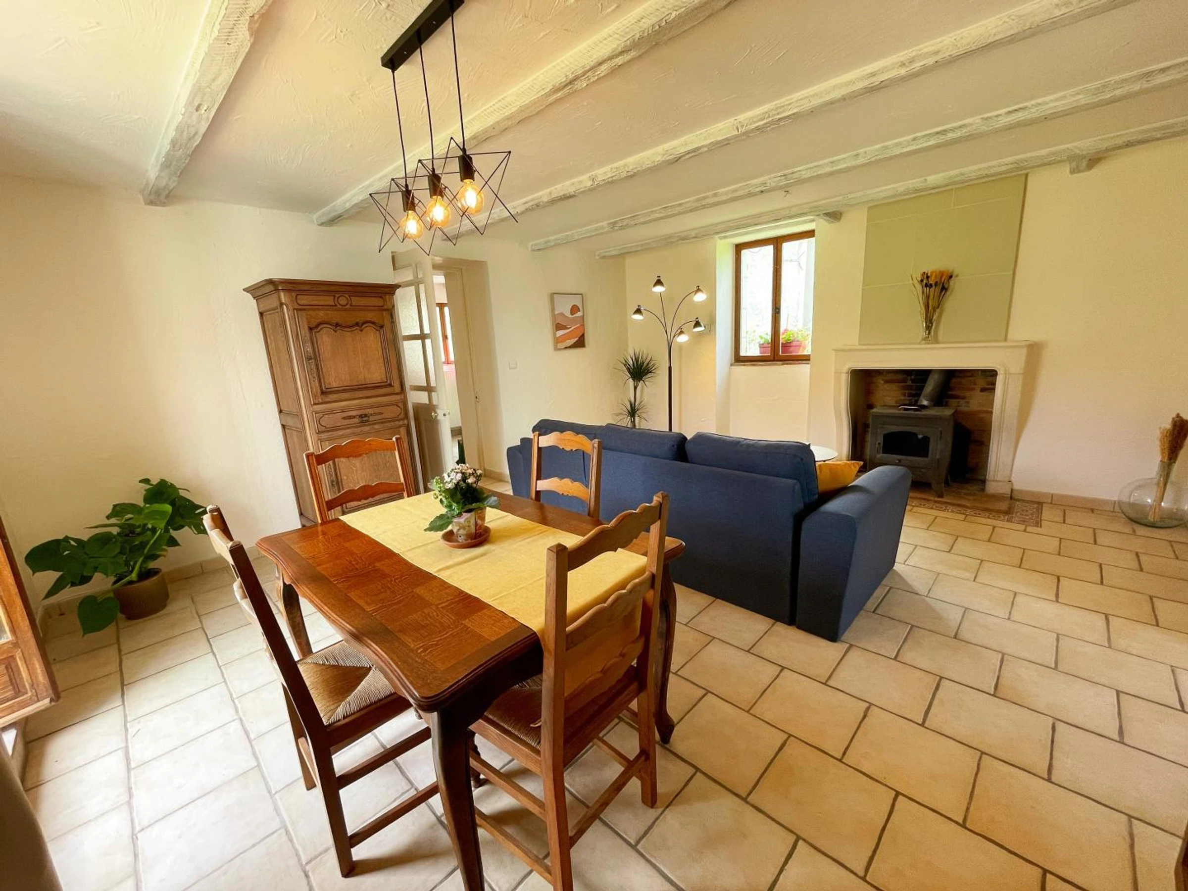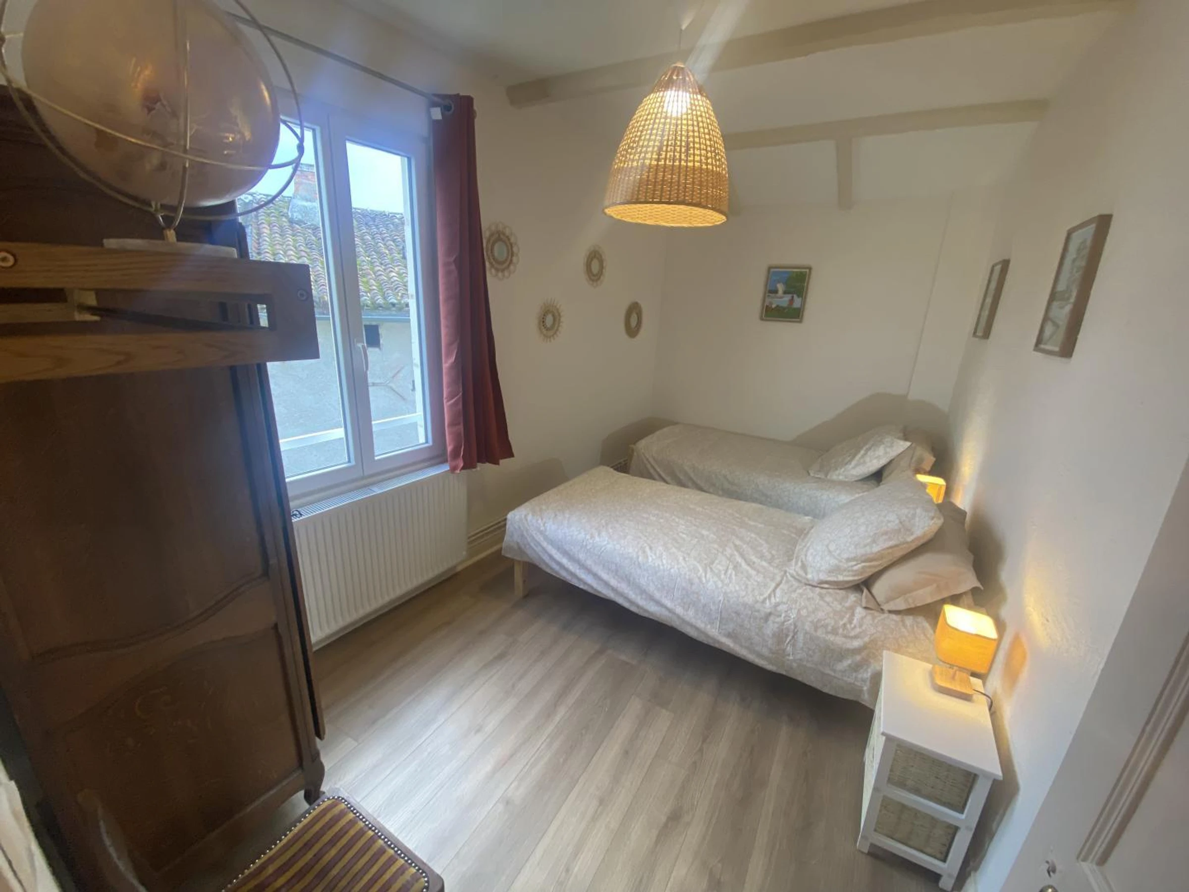 Étage : 1 ch (1 lit 140x190), 1 ch (2 lits 90), salle d'eau avec WC. Chauffage inclus aux tarifs. Wifi.
