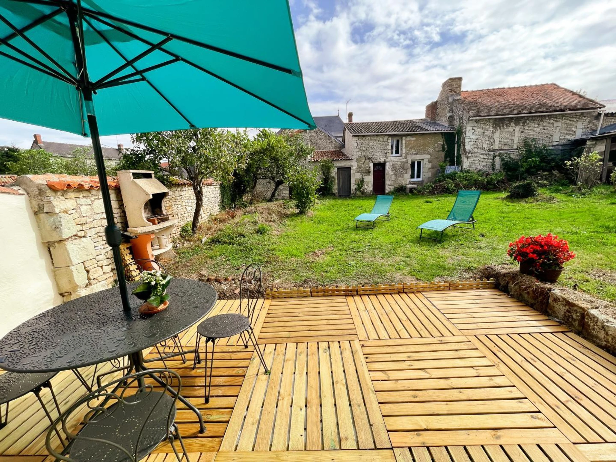 Tennis, table de ping-pong, terrain de pétanque et aire de jeux pour enfants à 50 mètres. A quelques encablures de la Touraine, vous séjournerez ici en Poitou, à Nueil-sous-Faye, située aux portes de la Cité du Cardinal. Poitou et Touraine sont deux anciennes provinces intimement liées, terre natale de la famille du Cardinal de Richelieu. Votre gîte est une maison en cœur de village rénovée en 2025 où calme, confort, équipements sauront rendre votre séjour des plus agréable. La proximité de la "Cité idéale", bijou d'architecture où le parc de l'ancien château du Cardinal demeure incontournable (seule l'Orangerie subsiste aujourd'hui) vous offrira le théâtre de balades savoureuses. La ligne verte Richelieu-Chinon est à découvrir absolument le temps d'une balade à vélo et le château du Rivau sera aussi l'un de vos proches voisins. Entre Futuroscope et Châteaux de la Loire, entre art roman et célèbres édifices de la Renaissance (Chenonceau, Amboise...), vous pourrez également découvrir le Château de Monts-s/-Guesnes et les joyaux de l'Anjou telle l'Abbaye Royale de Fontevraud.