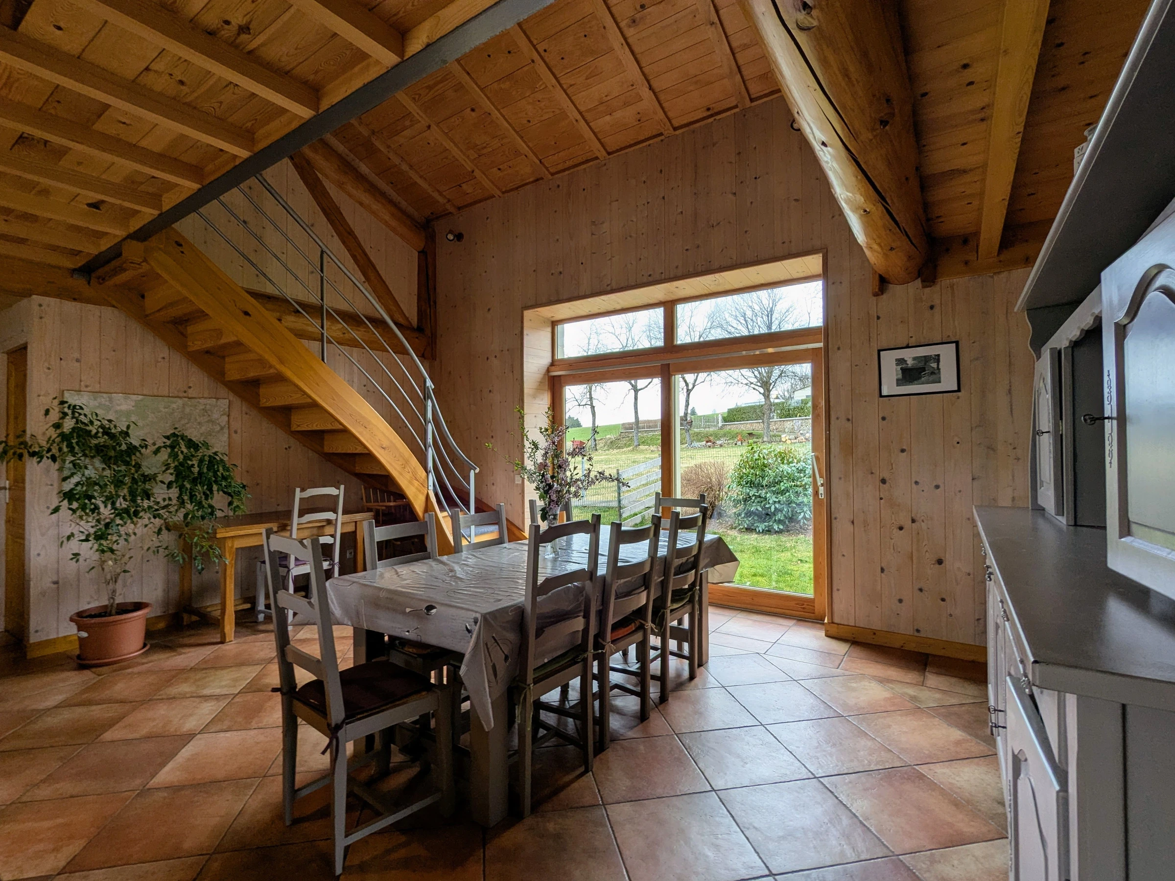 Restaurée à l'aide de matériaux du pays, la maison abrite un volume spacieux et convivial. Une des 2 baies vitrées offre une vue dégagée sur les monts Mézenc et Gerbier de Jonc.