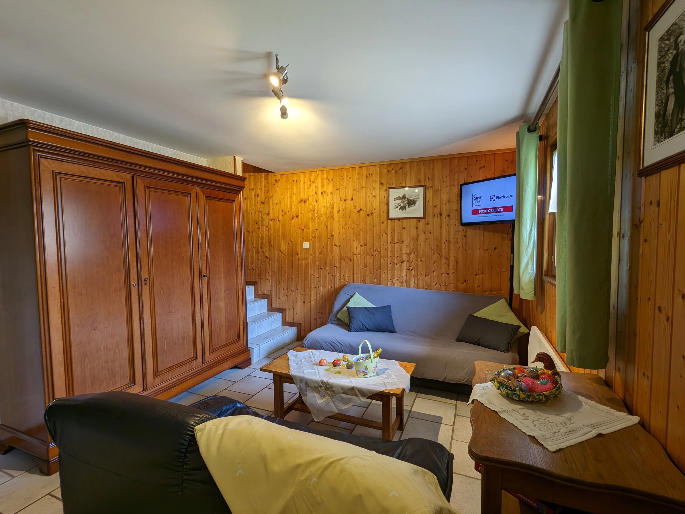 - Un salon-séjour avec, espace repas pouvant accueillir jusqu’à 7 personnes. TV. WIFI. Cheminée. - Une chambre équipée d'un lit 140/190 - Salle de bain : baignoire, une vasque. Sèche cheveux électrique.
