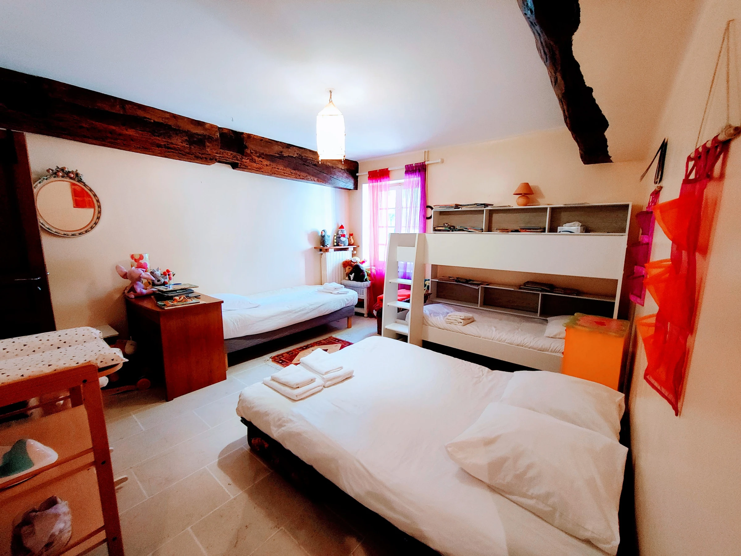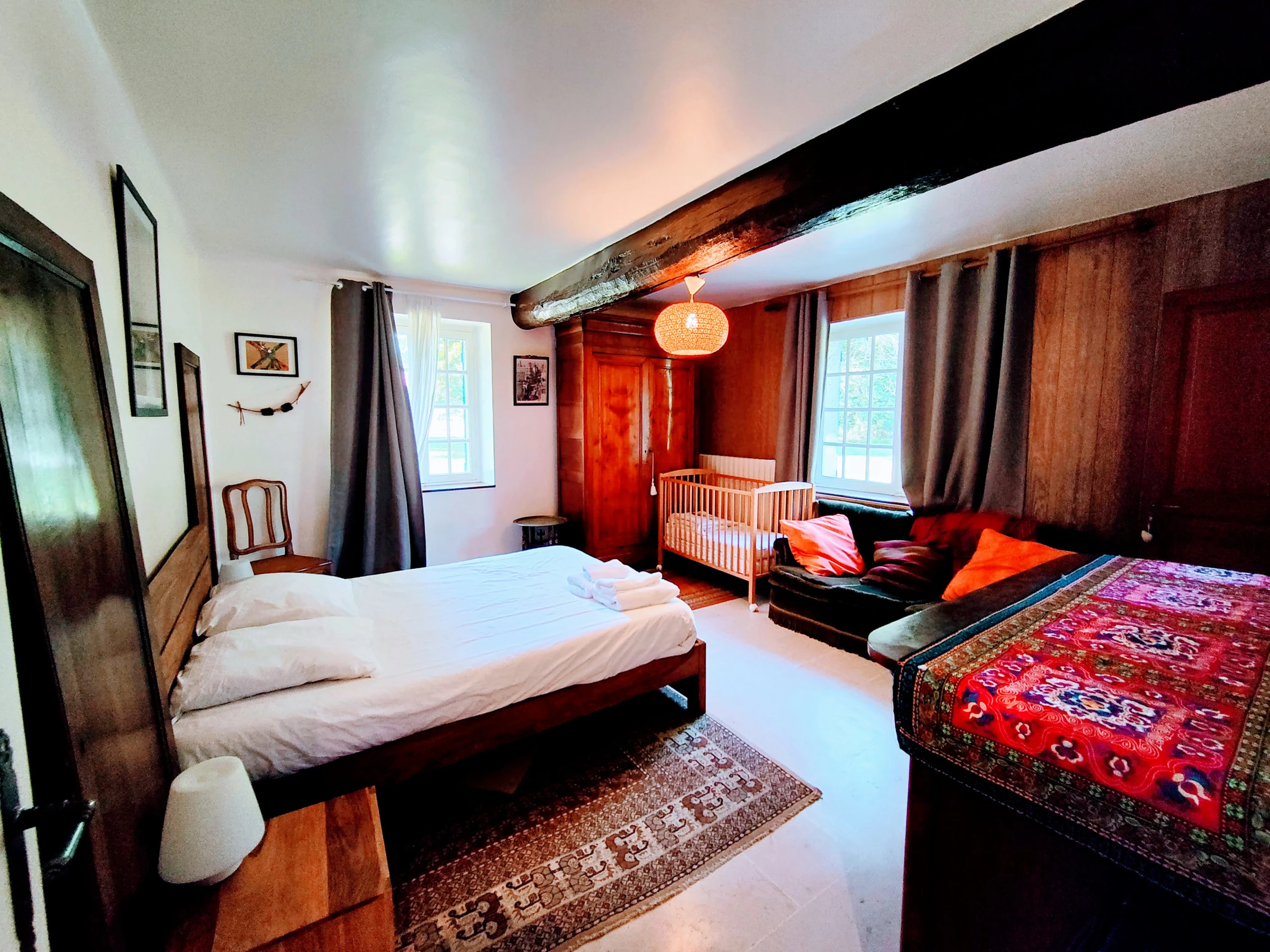 À votre arrivée, découvrez un espace vaste et lumineux comprenant 6 chambres confortables, parfaites pour accueillir jusqu'à 19 personnes. La cuisine est entièrement équipée (réfrigérateur, plaques de cuisson, micro-ondes, cafetière, bouilloire, ustensiles de cuisine) pour préparer vos repas en toute autonomie. Un espace salon accueillant avec une télévision vous attend pour des moments de détente, accompagné d'une connexion internet gratuite pour vos besoins professionnels ou de loisirs.