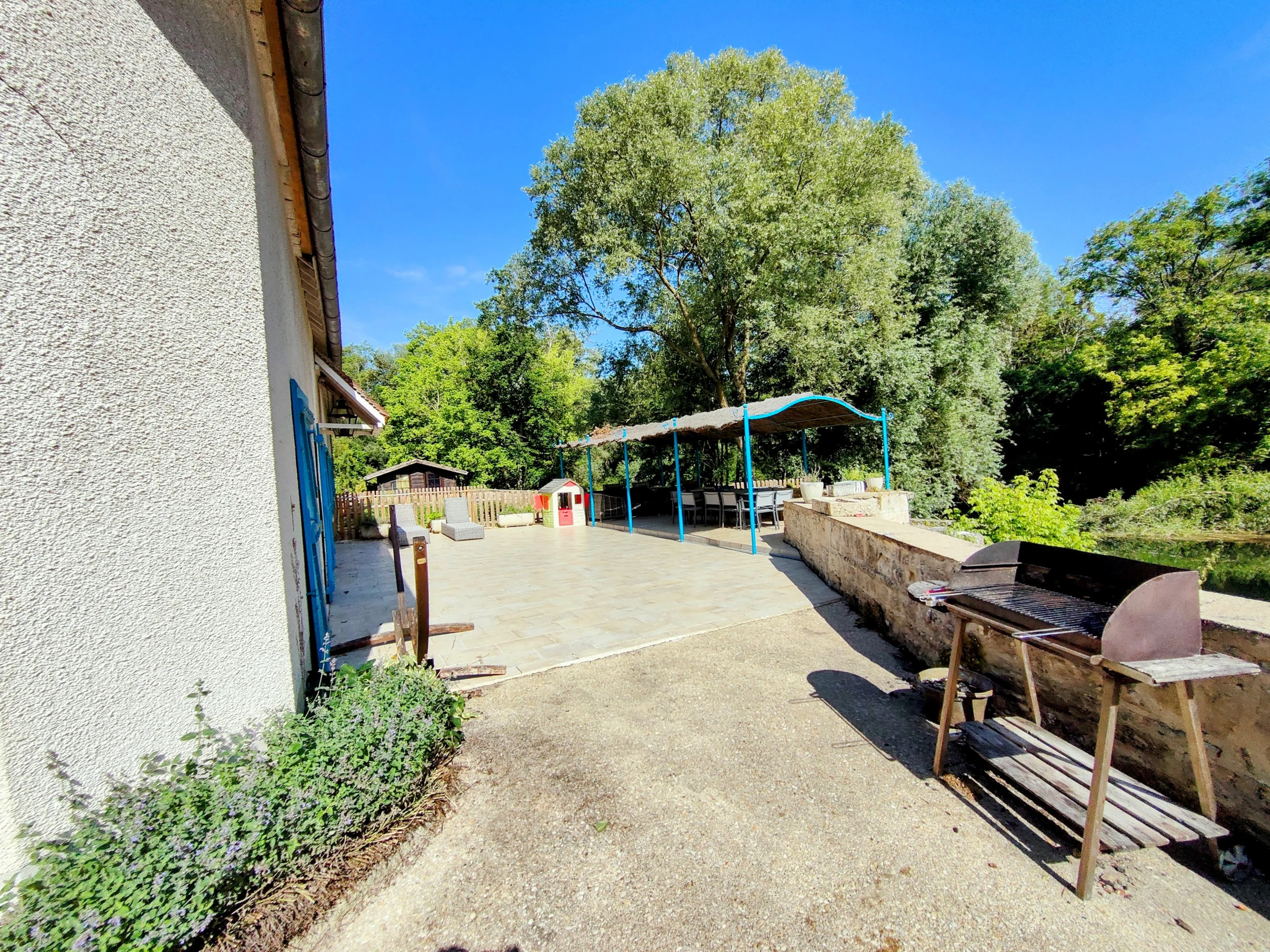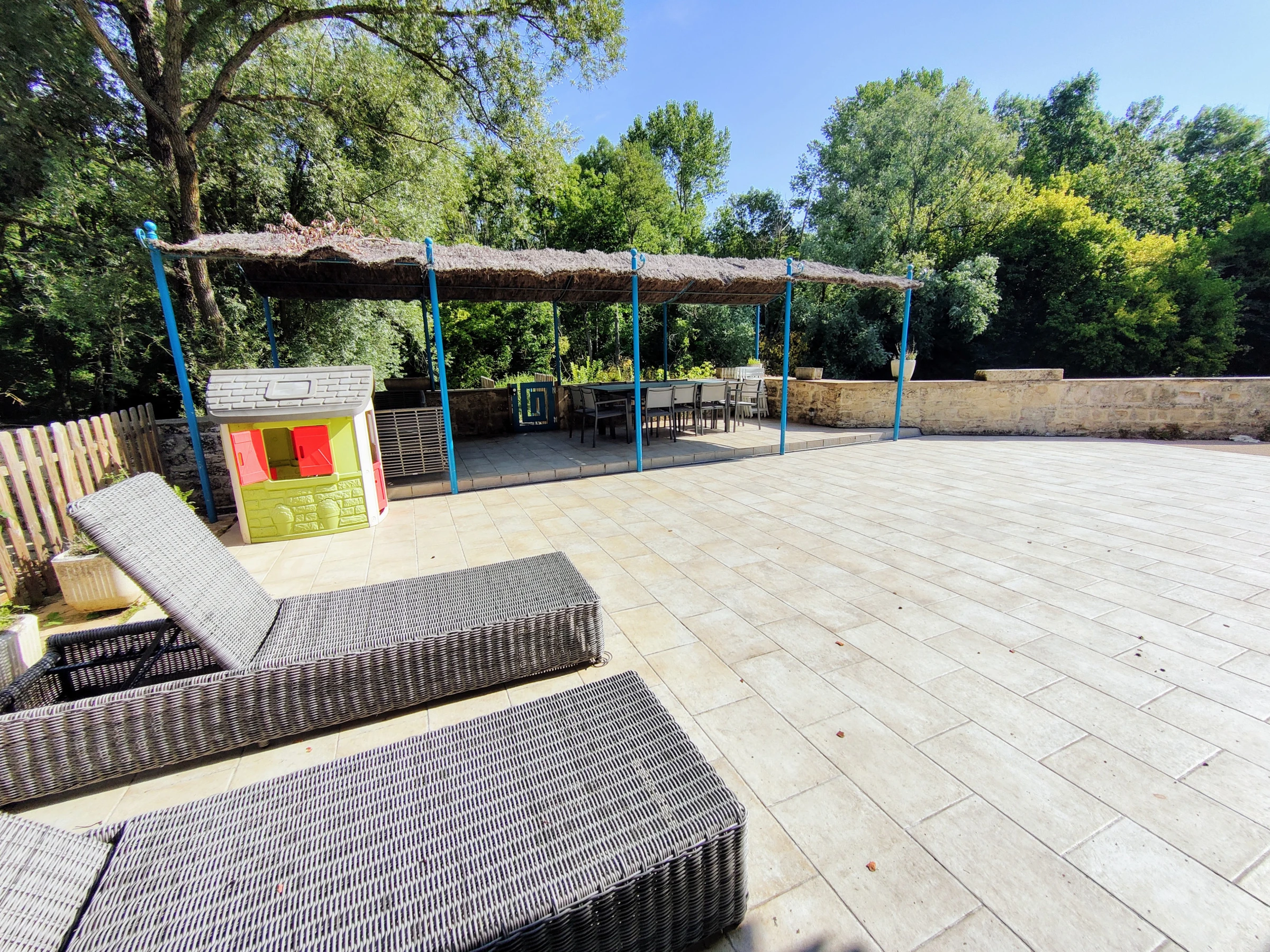 De plus, la maison dispose d'un lave-linge pour votre commodité. Un parking est disponible dans la rue pour votre véhicule. Le jardin, la terrasse, et la proximité d'une rivière offrent des possibilités de loisirs et de détente en plein air.