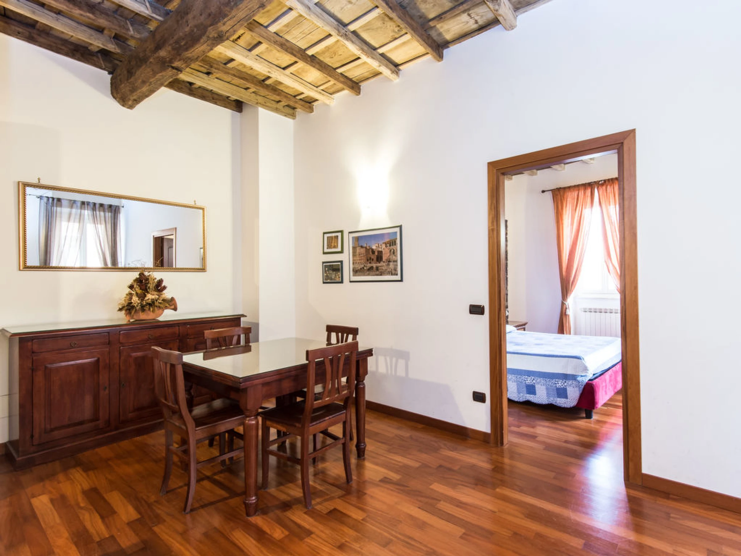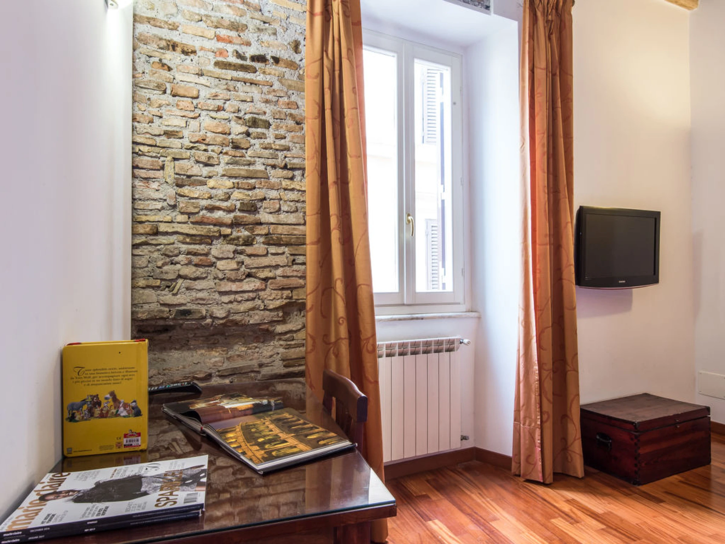 "Forum Domus", apt 2 pièces 65 m2 au 2ème étage. Rénové, aménagement de bon goût et de style: séjour/chambre à coucher ouvert avec 1 divan-lit double et table pour les repas. 1 grande chambre double avec TV et écran plat. Coin cuisine (4 plaques de cuisson, mini-four, four micro-ondes, congélateur). Douche/bidet/WC. Chauffage, air-conditionné. Sol en parquet. Vue éloignée sur Colisée. A disposition: lave-linge, coffre-fort, sèche-cheveux. Internet (Connexion WIFI, gratuit). Inclus: Linge (1er jeu de draps et serviettes), Eau, Frais d'énergie, Lit bébé (jusqu'à 2 ans), ERV assurance annulation gratuite, Internet sans fil (WIFI), Chauffage Services supplémentaires obligatoires sur le site: Taxe de séjour (Jusqu'à un maximum de 10 nuits) 3.5EUR par personne et par jour, Nettoyage final 20.0EUR par personne