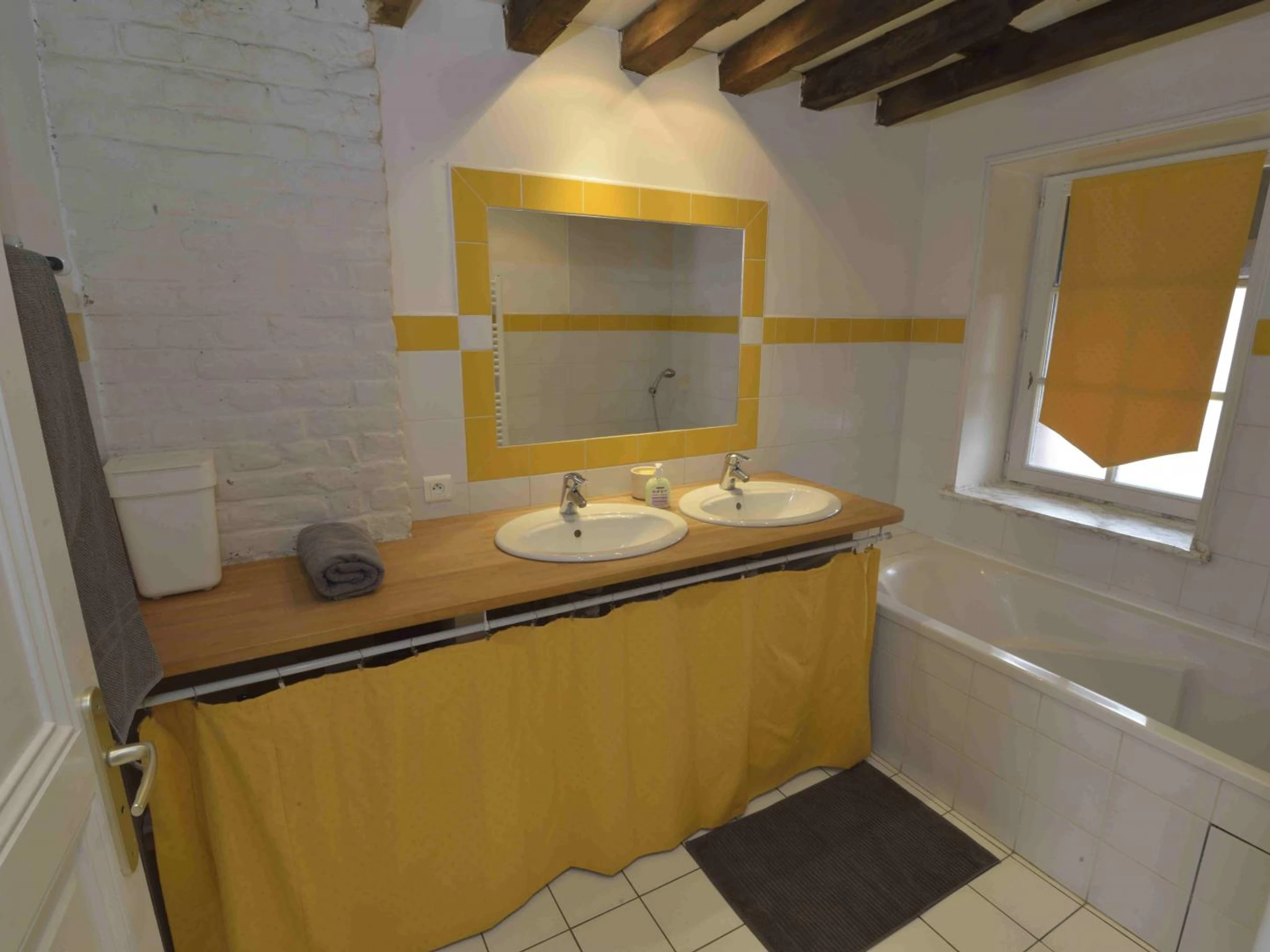 Jour d'arrivée libre. Gîte 71 m², hébergement de pays, sur une ancienne brasserie du 18è S, mitoyen au gîte 2556. Rez-de-chaussée : hall, 1 chambre : 1 lit bébé, 1 lit 140x190 avec salle d'eau (douche 80x80) et WC. Entre-sol : cuisine/séjour (cheminée). Étage : 1 chambre avec 2 lits 90x200, salle de bain (baignoire en 160), WC. Lave-vaisselle, micro-ondes, four, frigo-congélateur, plaques vitro. TV 81cm, DVD, wifi gratuit. Chauffage central gaz, charges comprises. Draps fournis. Possibilité forfait ménage. Jardin privé 300 m², terrasse, salon de jardin. Jardin commun 500 m² (préau avec planche fixe, barbecue, portique). 10 hectares de nature attenants. Pêche 1 km. Taxe de séjour à régler sur place. Labélisé Bienvenue à la Ferme. A la Martinière, dans l'ancienne demeure des brasseurs sur cette ancienne ferme-brasserie datant de 1763, l'histoire et la beauté des lieux ne vous laisseront pas indifférents ! Cet endroit est unique par son caractère imposant, respectueux du passé. Profitez de cet hébergement de pays, avec le confort du XXIème Siècle ! Douai 7 km, Orchies 14 km, Lens (Musée Louvre Lens) 25 km, Cambrai 40 km, Villeneuve dAscq (Stade Pierre Mauroy) 32 km, Lille 35 km, Valenciennes 42 km, St-Quentin 94 km.