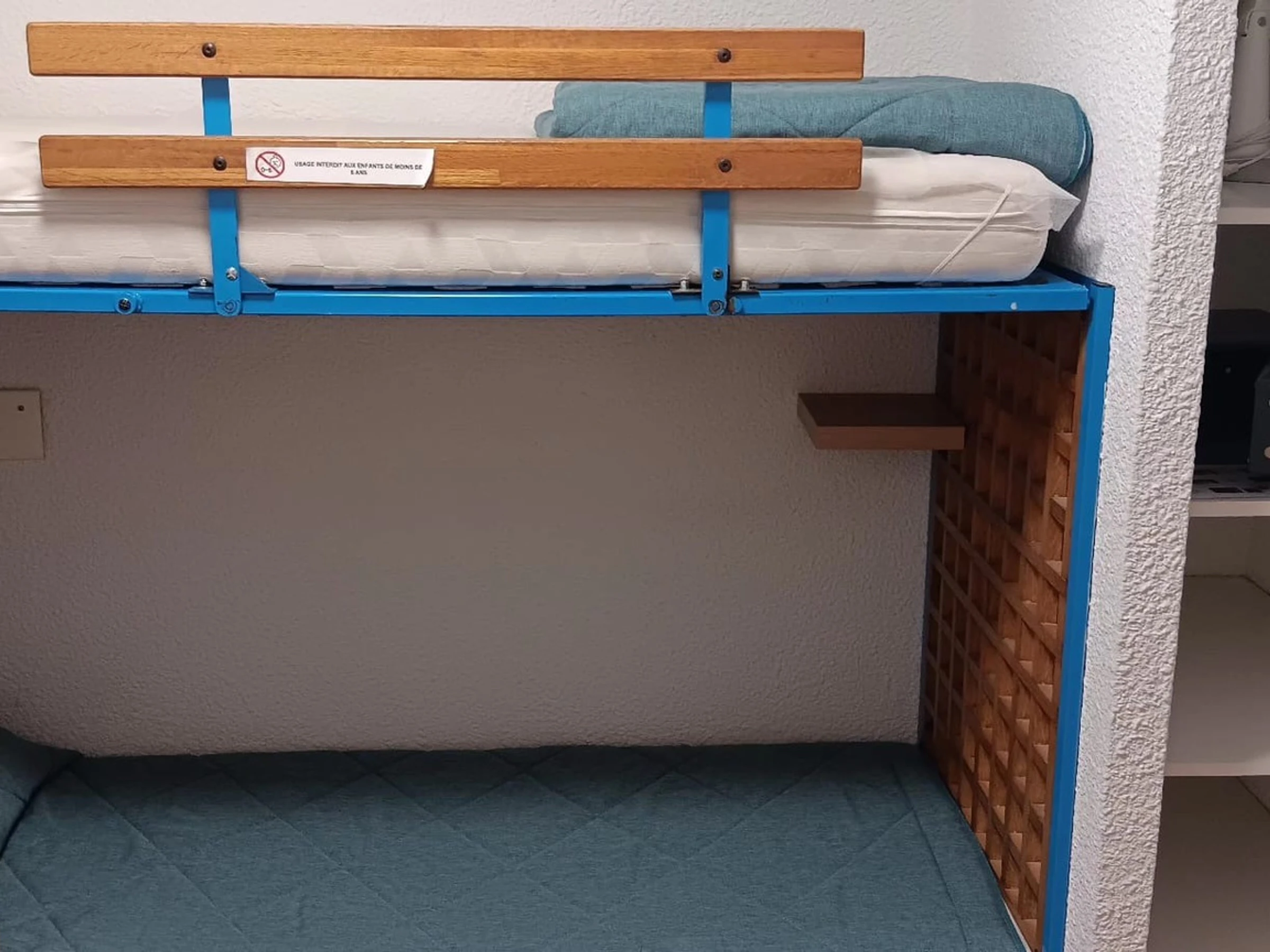 Les lits superposés (couchage haut) sont interdits aux enfants de moins de 6 ans.