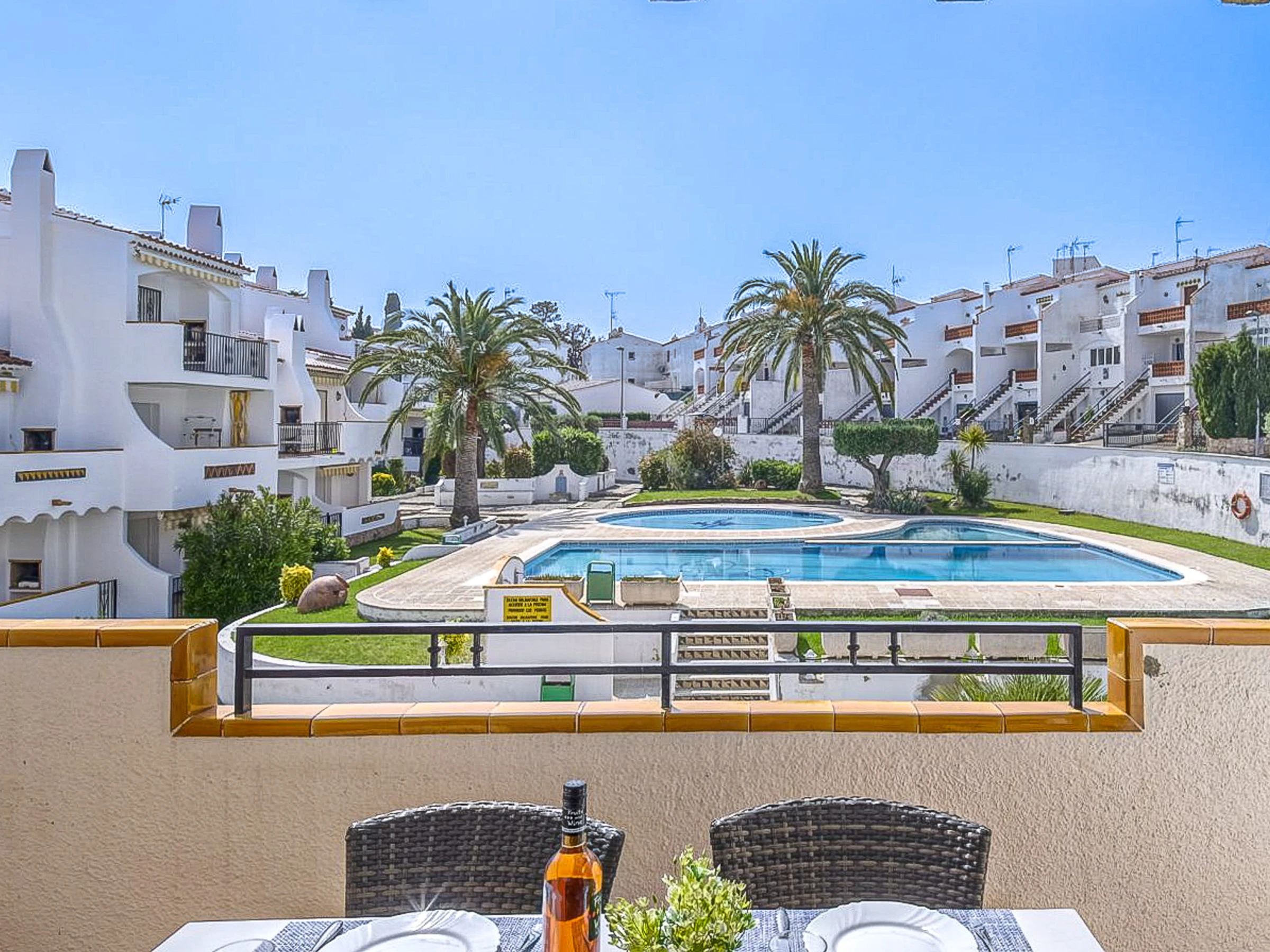 Depuis sa terrasse de 7 mètres carrés, vous pourrez profiter d'une vue sur la piscine commune rafraîchissante, créant un environnement serein et relaxant. Les meubles de terrasse offrent l'espace idéal pour prendre des repas en plein air ou simplement se détendre au soleil.