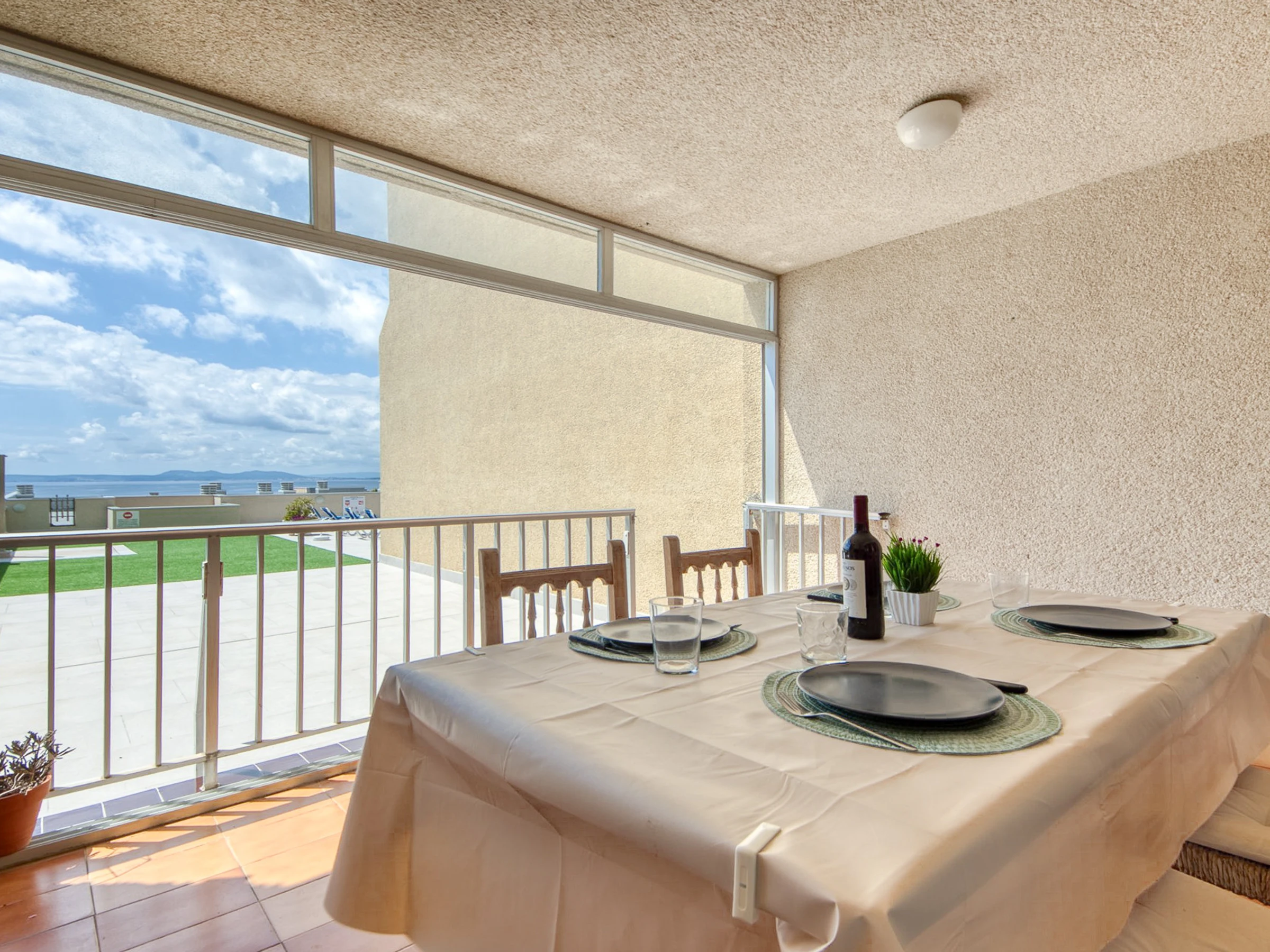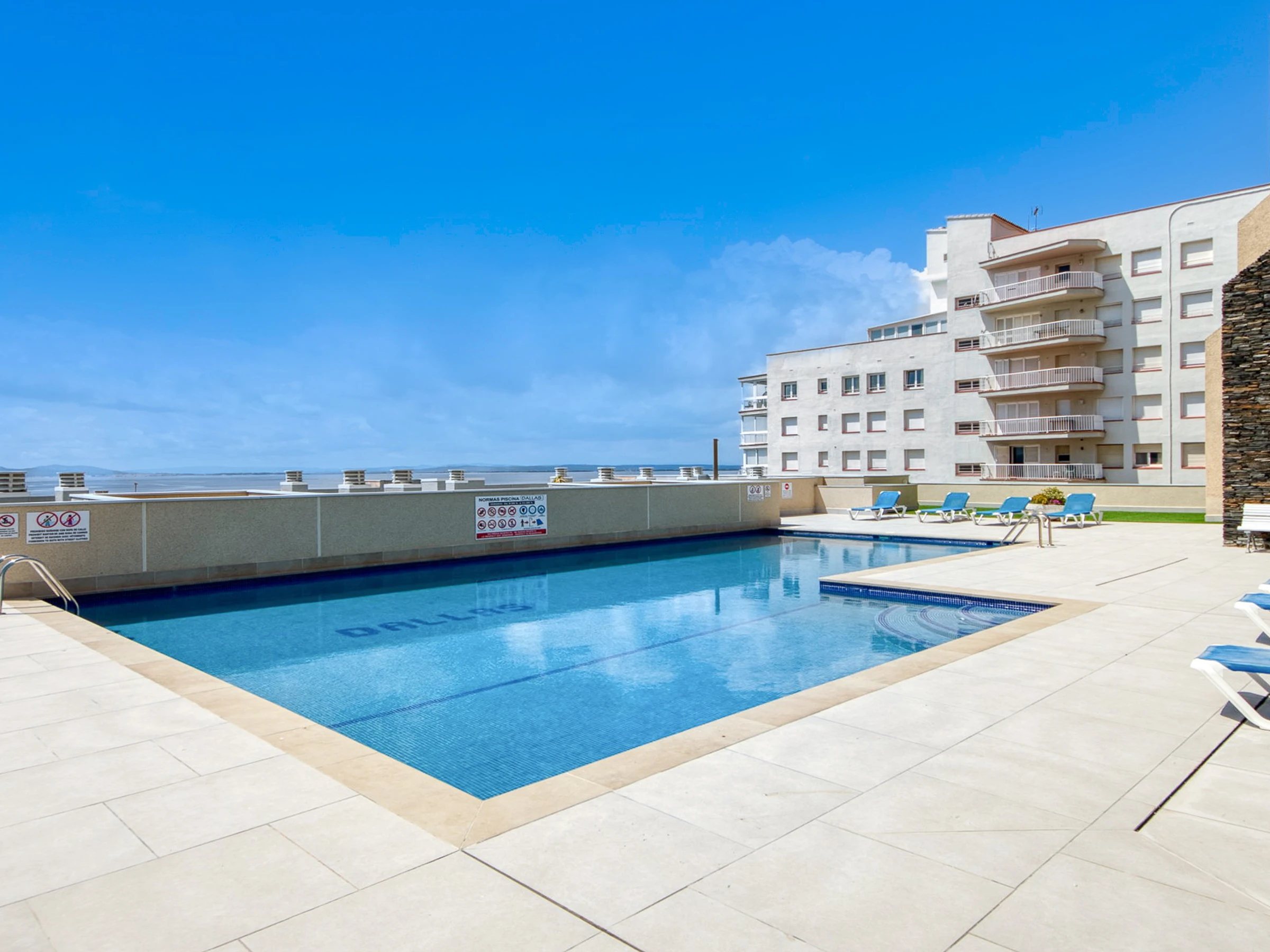 L'appartement est situé au deuxième étage qui donne un accès direct à la piscine, parfait pour profiter de vacances en famille.
