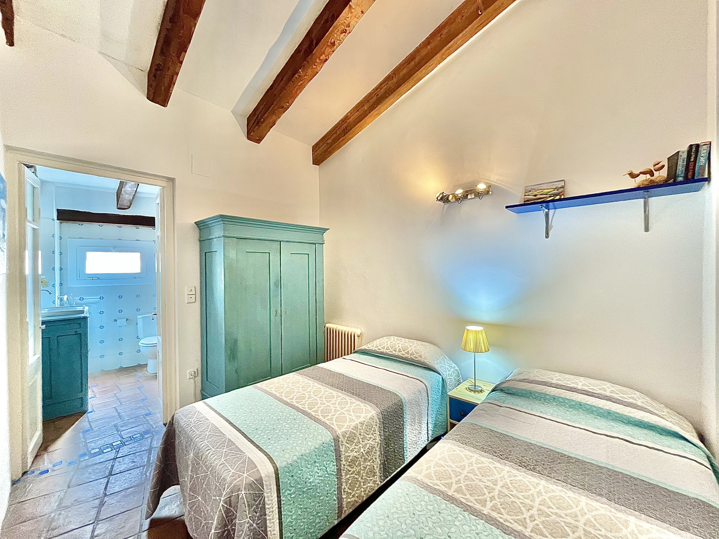 Dispose de 3 chambres doubles en suite avec dressings, une par étage de la maison. Au rez-de-chaussée se trouve la grande cuisine entièrement équipée et une chambre de plus de 20 m² avec une salle de bain complète et une buanderie.