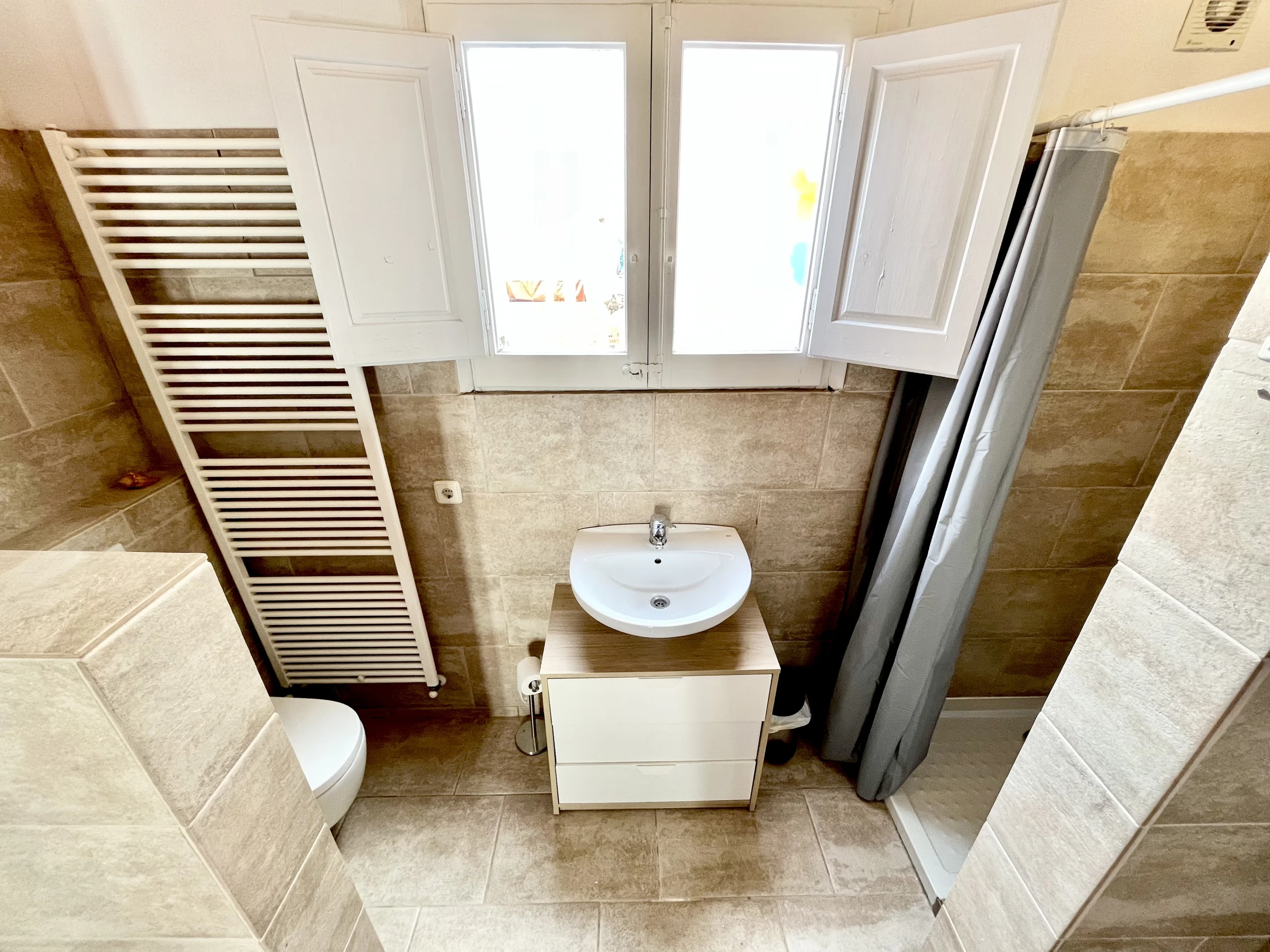 Au troisième étage se trouve la troisième chambre avec salle de bain privative et un petit balcon donnant sur la rue intérieure piétonne.
