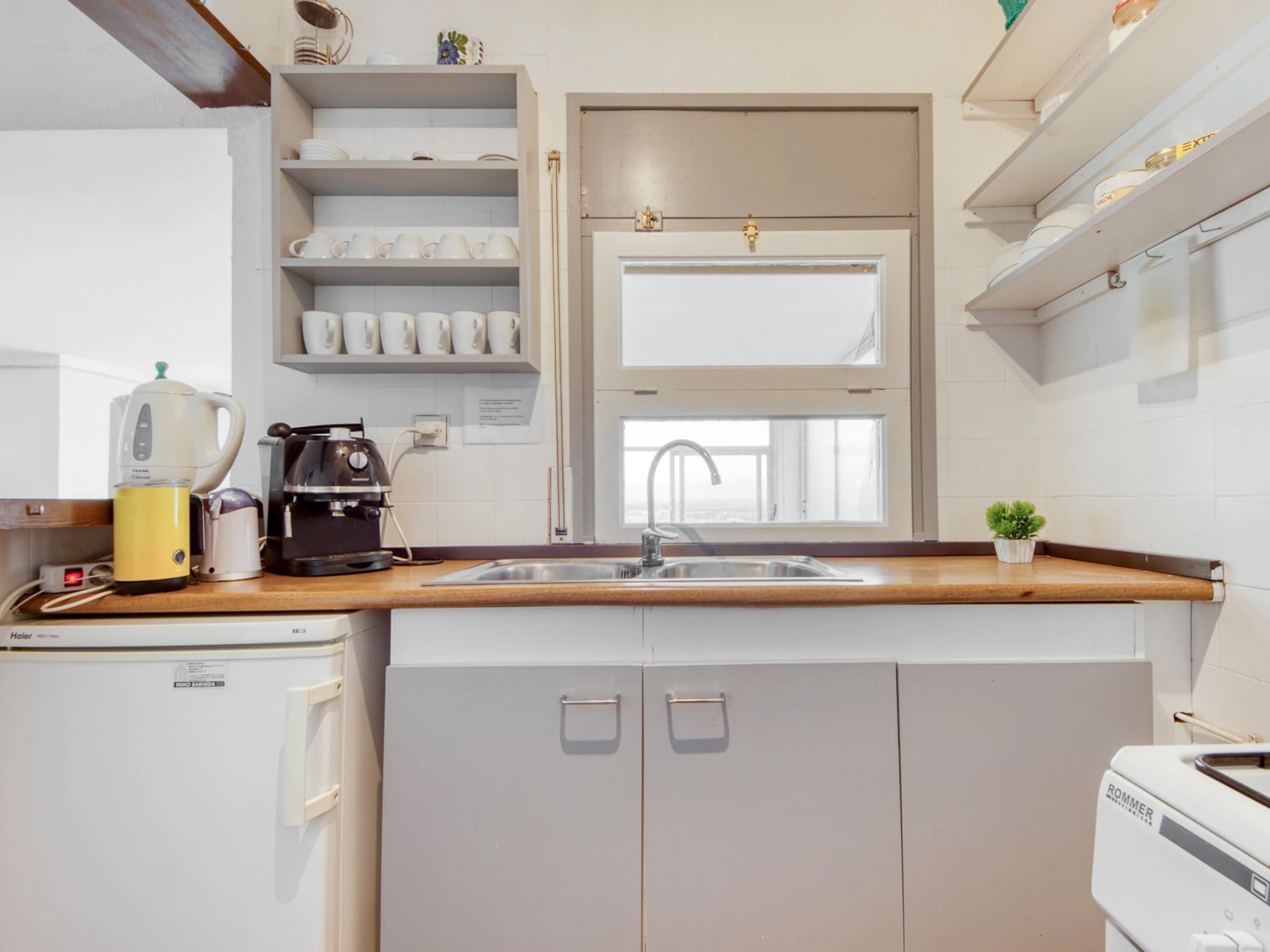 La kitchenette, équipée de tout le nécessaire, comprend un réfrigérateur, un micro-ondes, un congélateur, de la vaisselle, des couverts, des ustensiles de cuisine, une cafetière et un grille-pain, vous permettant de préparer et de déguster vos repas en toute simplicité.
