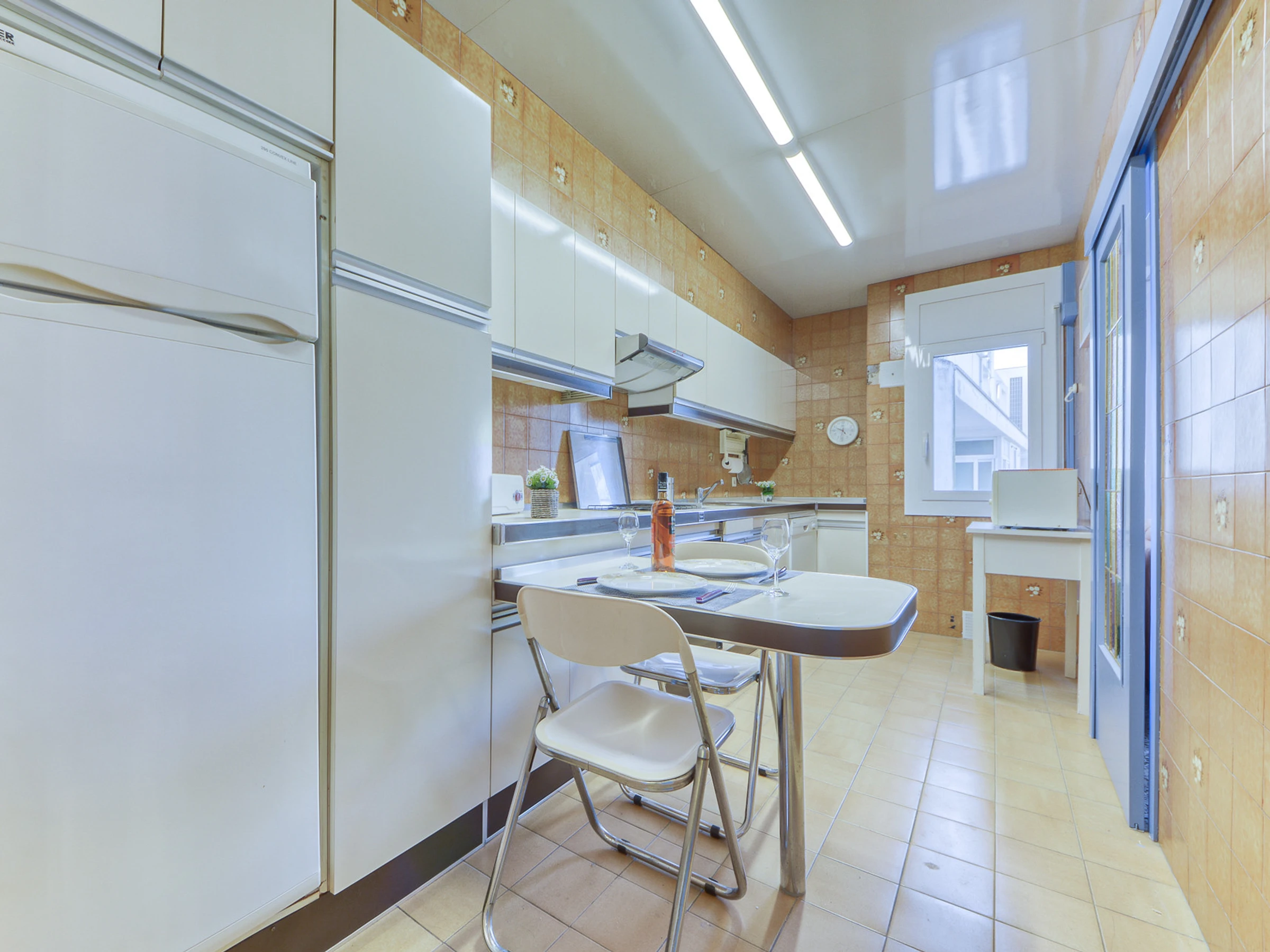 La cuisine est indépendante et entièrement équipée d'appareils modernes, dont réfrigérateur, micro-ondes, four, congélateur, lave-vaisselle, vaisselle, couverts, ustensiles de cuisine, cafetière et grille-pain. De plus, un fer à repasser et un lave-linge sont fournis dans l'appartement pour plus de commodité .Air conditionné