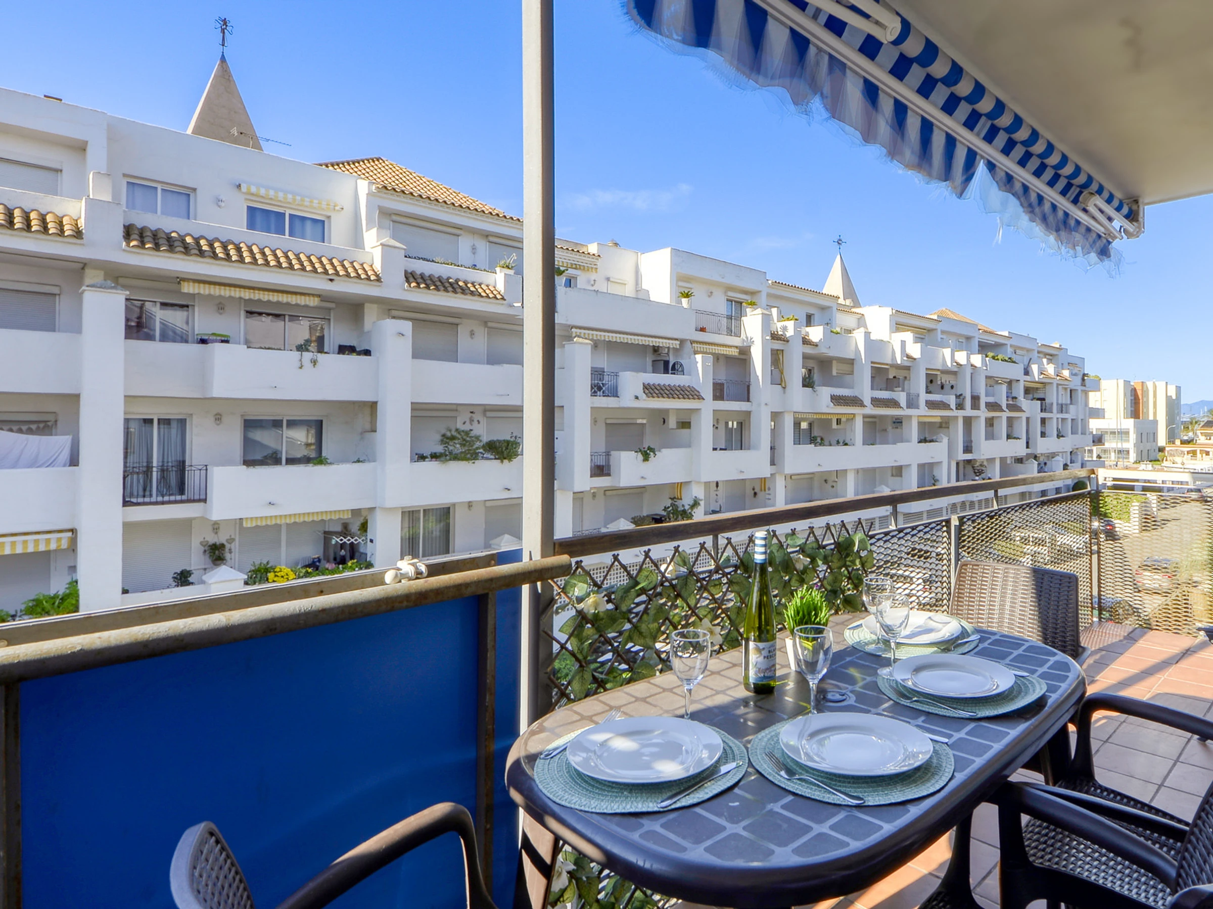 Dispose d'un ascenseur, de mobilier de terrasse, de 8 m² de terrasse, de piscine communautaire, de parking en plein air dans le même bâtiment, de télévision satellite et de climatisation.