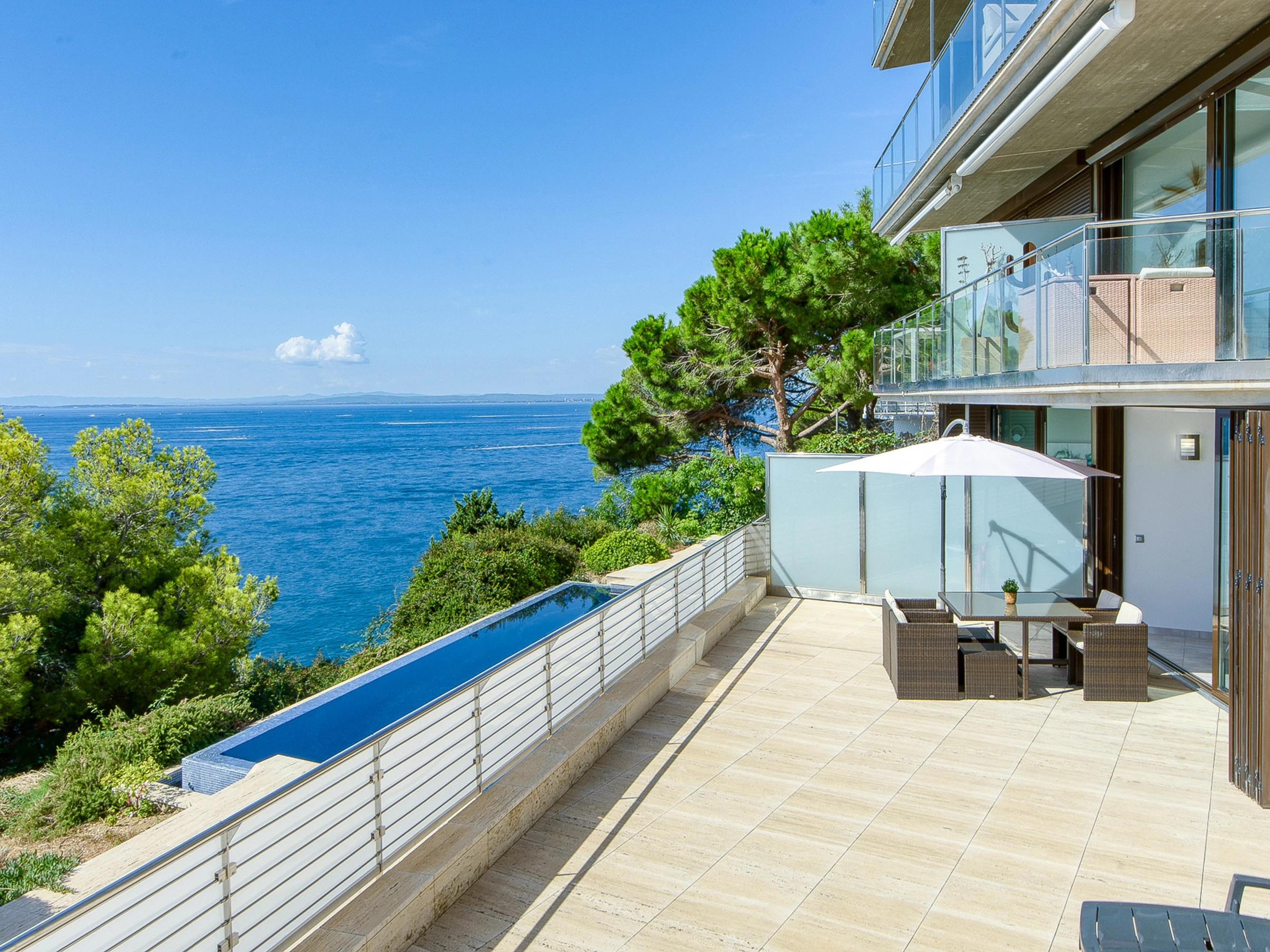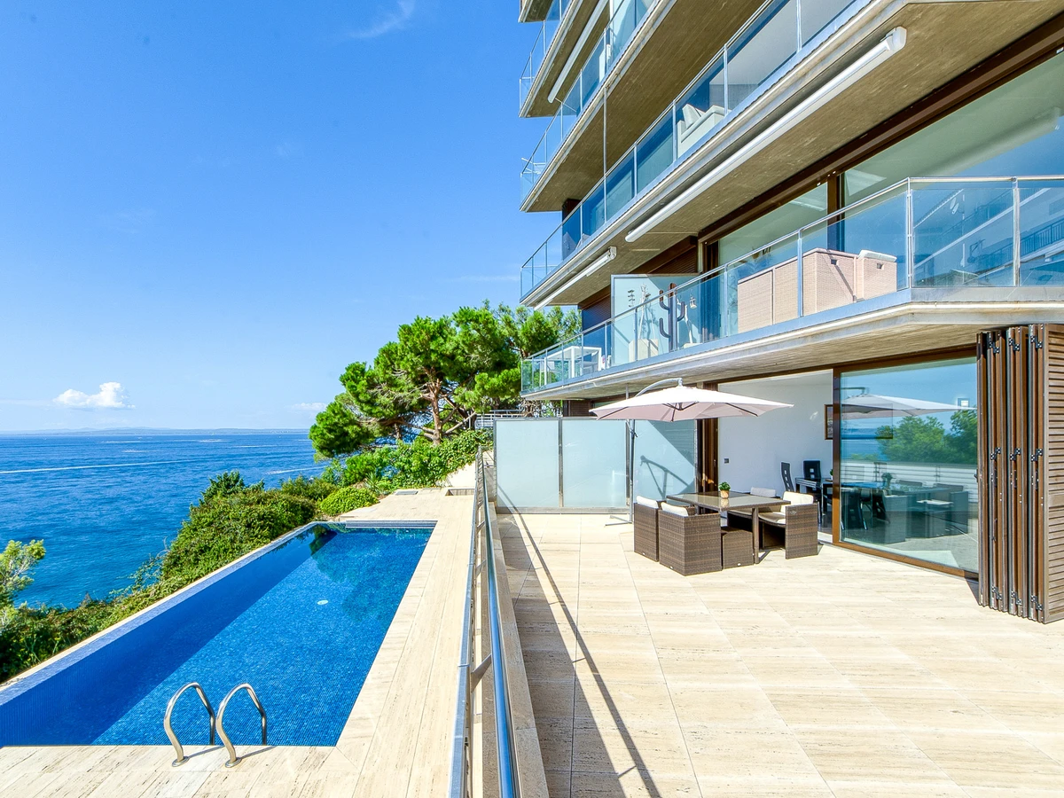 Situé en première ligne de mer, l'appartement offre des vues impressionnantes sur la Méditerranée depuis sa large terrasse, parfaite pour profiter de moments de calme et de contemplation. Sa situation exceptionnelle permet d'accéder facilement aux plages proches comme Els Palangrers (500 m) et Canyelles Petites (450 m). De plus, on peut y accéder en marchant par le Chemin de Ronde, longeant la mer et profitant d'une belle promenade côtière.