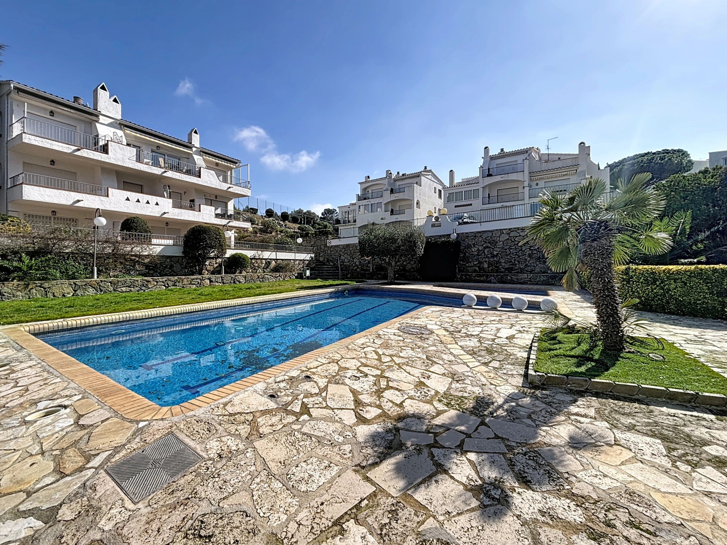 La piscine commune vous offrira un espace parfait pour vous rafraîchir lors des journées d’été, tandis que votre véhicule pourra être stationné en toute sécurité sur une place de parking extérieure privée.