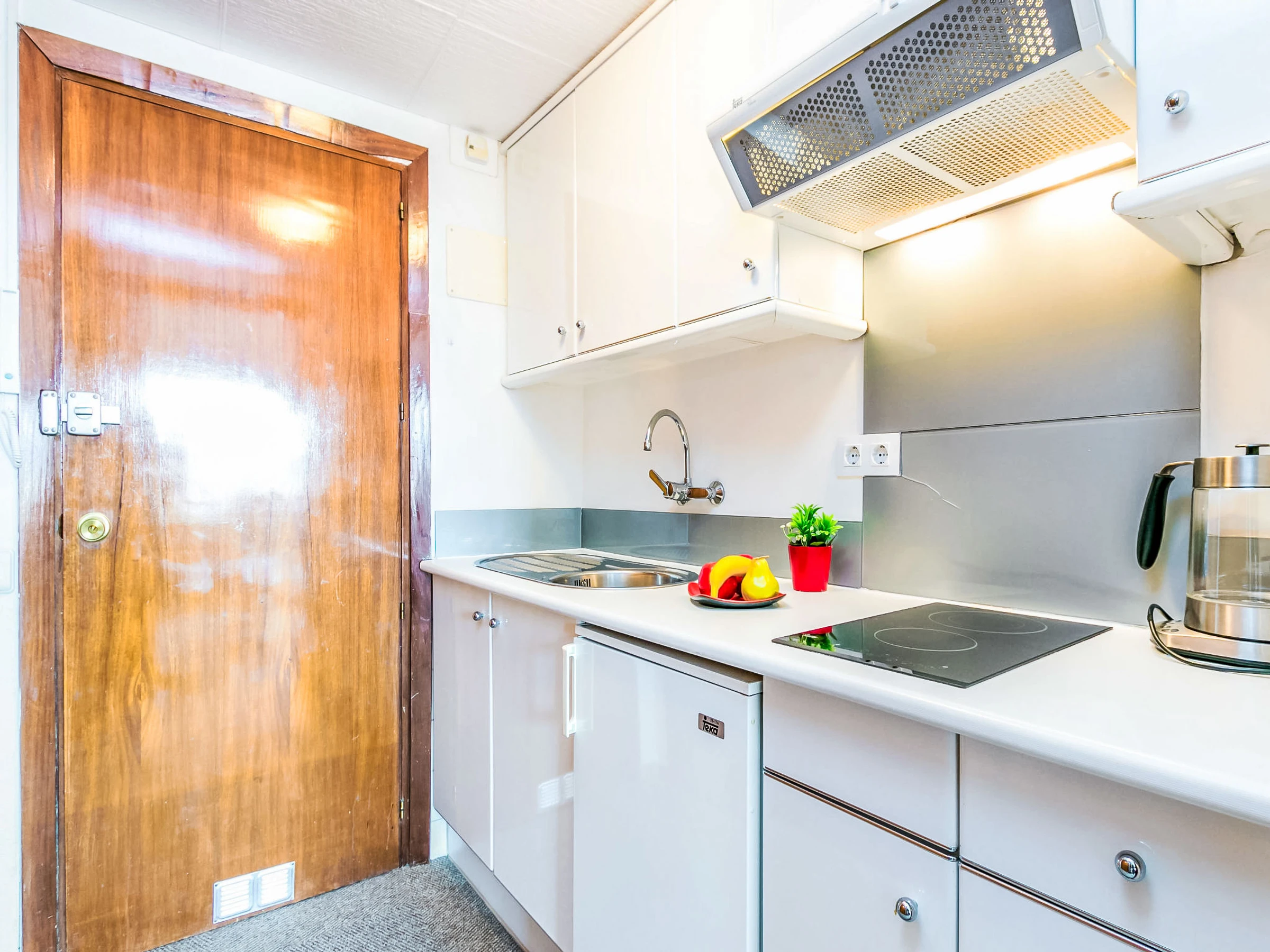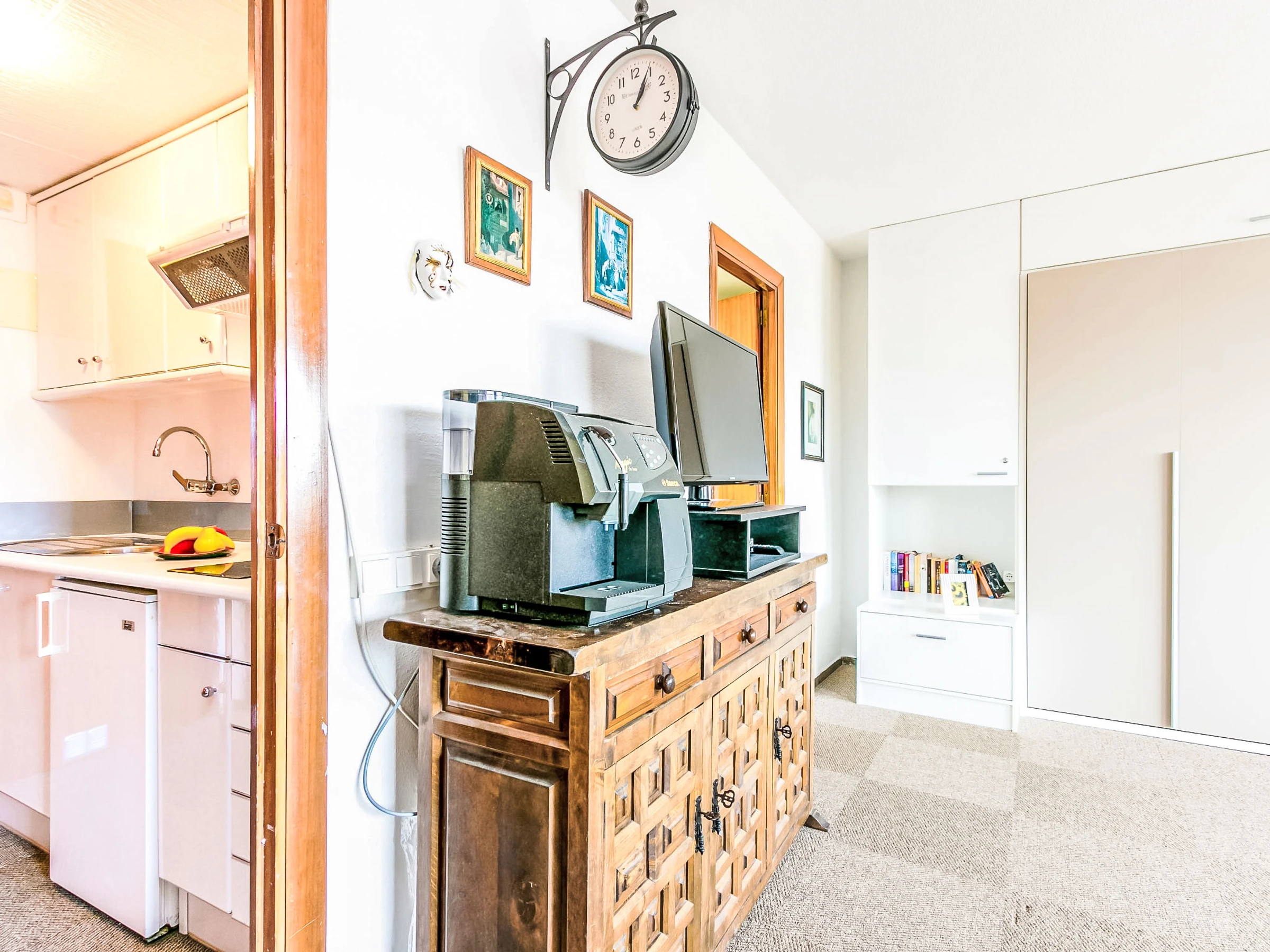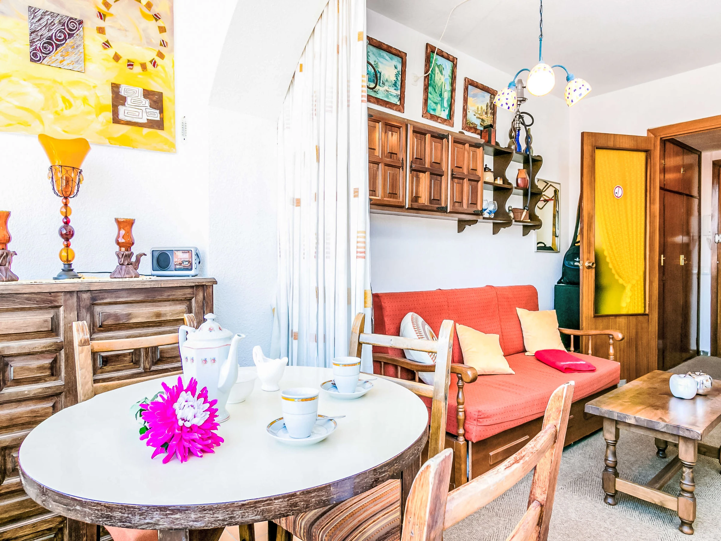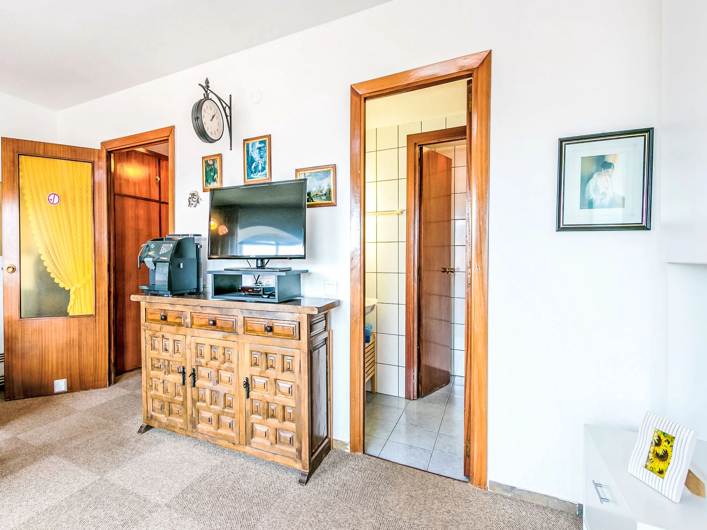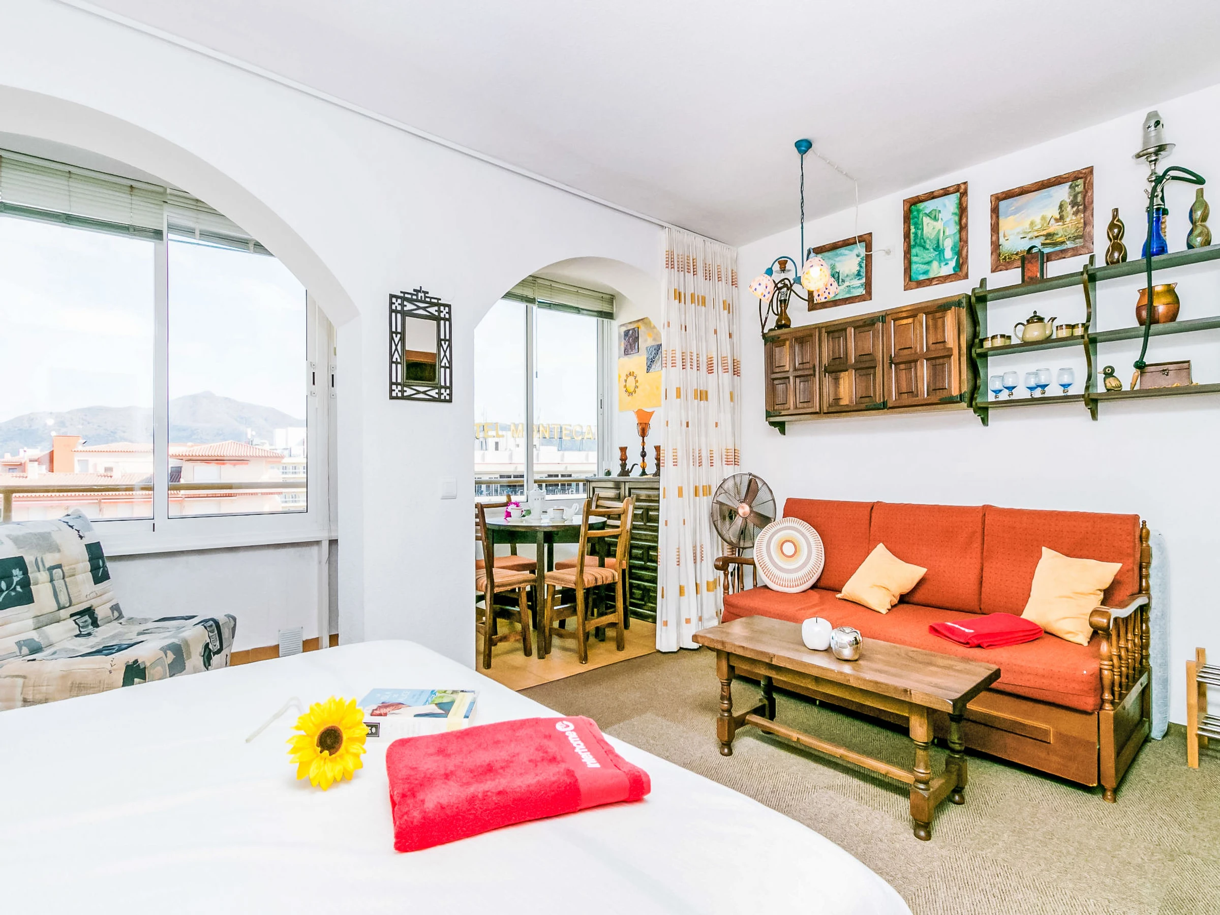 Studio 32 m2 au 7ème étage. Aménagement très simple et rustique: séjour/salle à manger avec 1 divan-lit, 1 lit double armoire et TV (satellite). Sortie sur la véranda. Petite cuisine ouverte dans l'entrée (2 plaques vitrocéramiques). Douche/WC. Pas de chauffage. Terrasse 7 m2. Vue latérale sur la mer. A disposition: lave-linge. Internet (Connexion WIFI, gratuit). Veuillez noter: maison non-fumeur. TV seulement DE, FR. [hidden] // Reg. Nr.: ESFCTU00001701900013554400000000000000HUTG-[hidden]