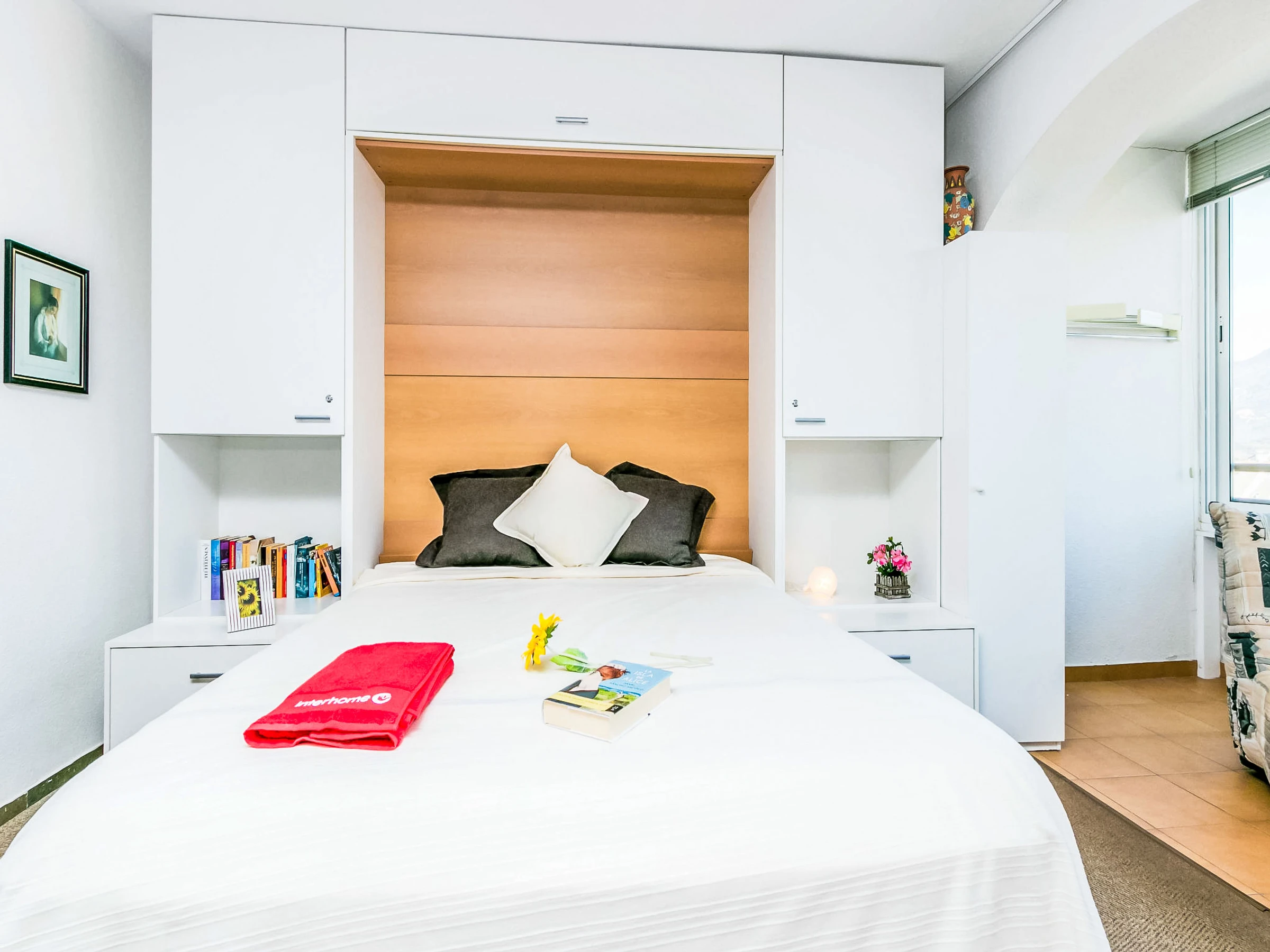Résidence "Roses Holiday Center", de 8 étages. Au centre de Santa Margarida, à 2 km du centre de Roses, situation centrale, ensoleillée, à 30 m de la mer, à 30 m de la plage, accès direct à la plage. En commun: beau jardin entretenu (clôturé) avec plantes et arbres, piscine (14 x 12 m, profondeur 100 - 200 cm, disponibilité saisonnière: [hidden] - [hidden] Douche/WC dans l'espace piscine, bassin pour les enfants. Infrastructures de la Maison: Connexion WIFI, ascenseur. Supermarché 30 m, restaurant 20 m, bar 10 m, boulangerie 30 m, café 10 m, biergarten 6 m, arrêt de bus 2 km, gare ferroviaire "Figueres" 15 km, plage de sable "Roses/Santa Margarida" 30 m, plage de galets 10 km, centre de plongée 100 m, piscine couverte 4 km, crique pour baignade 12 km, plage naturiste 15 km. Port plaisance 1 km, marina 1 km, terrain de golf (18 trous) 20 km, ecole de surf 4 km, ecole de voile 4 km, golf miniature 2 km, centre sportif 4 km, piste cyclable 30 m. Attractions à proximité: Parque acuático Aquabrava 2 km, Centro paracaidismo Skydive Empuriabrava 6 km, Cadaqués 19 km, Monasterio de Sant Pere de Rodes 21 km, Castillo de Peralada 21 km, Museo Dalí Figueres 23 km. Les lacs connus sont facilement accessibles: Lago de Banyoles 54 km. Veuillez noter: la remise des clés a lieu à l’agence de Roses. D’autres appartements sont également proposés à la location dans cette maison de vacances.