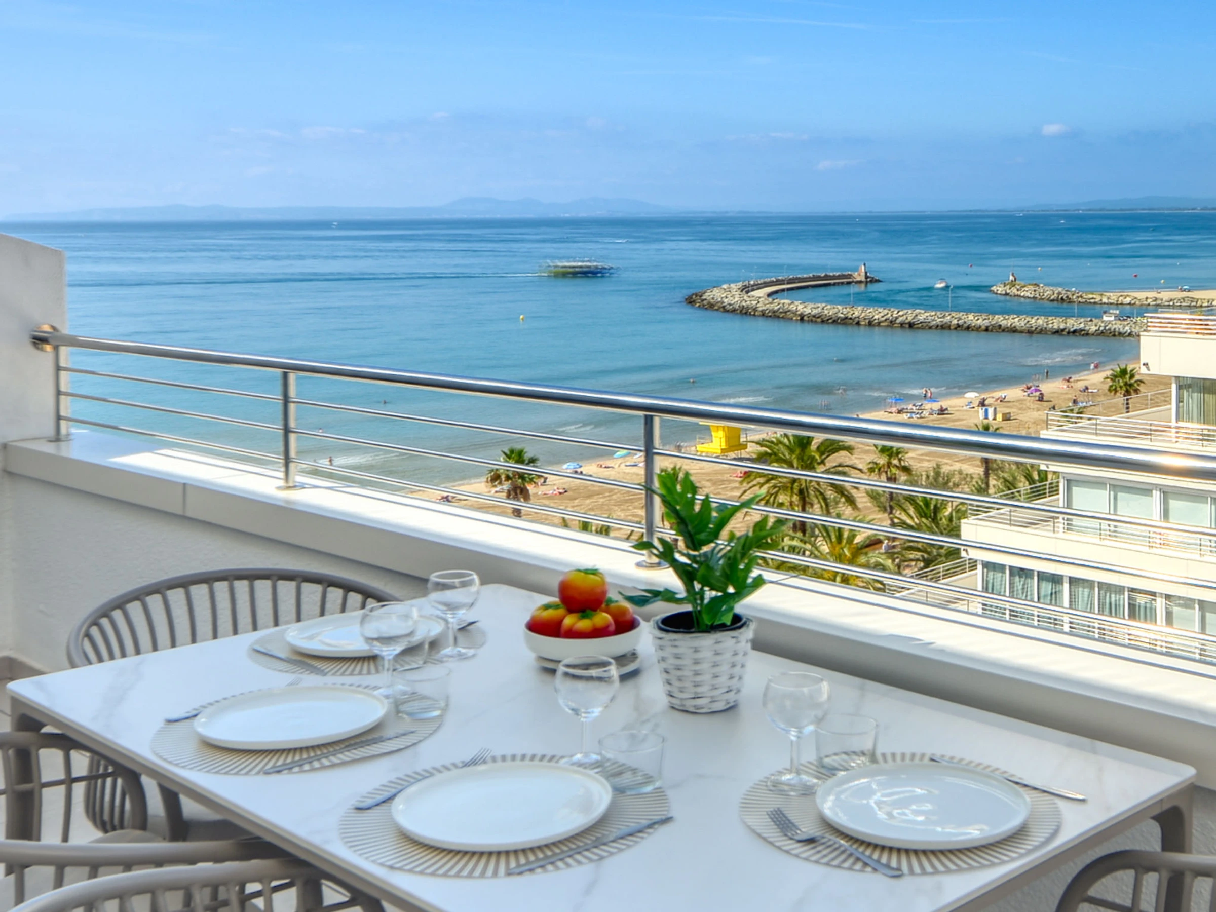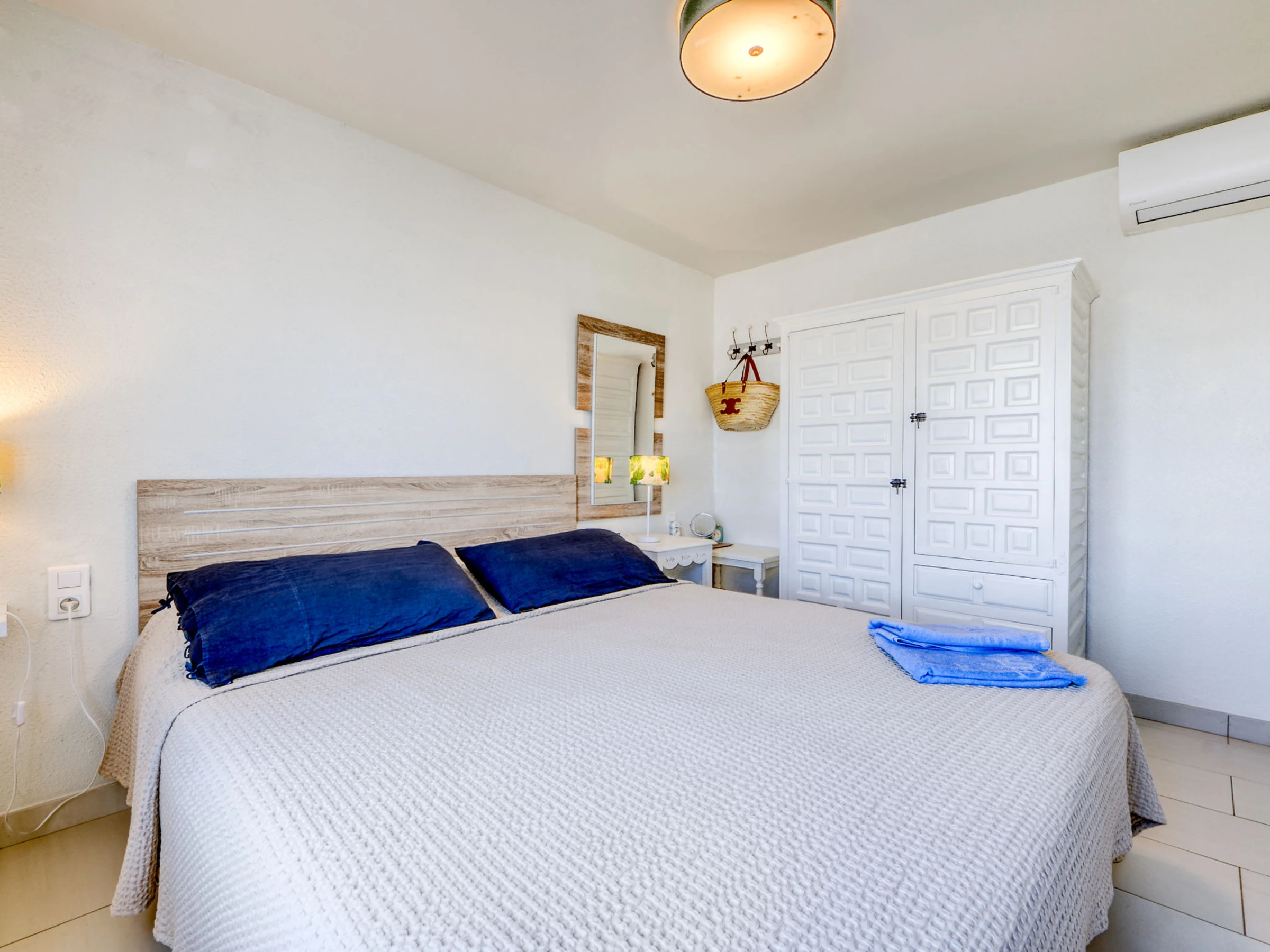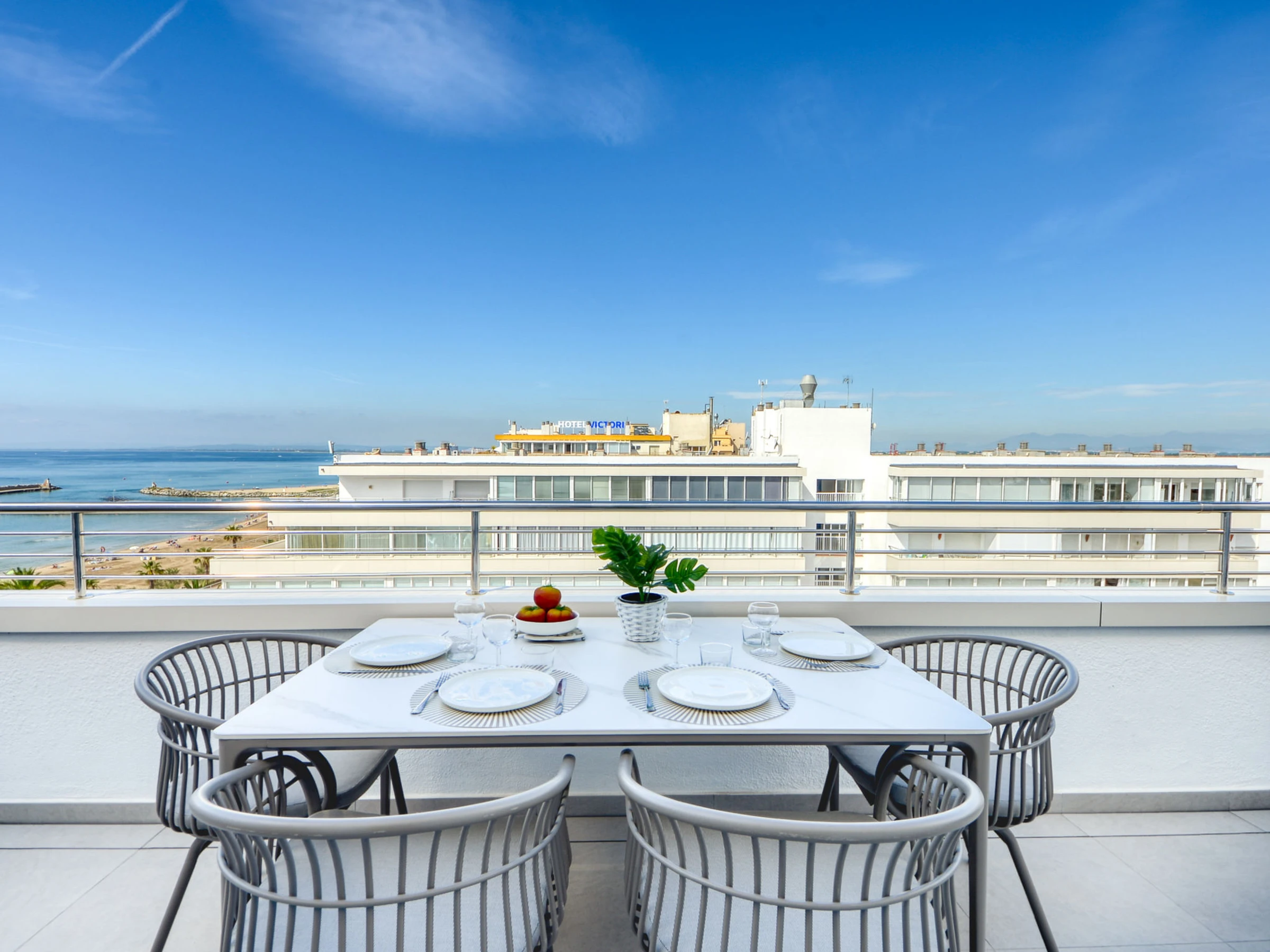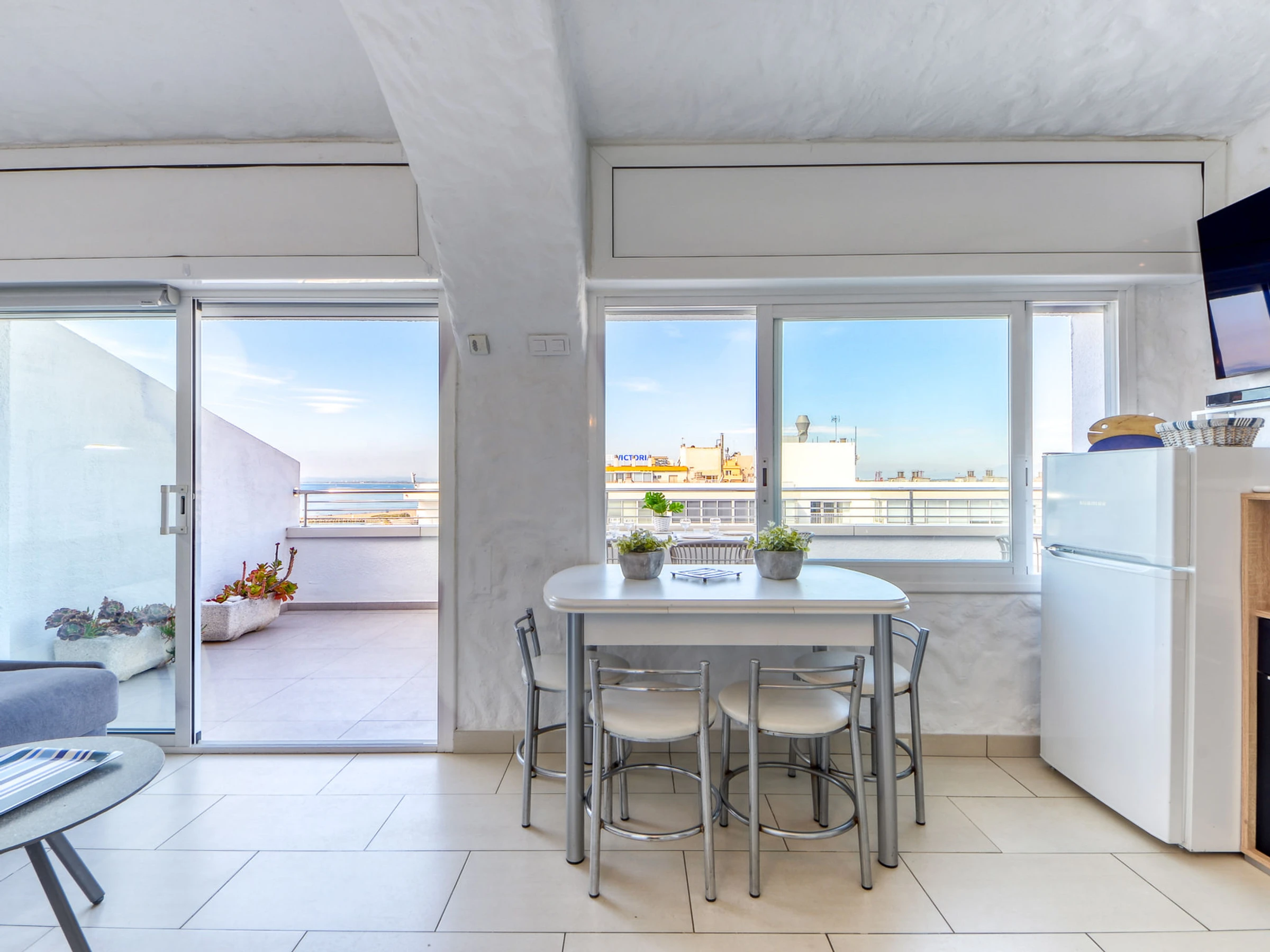 Apt 2 pièces 30 m2 au 8ème étage. Aménagement fonctionnel et agréable: séjour/chambre à coucher ouvert avec 1 x 2 lits superposés, TV (satellite) (écran plat), air-conditionné et volet roulant électrique. Sortie sur la terrasse. 1 chambre avec 1 grand-lit et volet roulant électrique. Cuisine ouverte (2 plaques vitrocéramiques, micro-ondes, congélateur). Douche/WC. Pas de chauffage. Terrasse 27 m2. Meubles de terrasse. Superbe vue sur la mer. A disposition: lave-linge. Internet (Connexion WIFI, gratuit). Veuillez noter: maison non-fumeur. TV seulement FR, DE, ES. La maison a un store électrique avec capteurs de vent. [hidden] // Reg. Nr.: ESFCTU00001701900000440600000000000000000HUTG-[hidden]